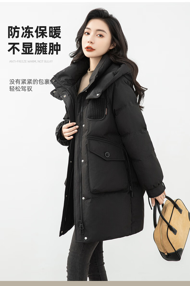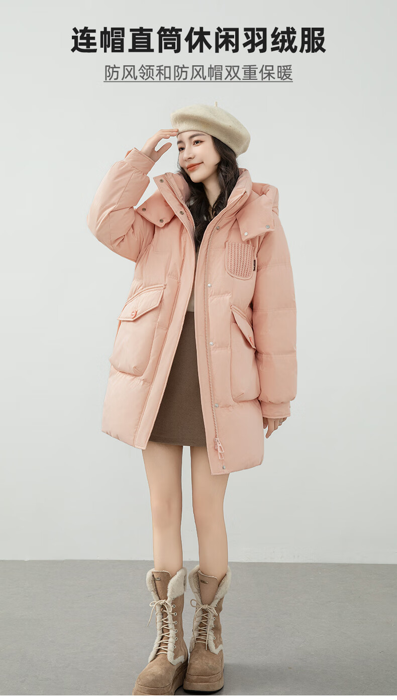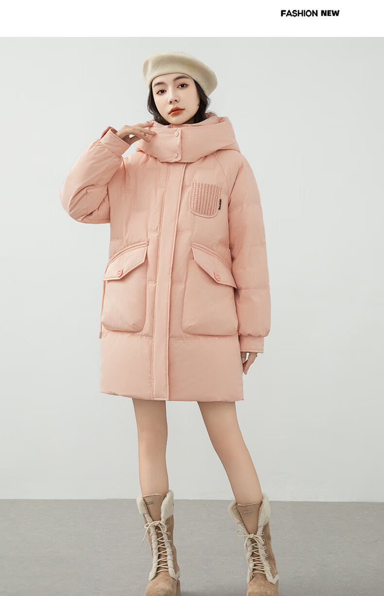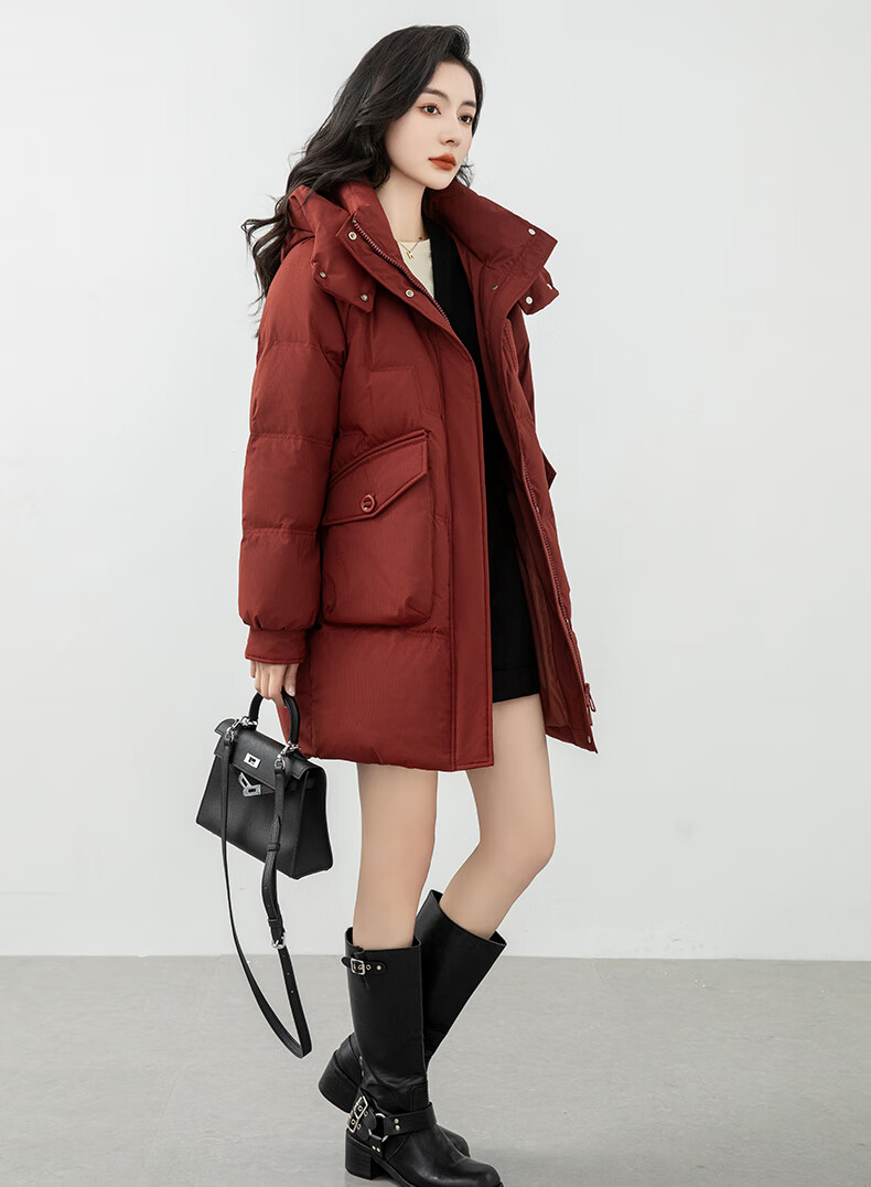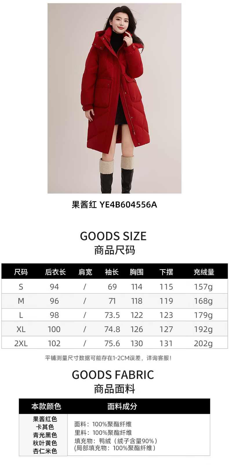 YAYA (YAYA) Qi Ji Red Zodiac Year Women's Medium Long Down Jacket 2025 Winter New Year Fashion Korean Style Hooded Warm Jacket Trendy Maroon-YE3B635155L Zodiac Red/Lucky Style M 110-140 Jin