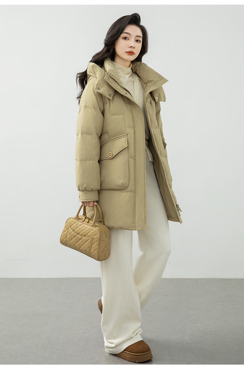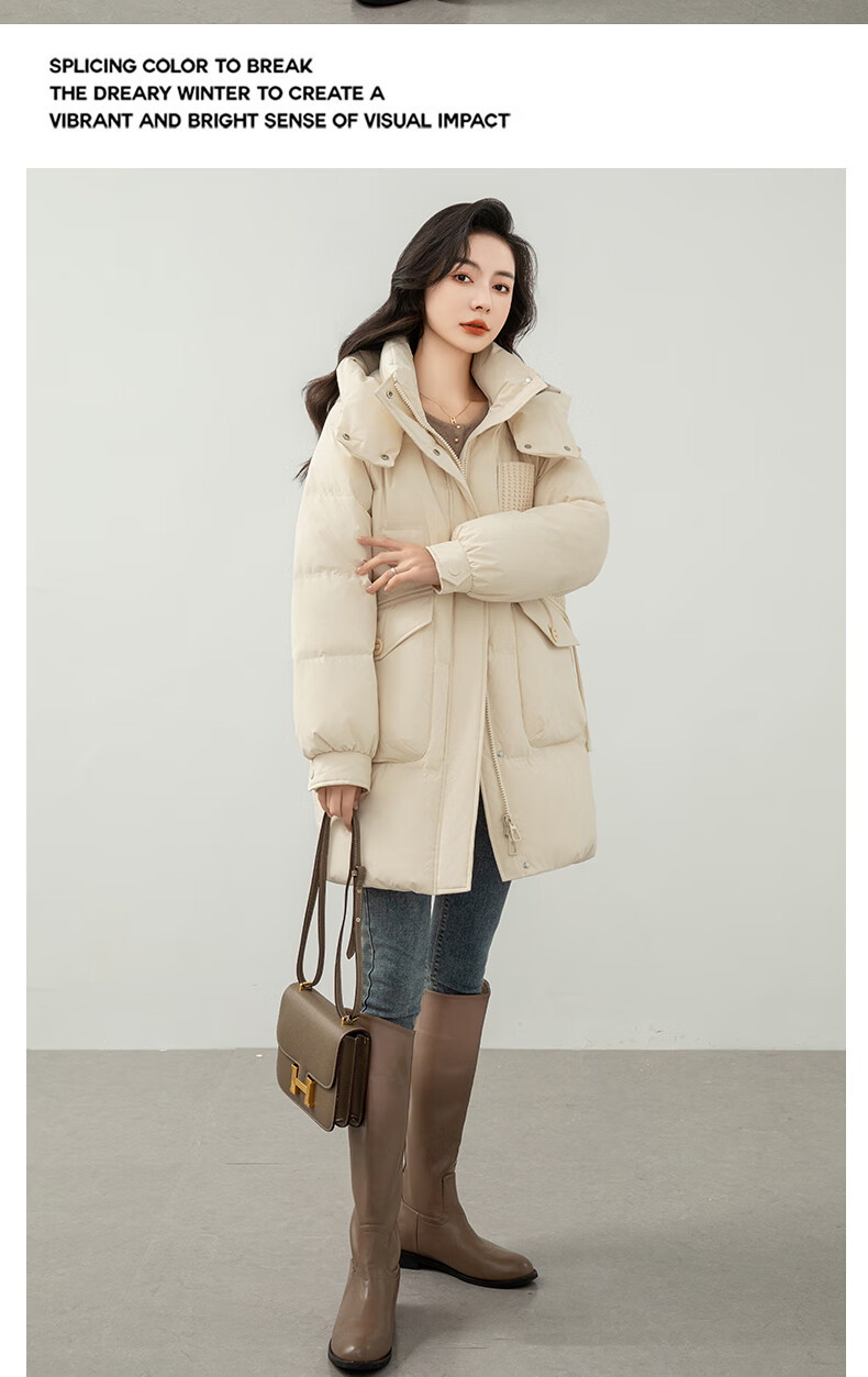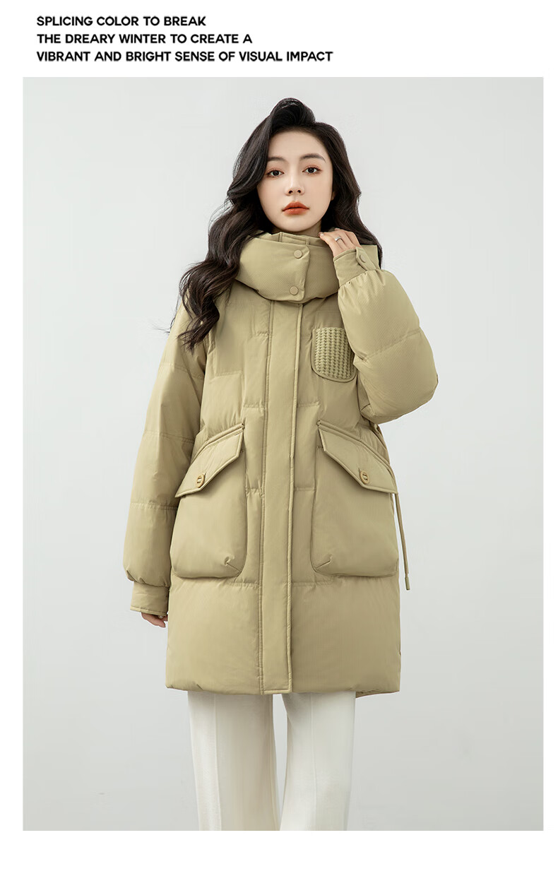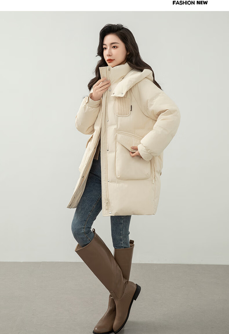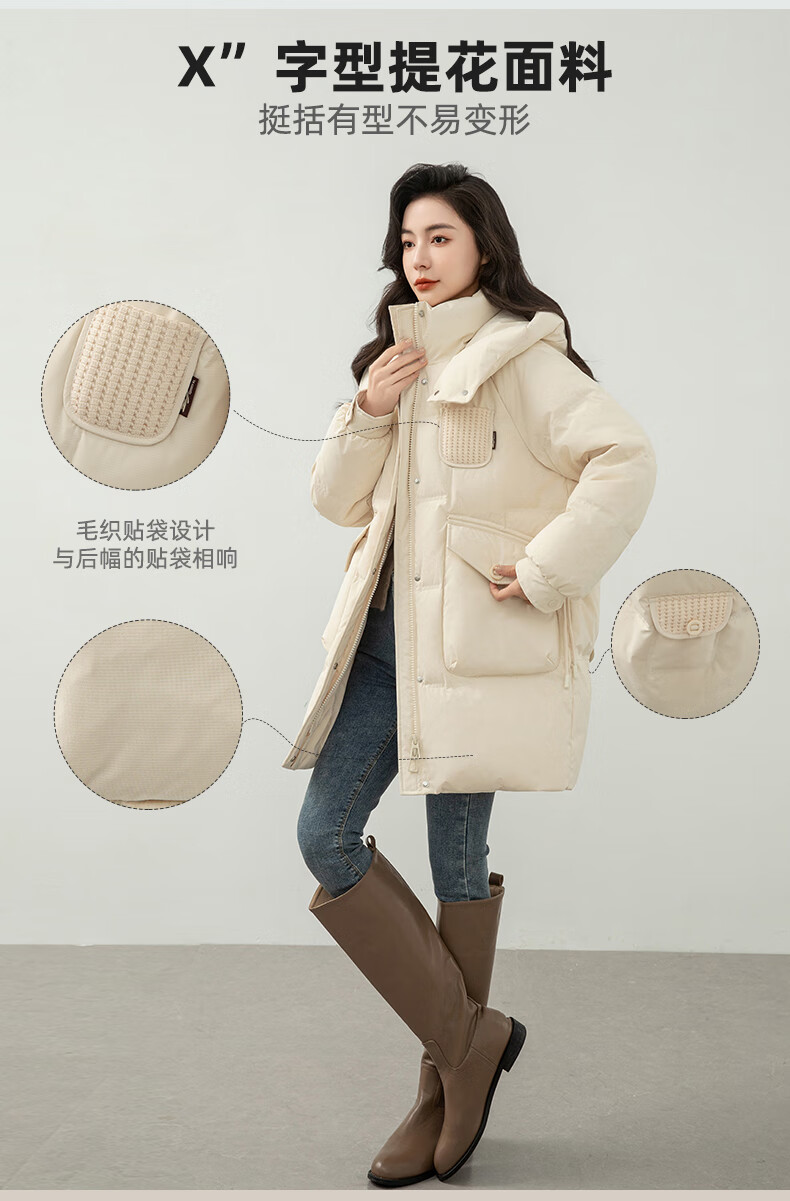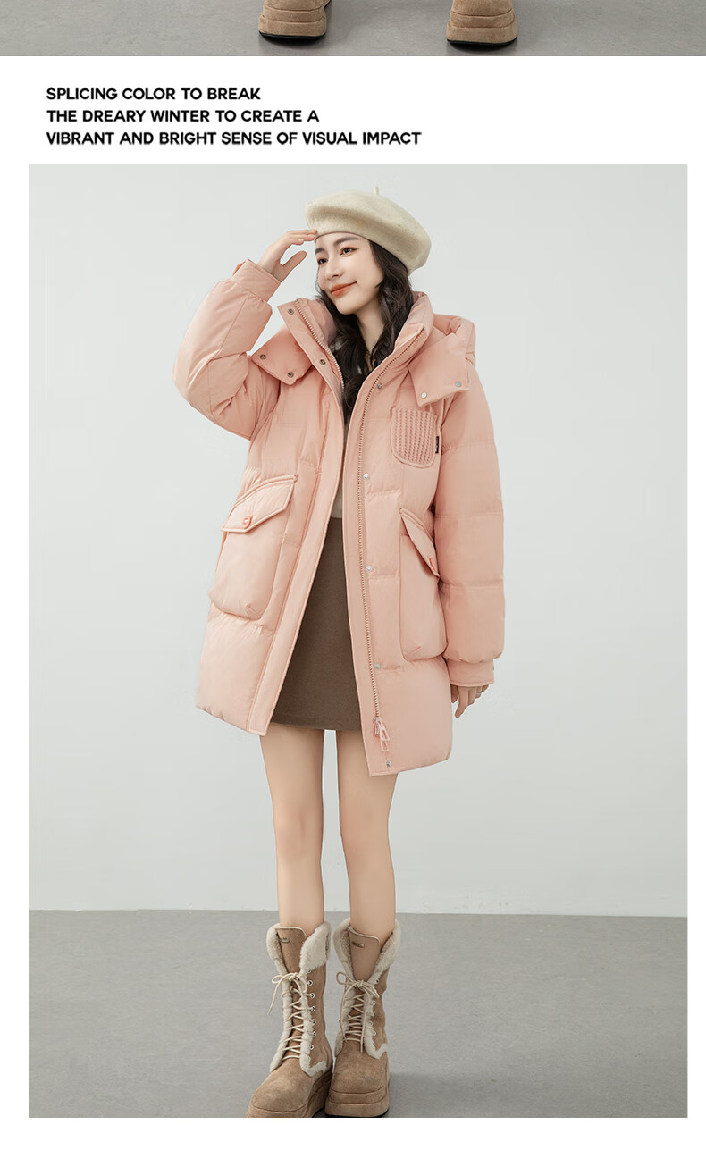 YAYA (YAYA) Qi Ji Red Zodiac Year Women's Medium Long Down Jacket 2025 Winter New Year Fashion Korean Style Hooded Warm Jacket Trendy Maroon-YE3B635155L Zodiac Red/Lucky Style M 110-140 Jin