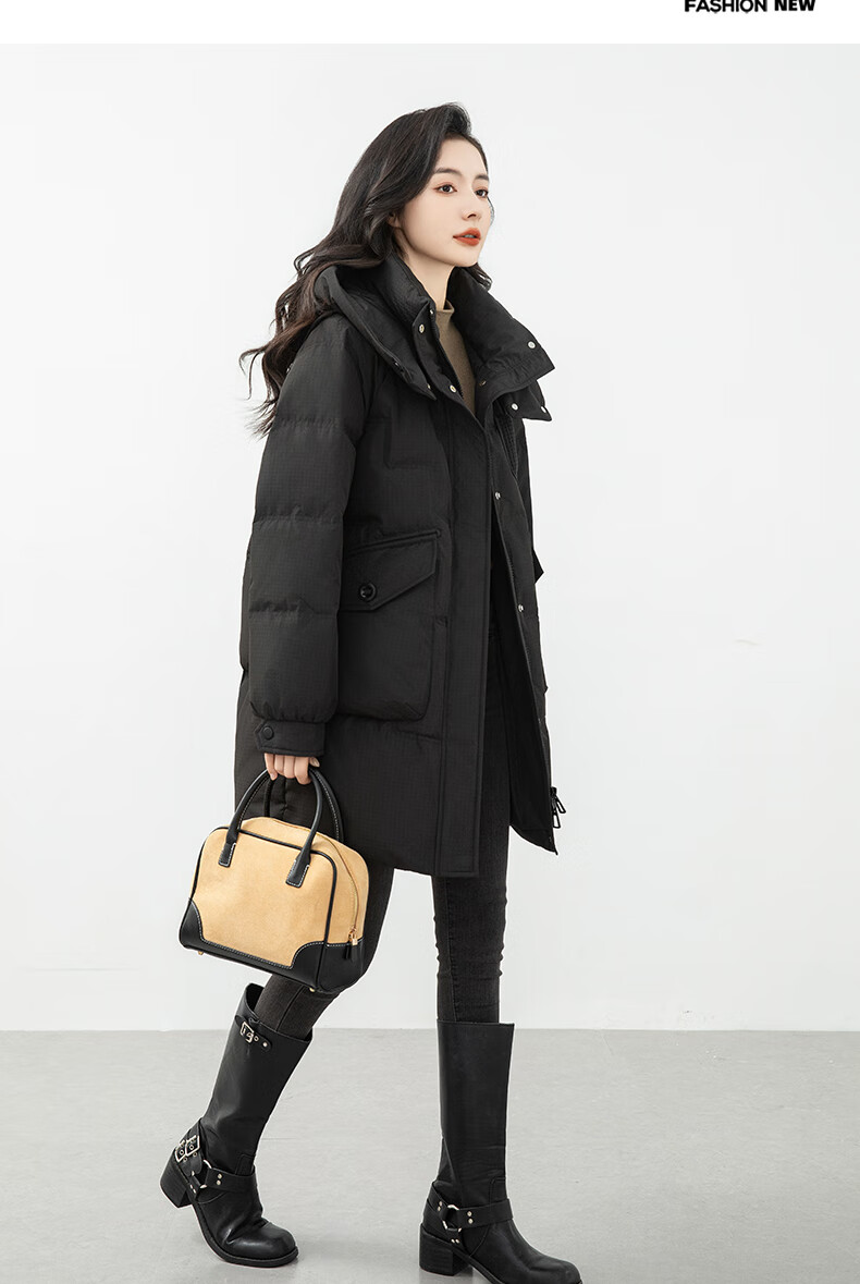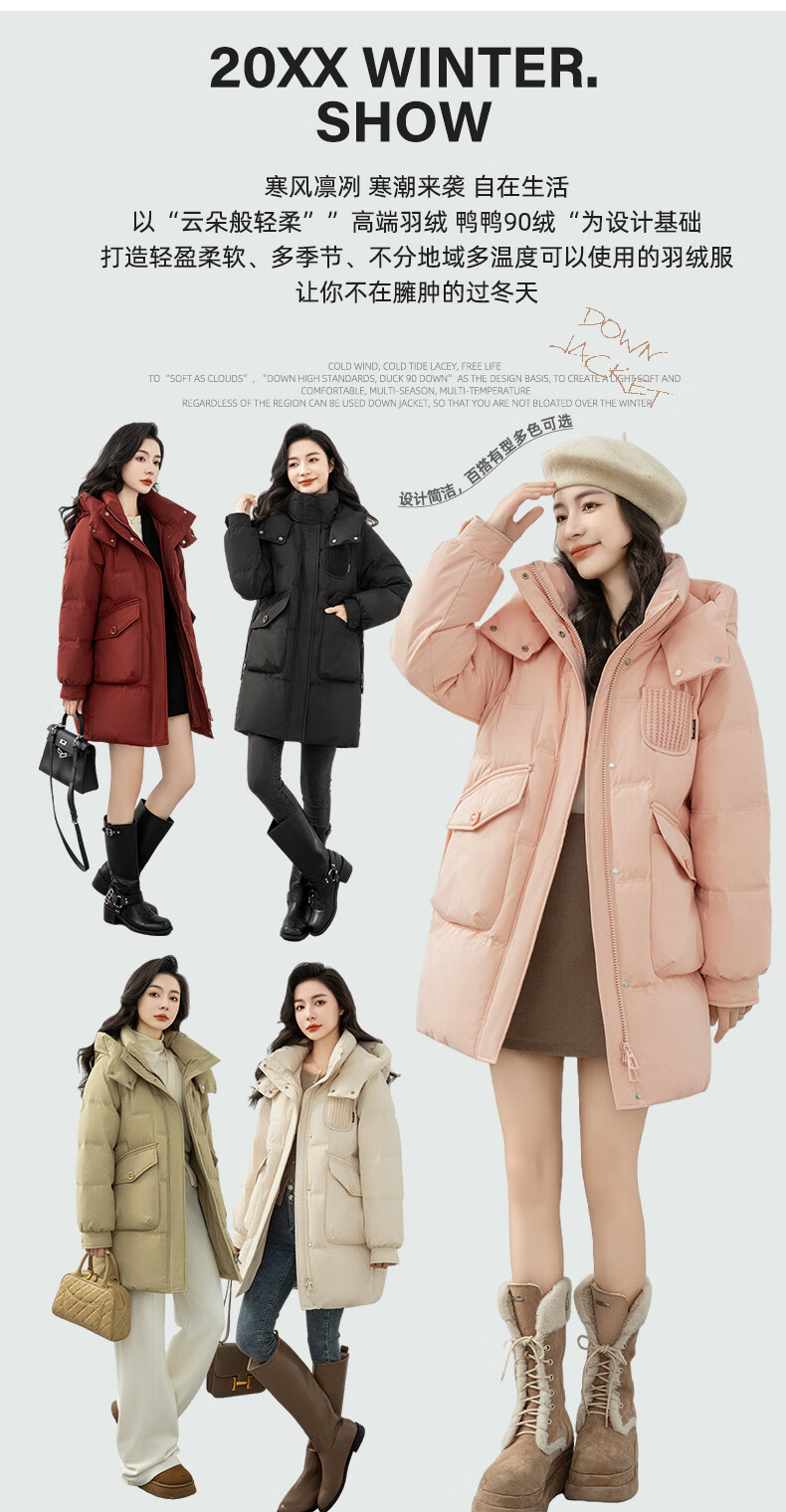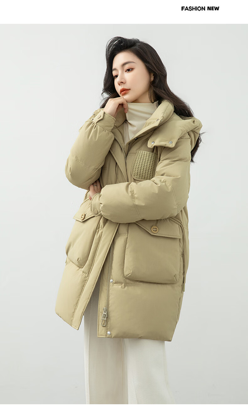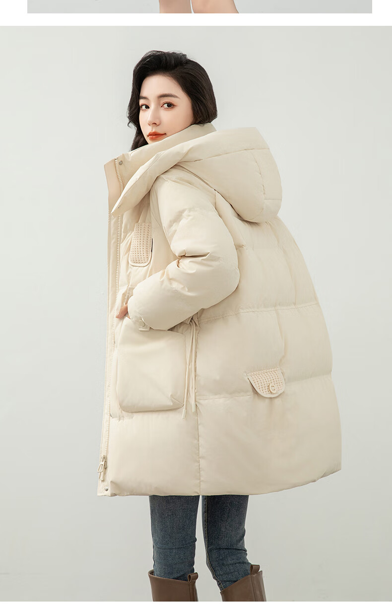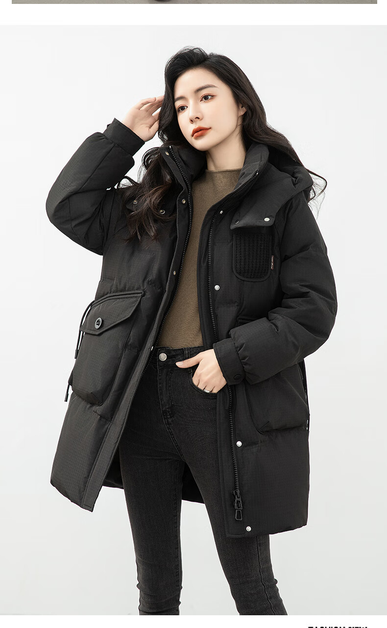 YAYA (YAYA) Qi Ji Red Zodiac Year Women's Medium Long Down Jacket 2025 Winter New Year Fashion Korean Style Hooded Warm Jacket Trendy Maroon-YE3B635155L Zodiac Red/Lucky Style M 110-140 Jin