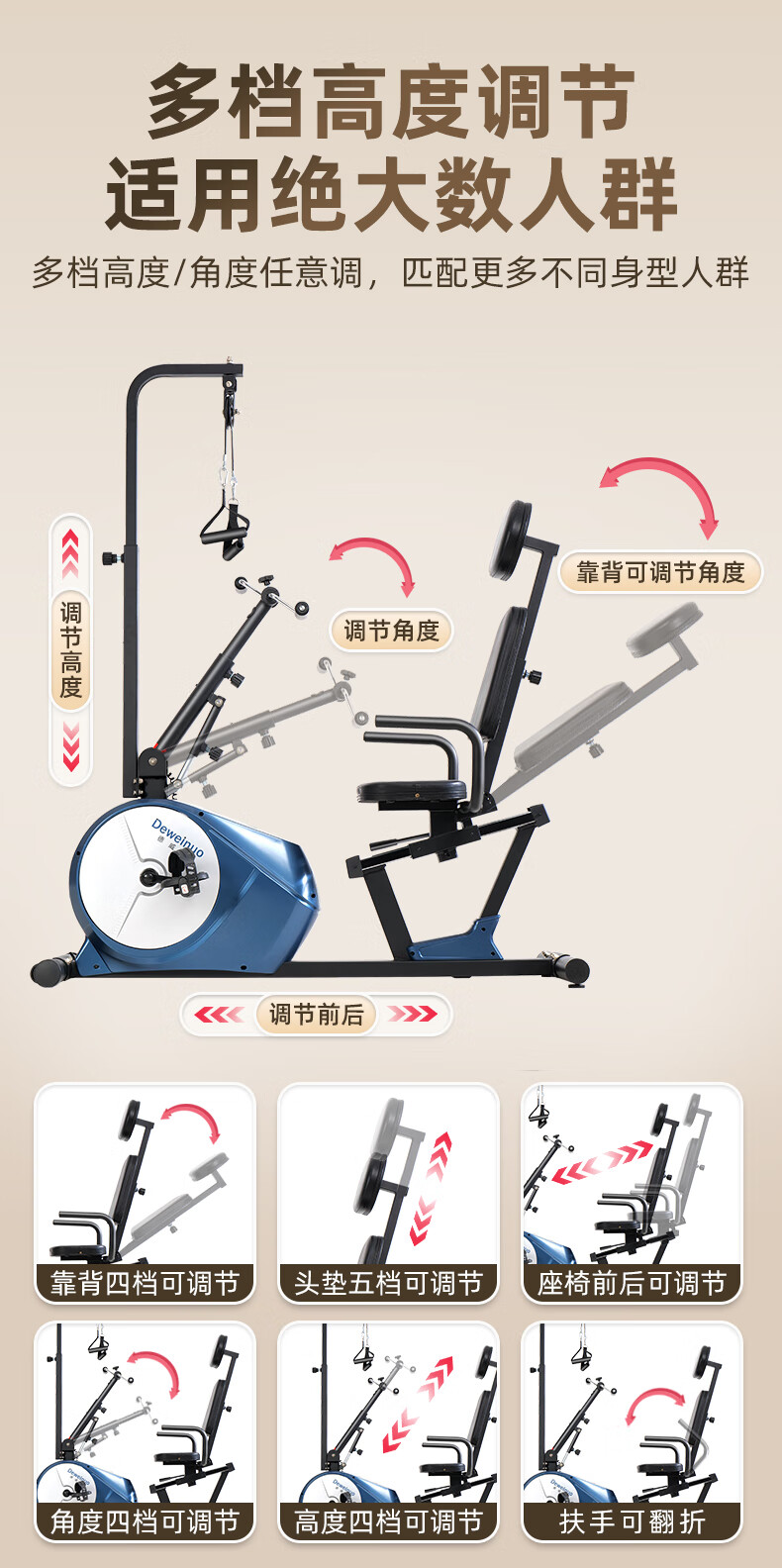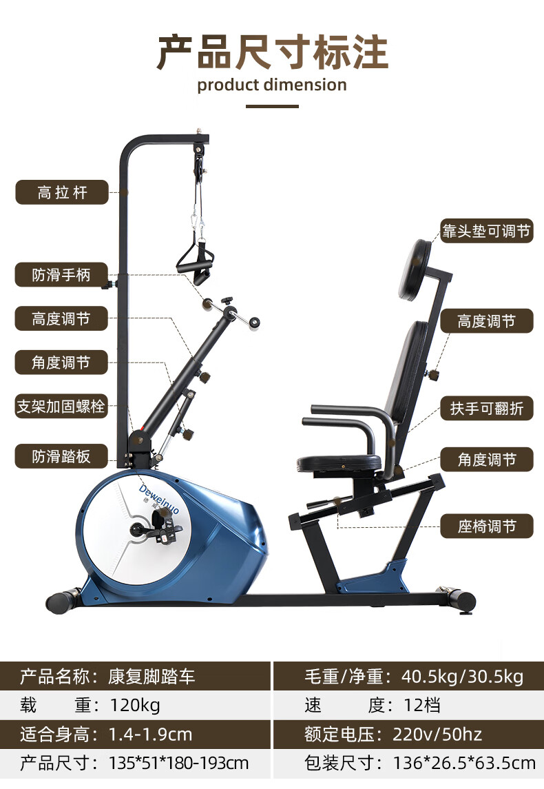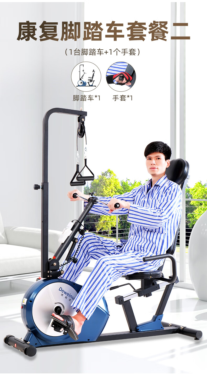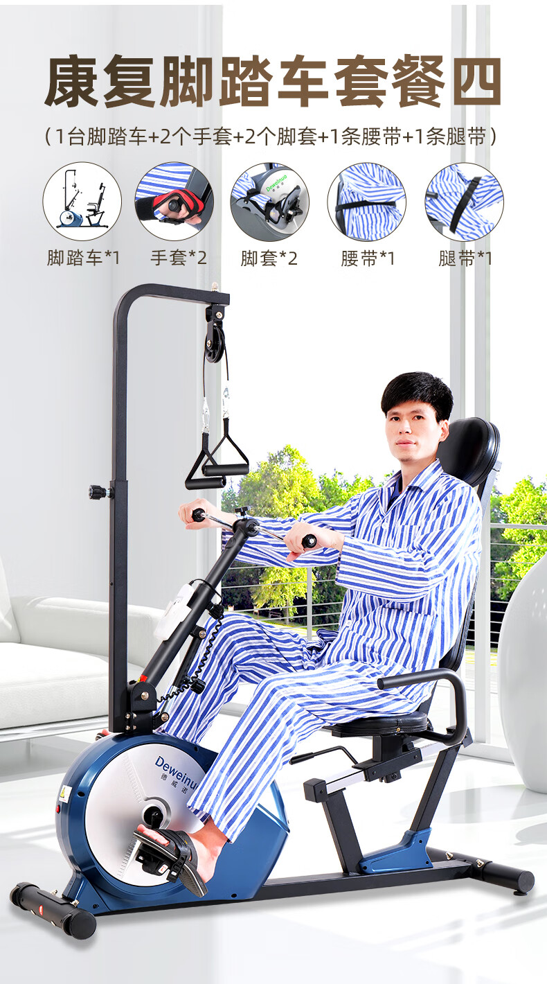 Devino elderly recumbent electric bicycle home stroke hemiplegia limb linkage leg exercise rehabilitation training equipment 821SD leg electric + gloves tripod 2 waist and leg belt 1