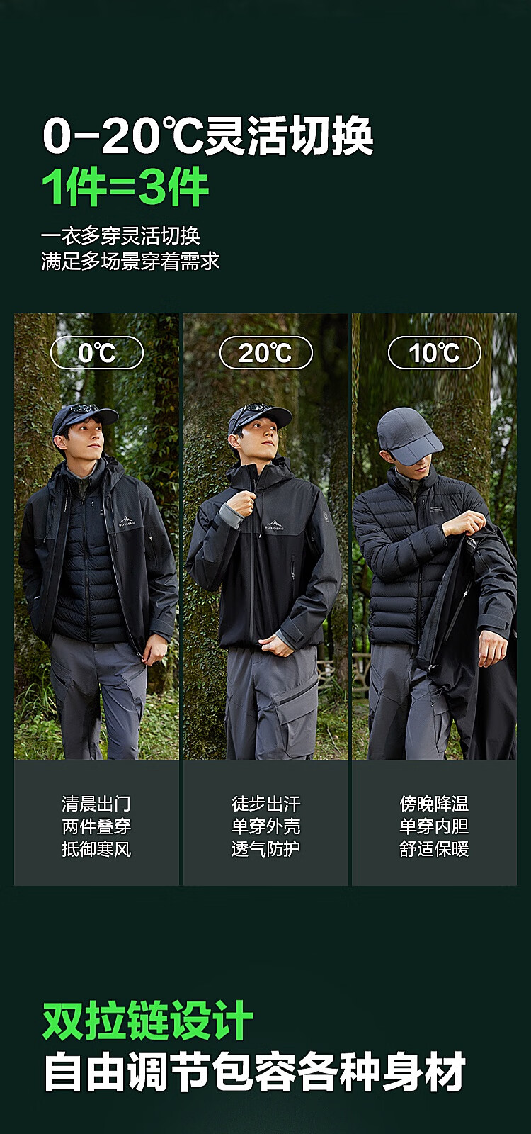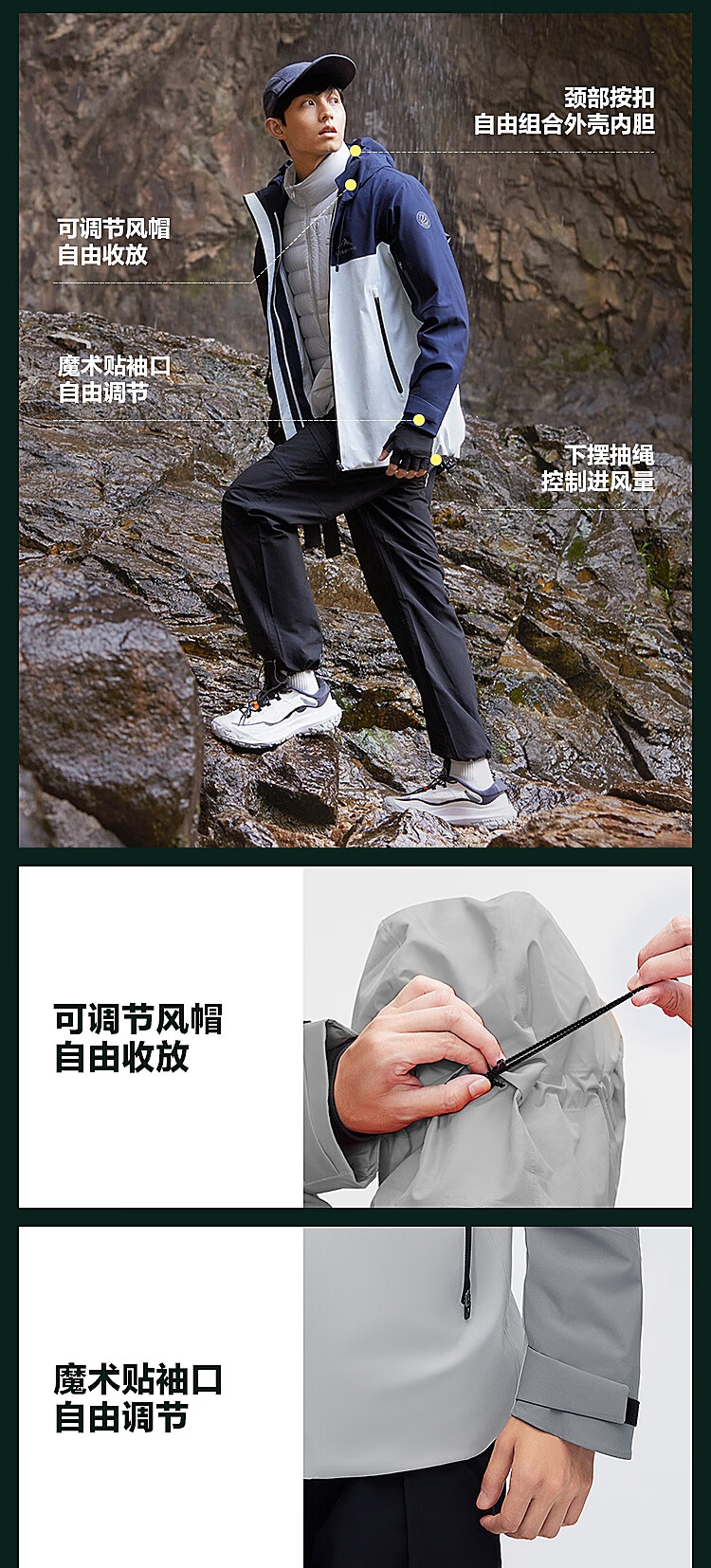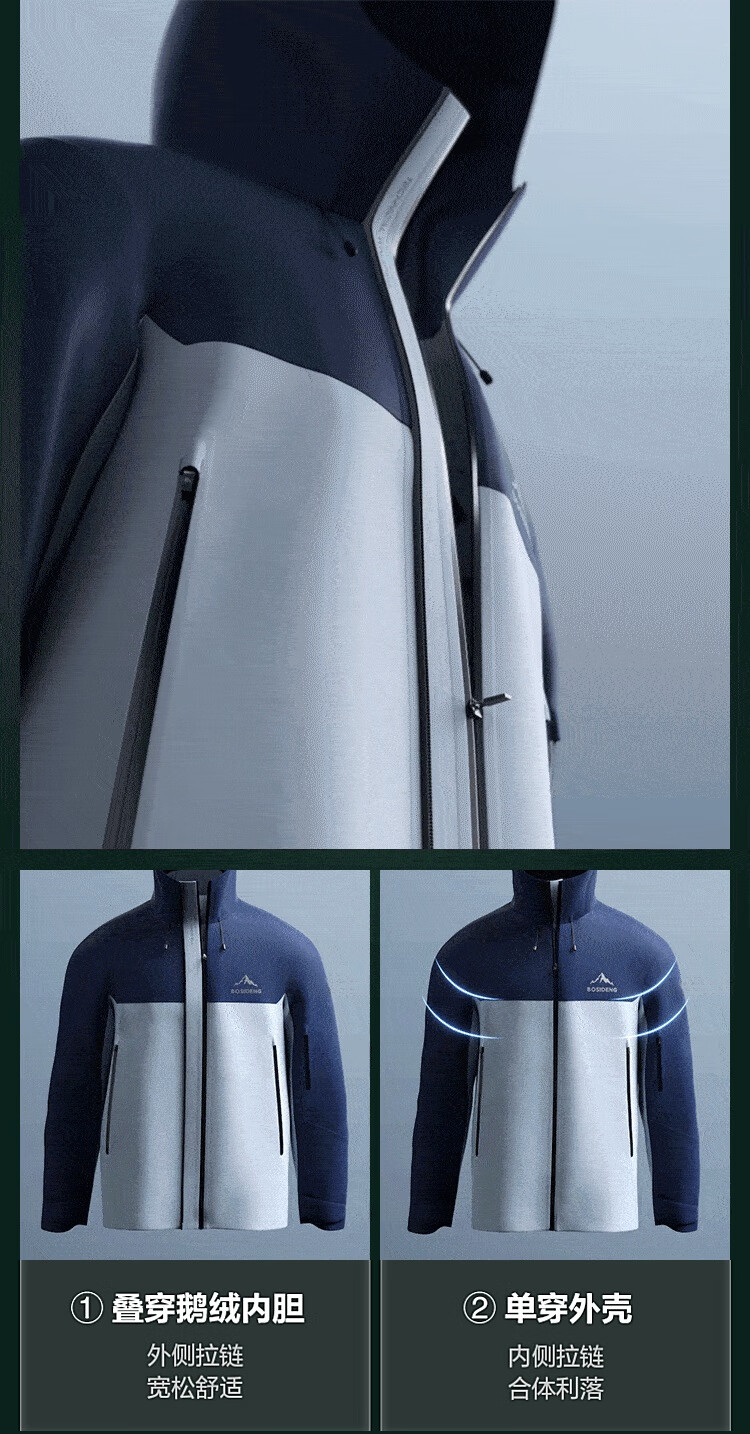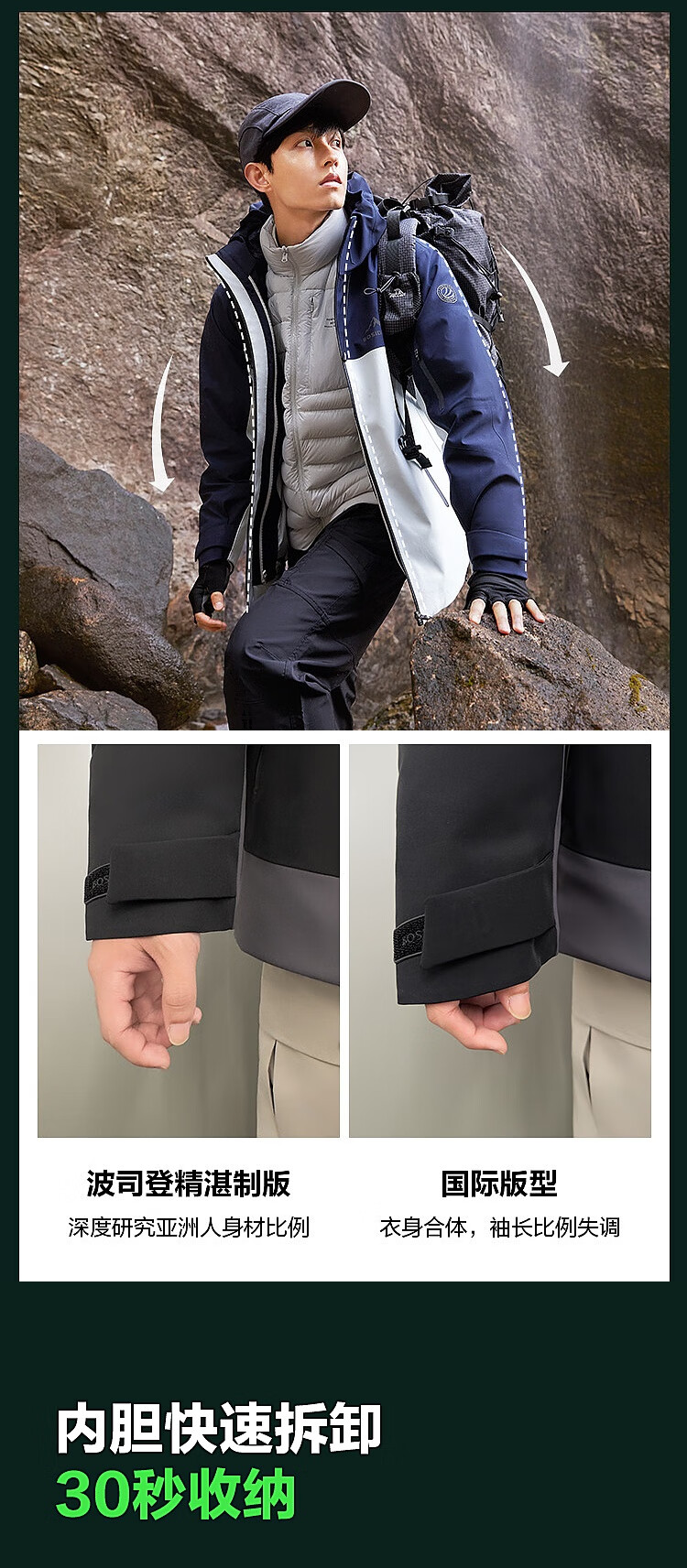 Bosideng (BOSIDENG) Gu Ailing's same style jacket, goose down down jacket, short style, same style for men and women, 90 velvet three-in-one mountaineering jacket. Store manager recommends Jiyan Gray Slate Gray 898A XL 175/96A