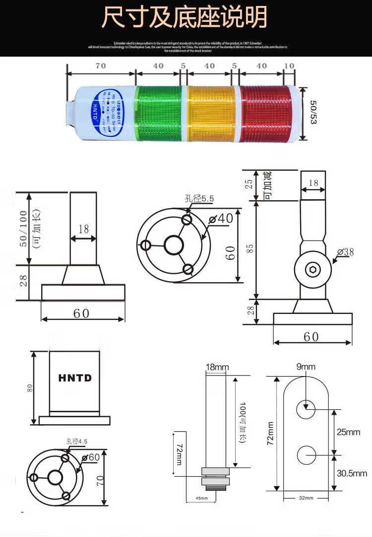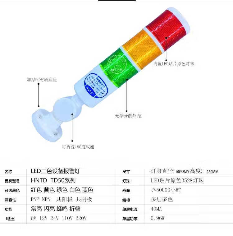 South China Tiancheng HNTD three-color light TD-50 D50 multi-layer warning light LED machine tool signal indication three-color light red, yellow and green barrel DC24V constant flash universal sound