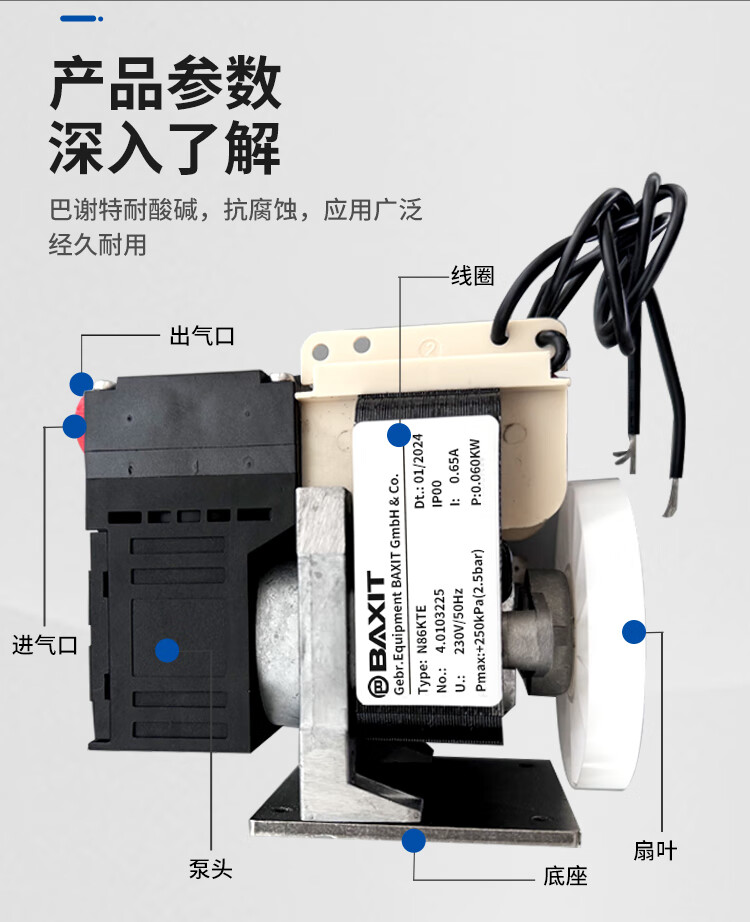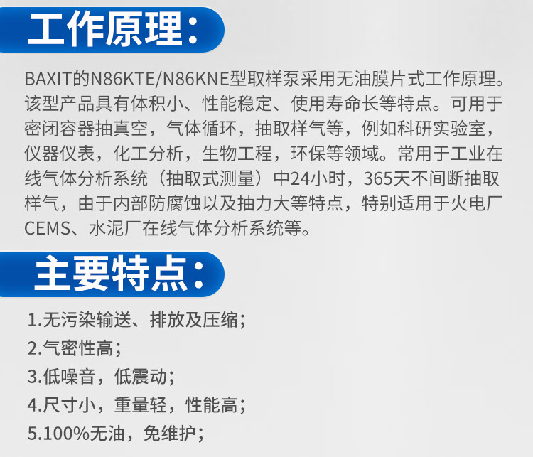German BAXIT N86KNE N86KTE vacuum pump sampling pump sampling pump air pump CEMS system N86KNE-not internally anti-corrosion