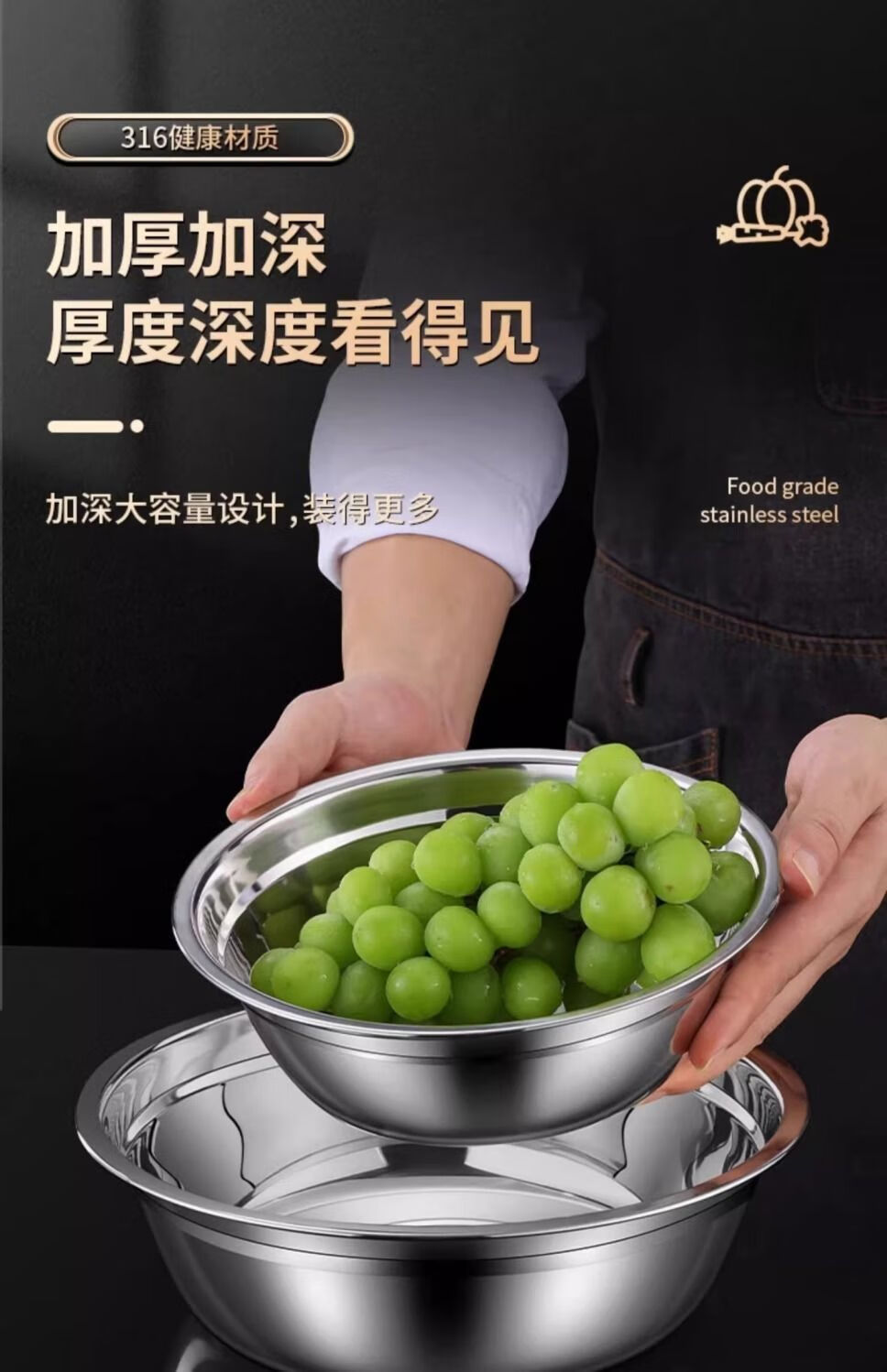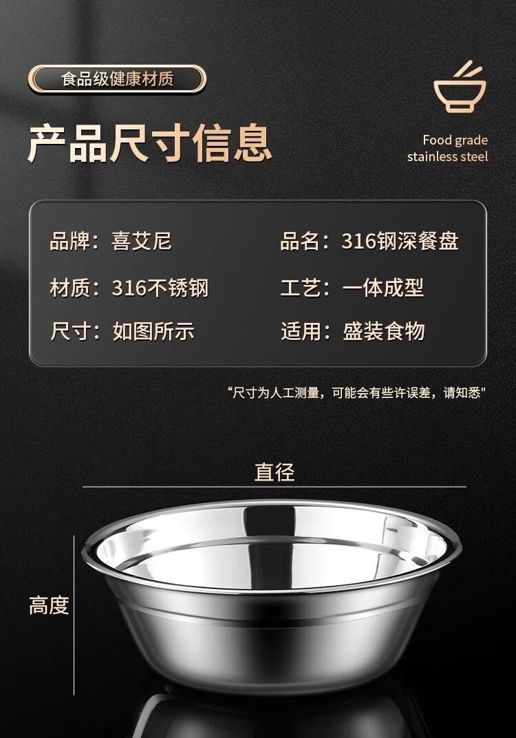 Hongyu 316L stainless steel basin set vegetable basin household oil basin kitchen egg and noodle soup basin 16cm single piece thickened 316 stainless steel