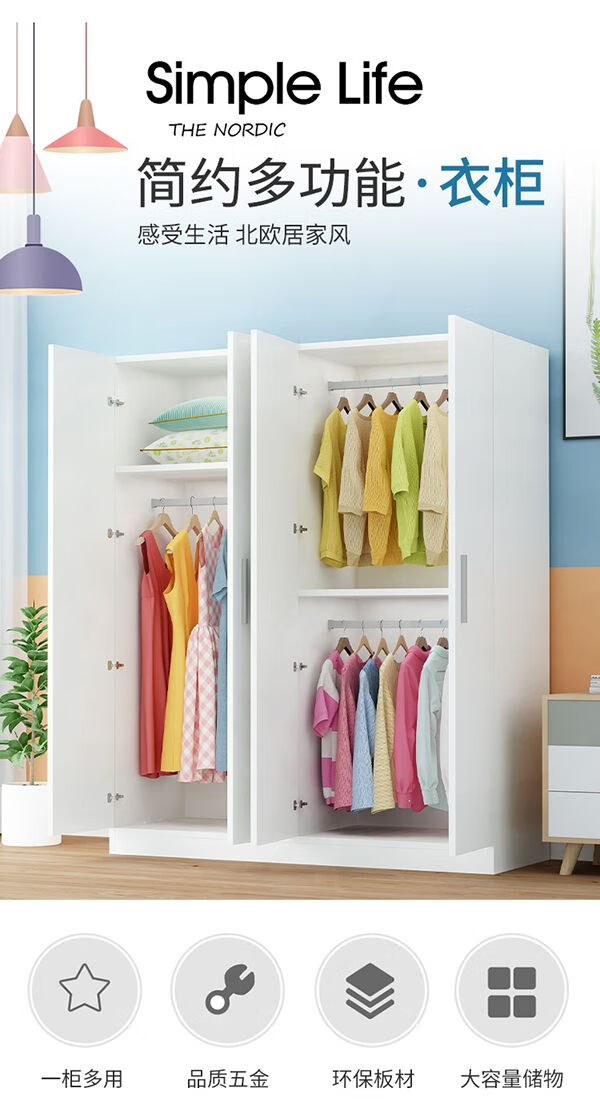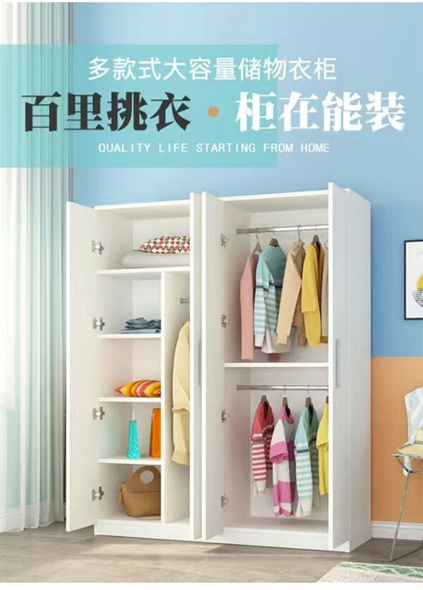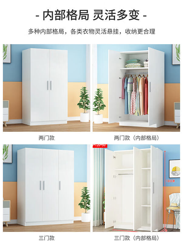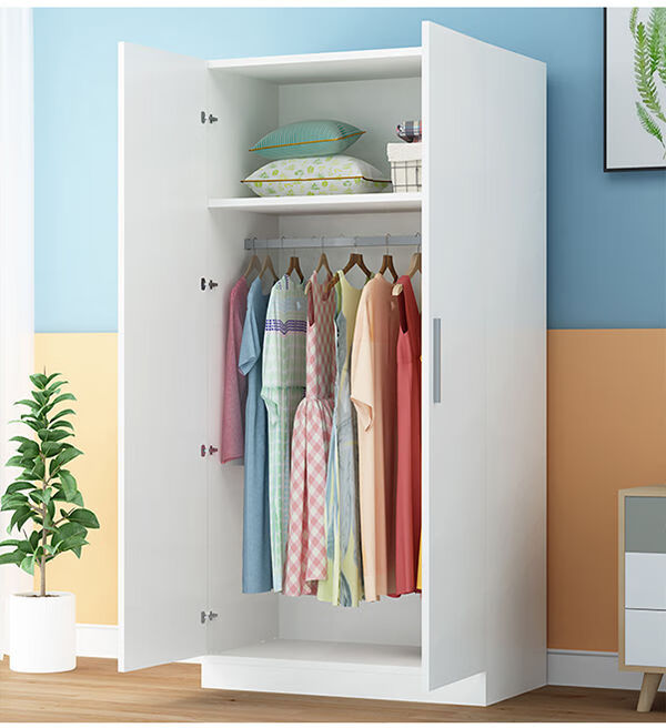 Kaiyu Wardrobe Home Bedroom Modern Simple Panel Storage Wardrobe Economical Wardrobe Rental Simple Cabinet Warm White 2 Doors 160 Height 80 Width 40 Depth Urban Delivery to Downstairs Installation by Yourself