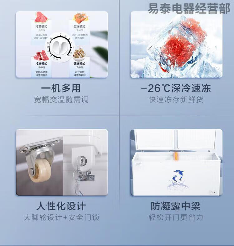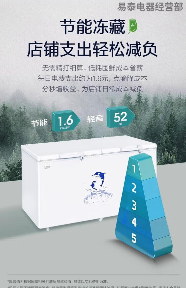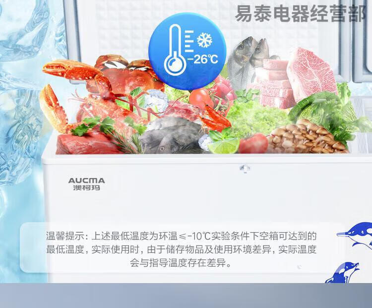 AUCMA Freezer 520l 730 liters commercial large capacity single temperature fresh-keeping refrigeration fully frozen horizontal freezer 730 liters length, width and height 1985*792*898