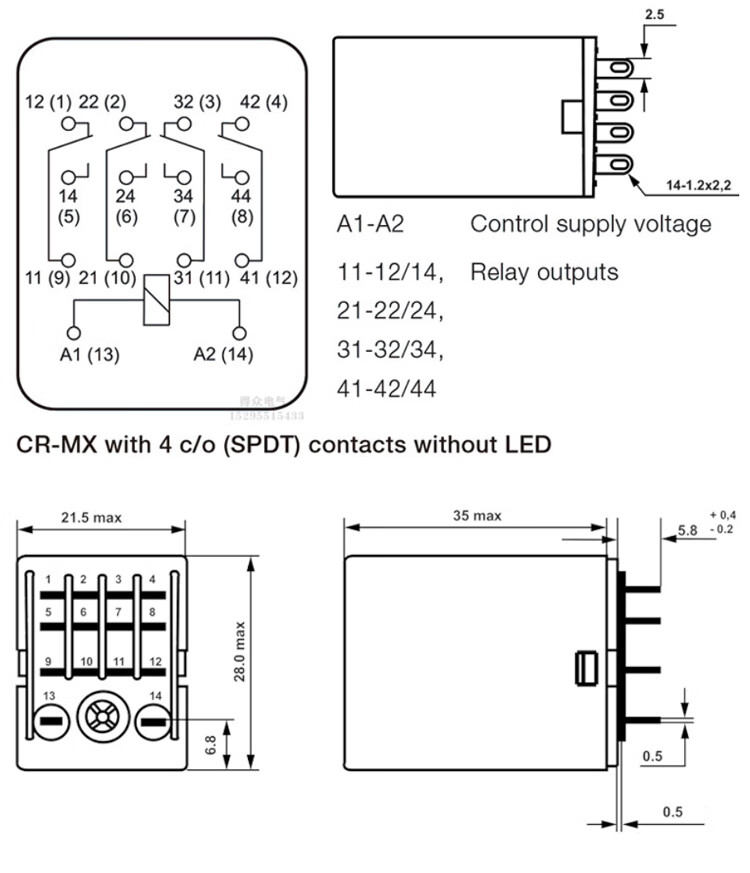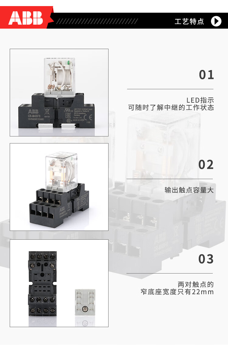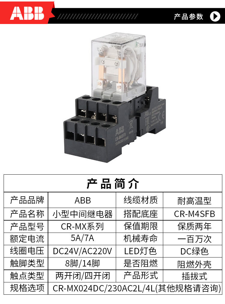 ABB middle small relay CR-MX230AC2L AC 8-pin CR-MX024DC4L DC 14-pin electromagnetic CR-MX230AC4L standard base CR-M4SFB