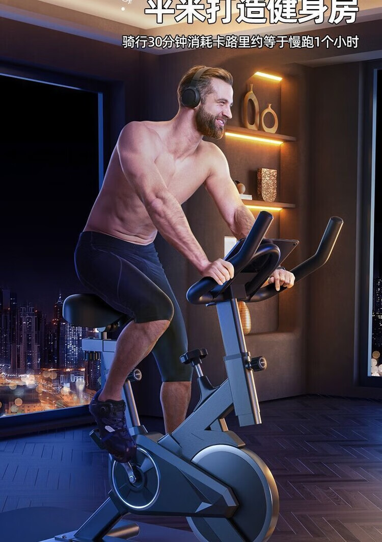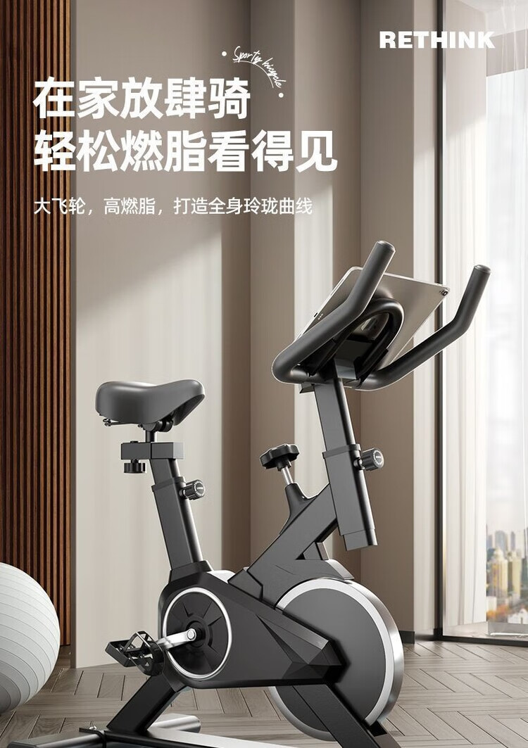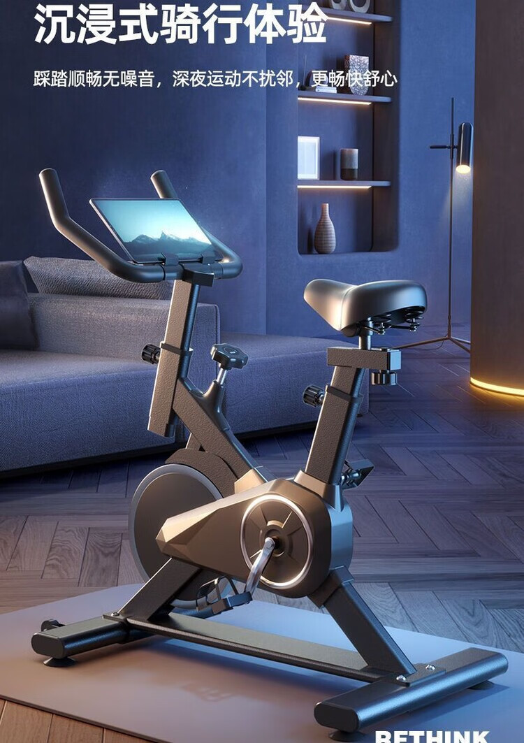 Household spinning exercise bike pedal indoor sports bike exercise body weight loss fitness equipment luxury model-Bluetooth music-stepless resistance/white