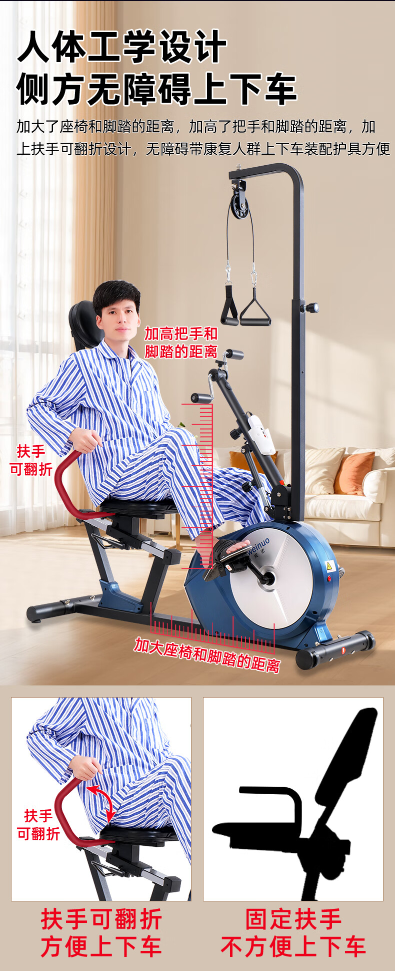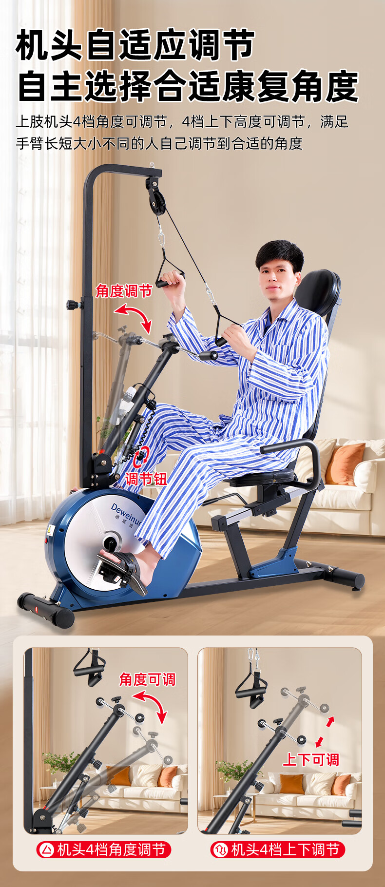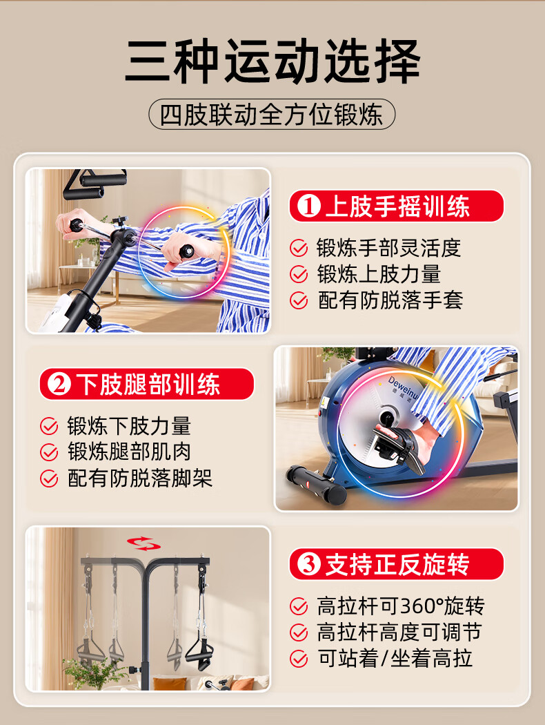 DEWEINUO electric rehabilitation bicycle for home use for the elderly, hand and foot stroke, hemiplegia, limb linkage leg training equipment exercise bike 821SD = electric leg + seat adjustment + adjustable gear