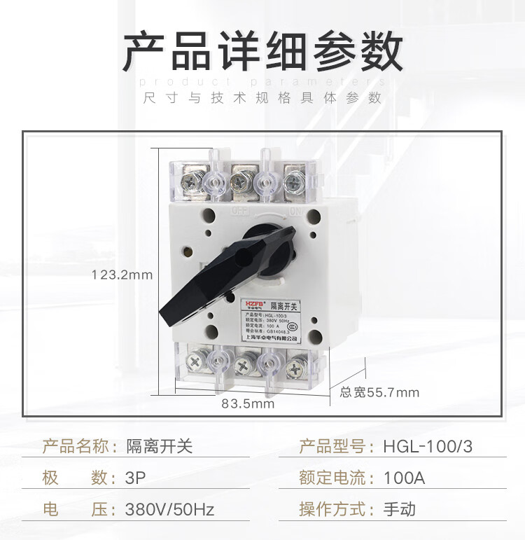 HGL-100/3 three-pole cabinet operation load isolation switch 100A isolation switch thickened copper