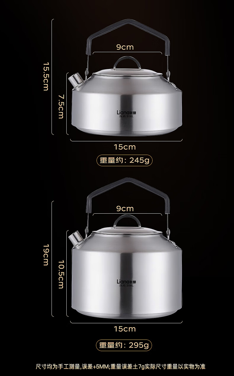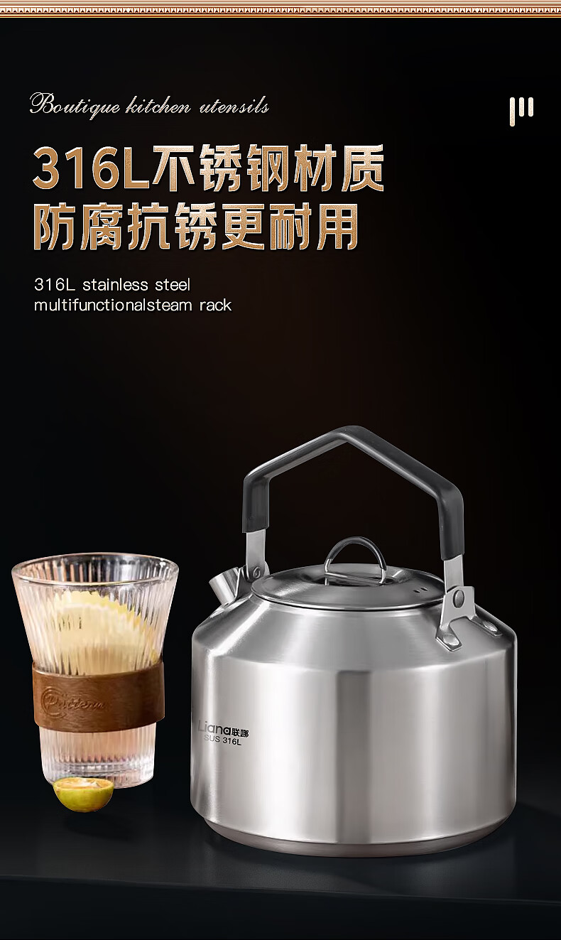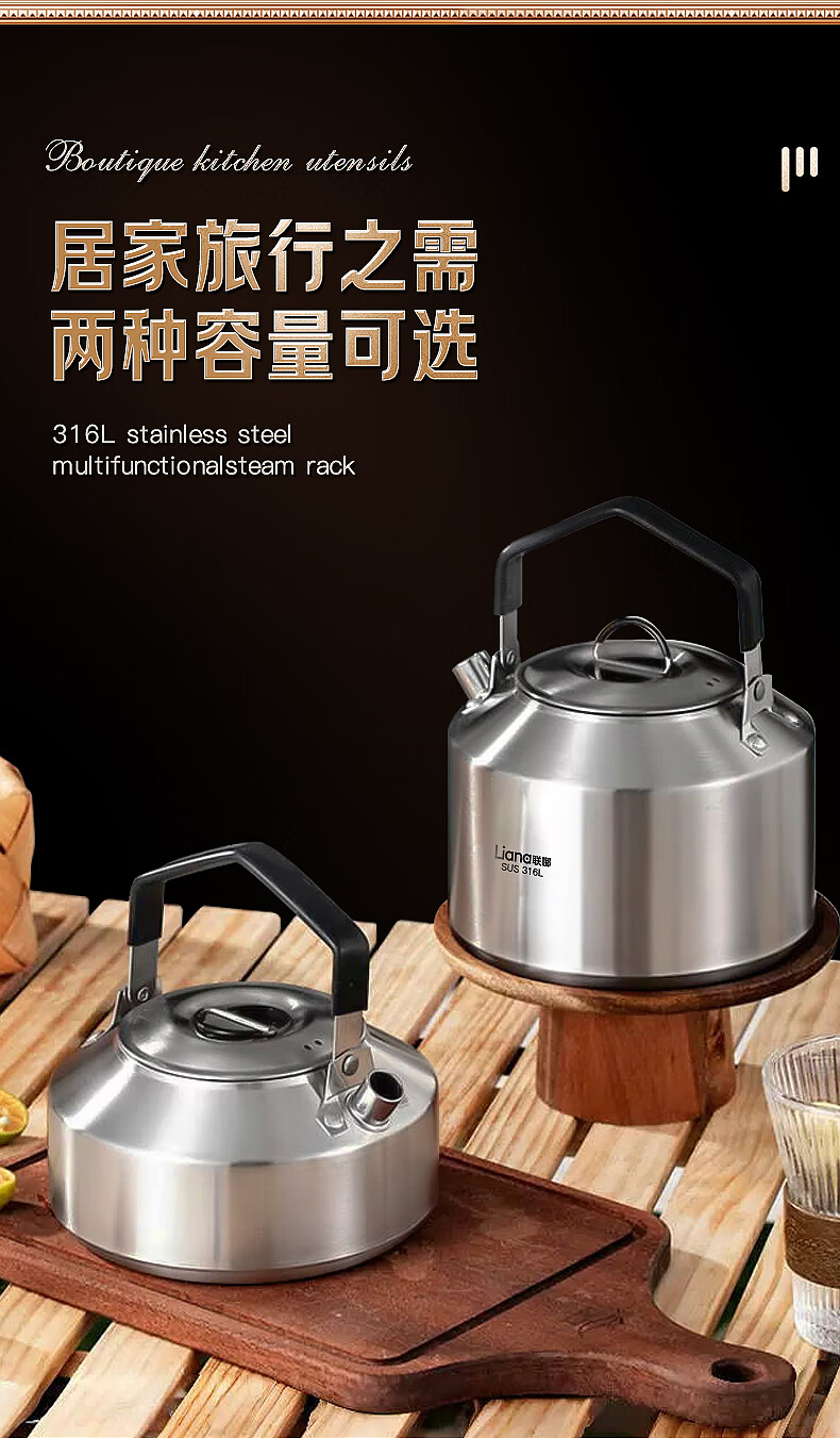 Lianna 316L stainless steel kettle camping teapot hand-brewed coffee tea stove open fire teapot portable outdoor kettle 316L outdoor kettle 1500ml