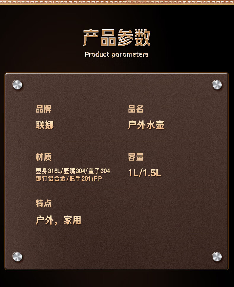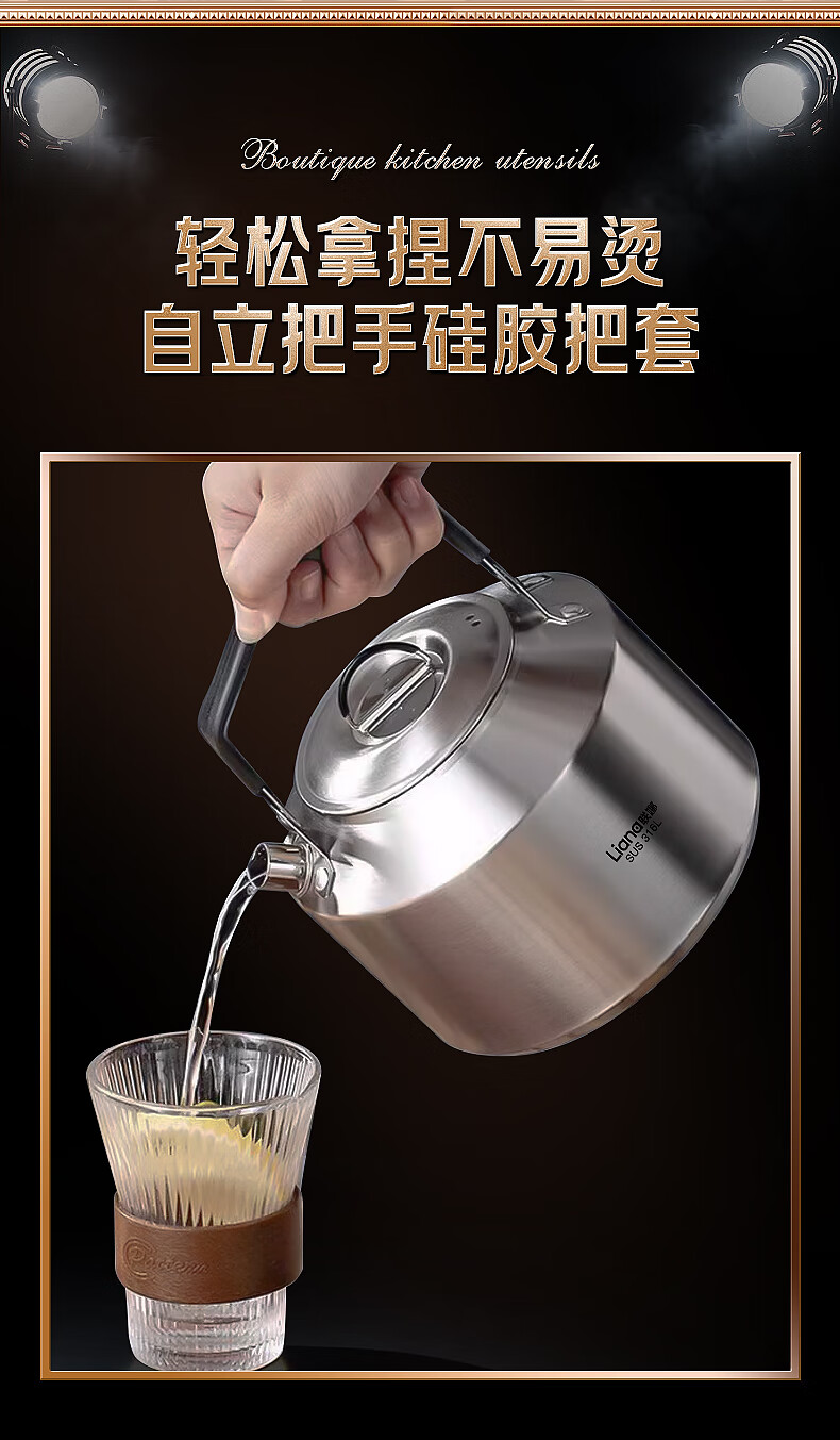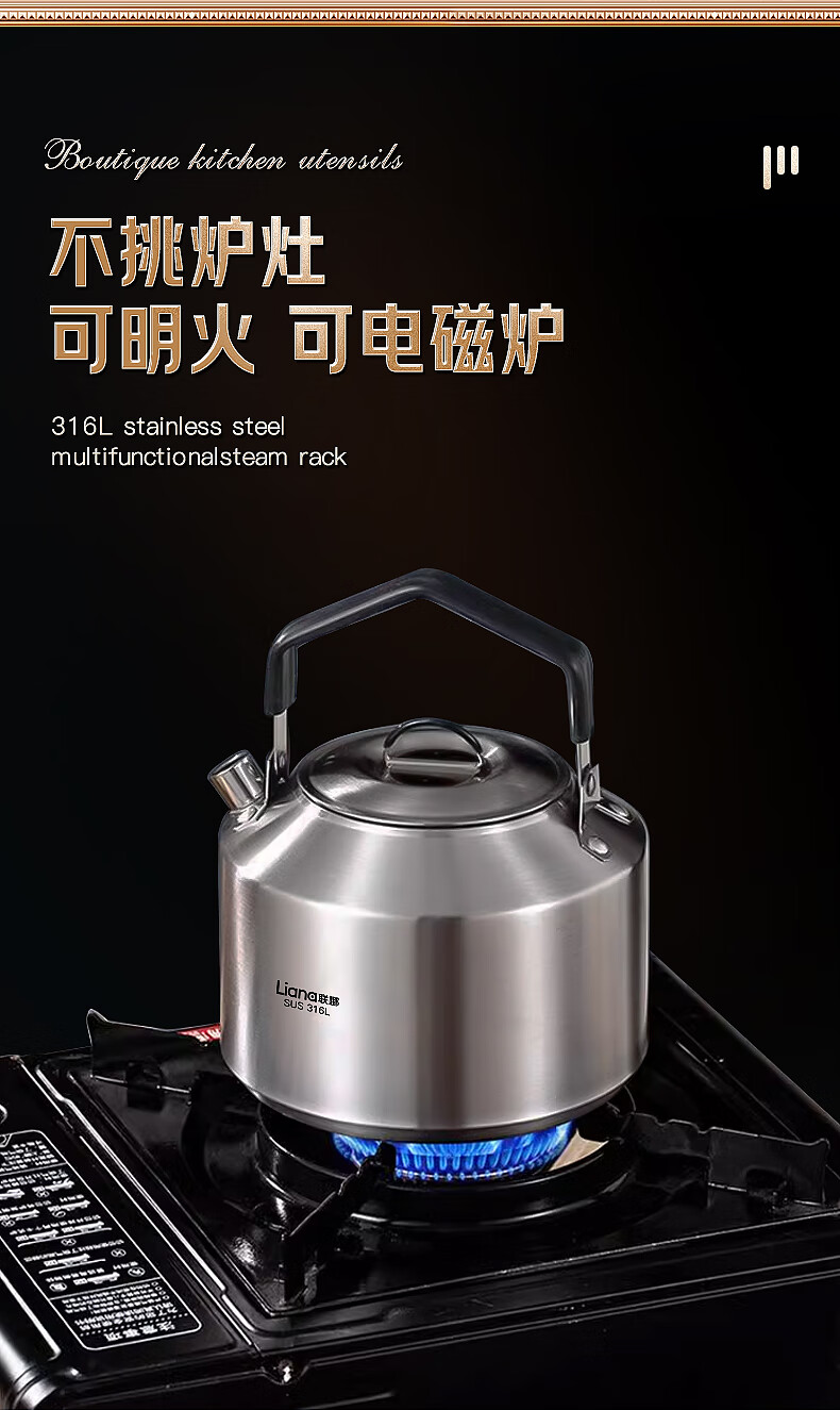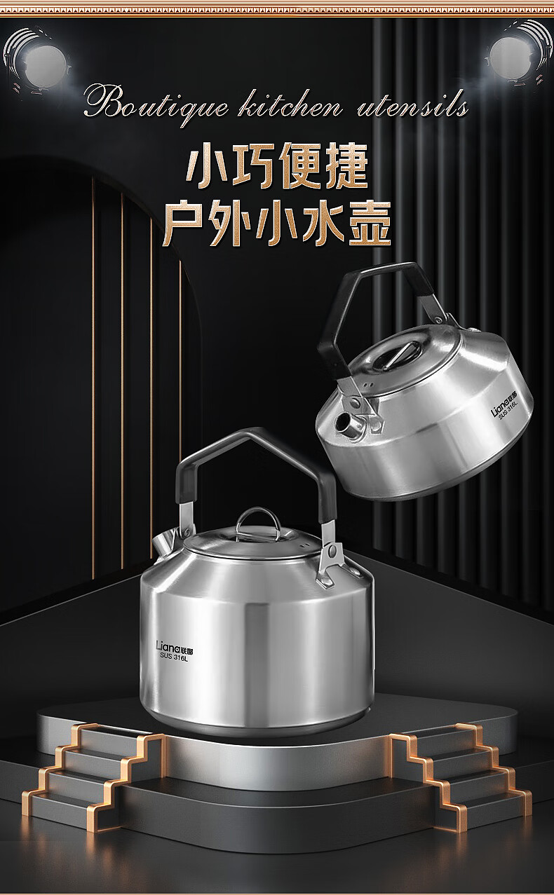 Lianna 316L stainless steel kettle camping teapot hand-brewed coffee tea stove open fire teapot portable outdoor kettle 316L outdoor kettle 1500ml