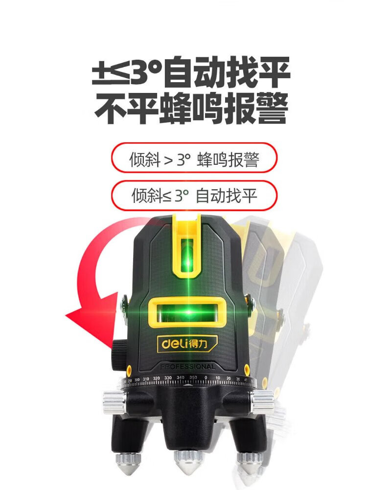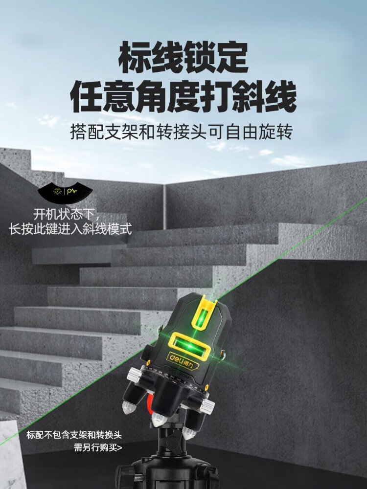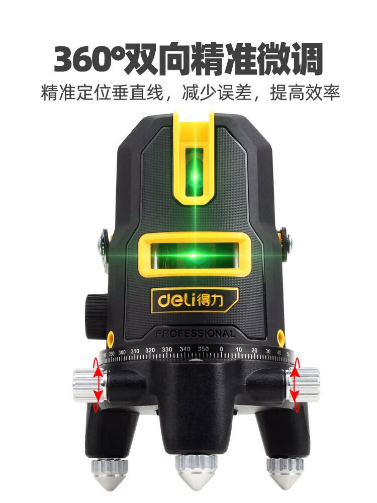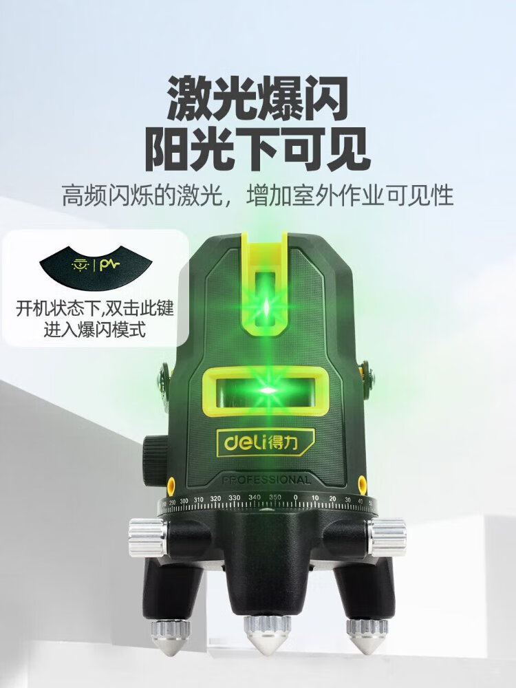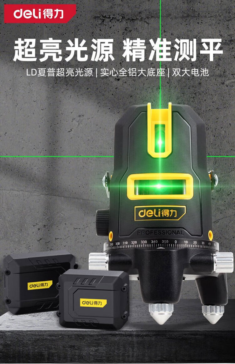 Deli laser level 2 lines 3 lines 5 lines green light outdoor strong light infrared level meter with enhancement point double electric projection line 2 line green light level meter double lithium battery