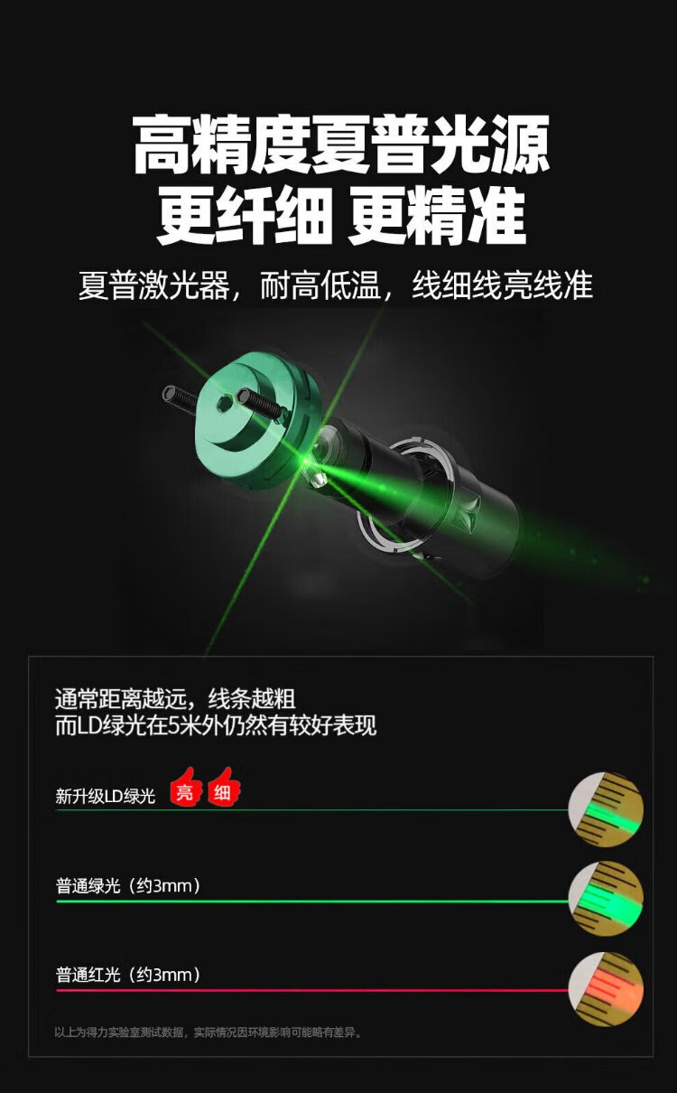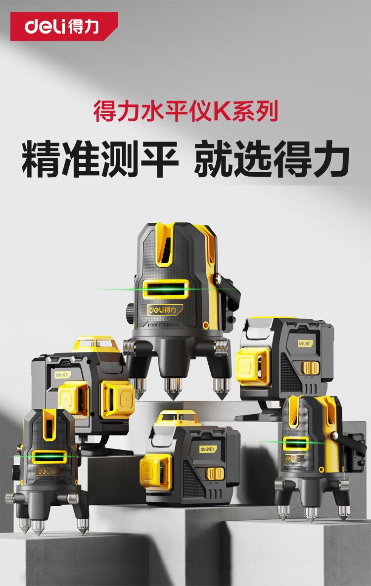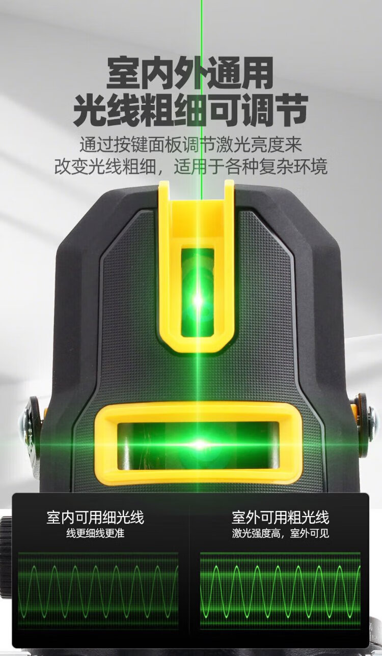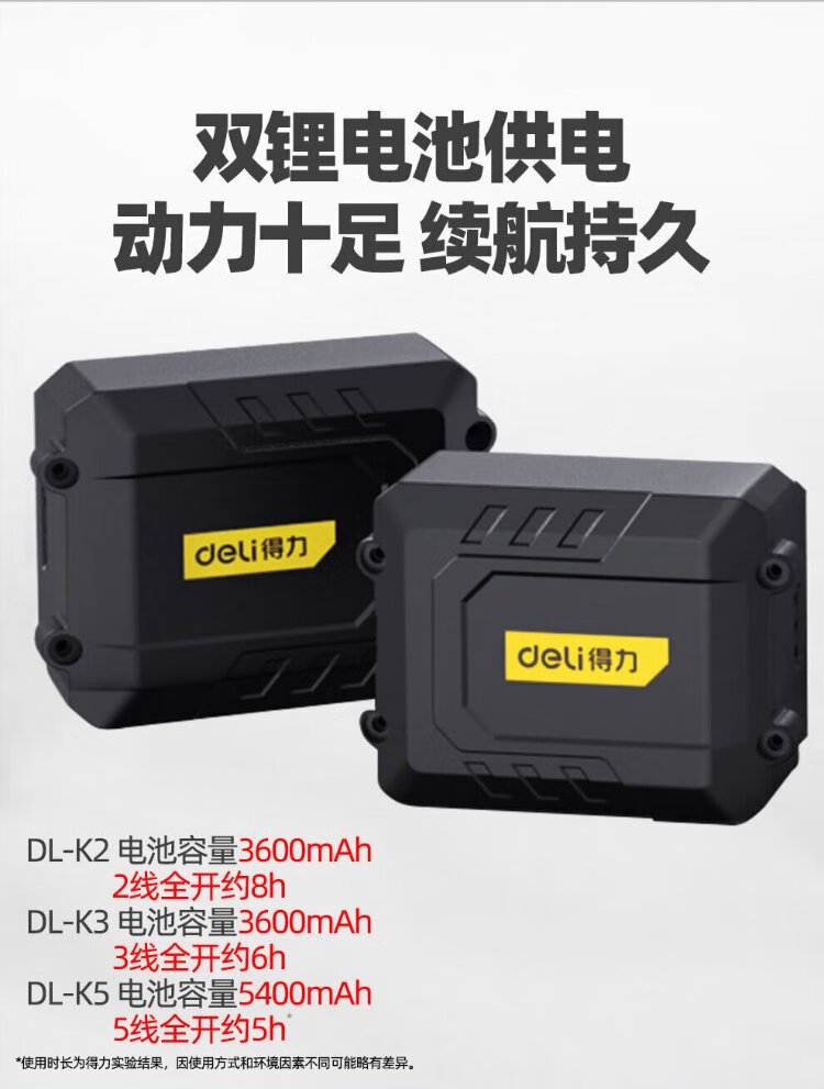 Deli laser level 2 lines 3 lines 5 lines green light outdoor strong light infrared level meter with enhancement point double electric projection line 2 line green light level meter double lithium battery