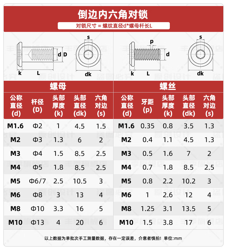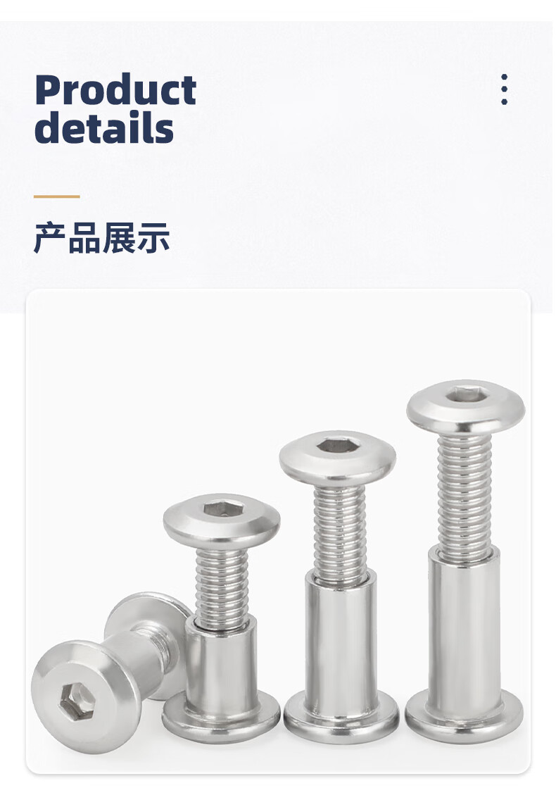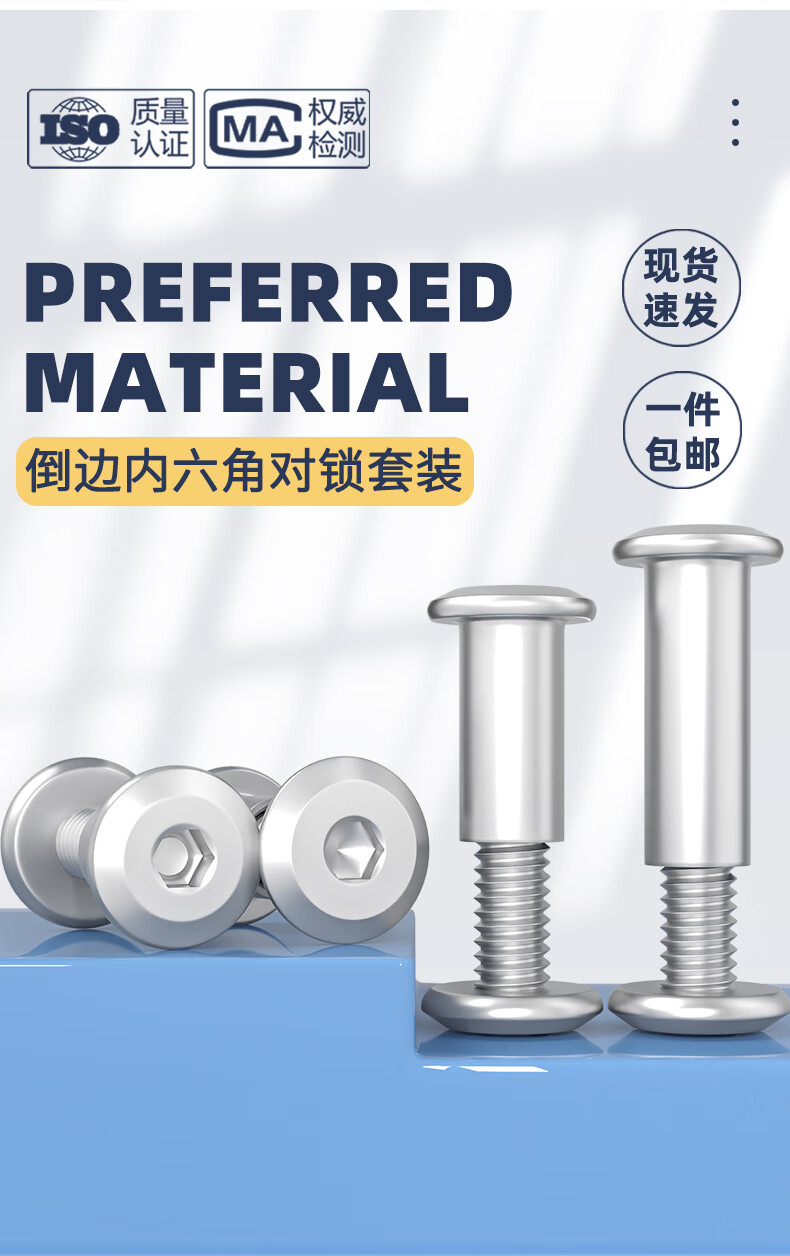 Fengji 304 stainless steel locking screw nut beveled inner hexagonal nut furniture connection plywood butt bolt M3-M8 M6*32 rod diameter 8 5 sets