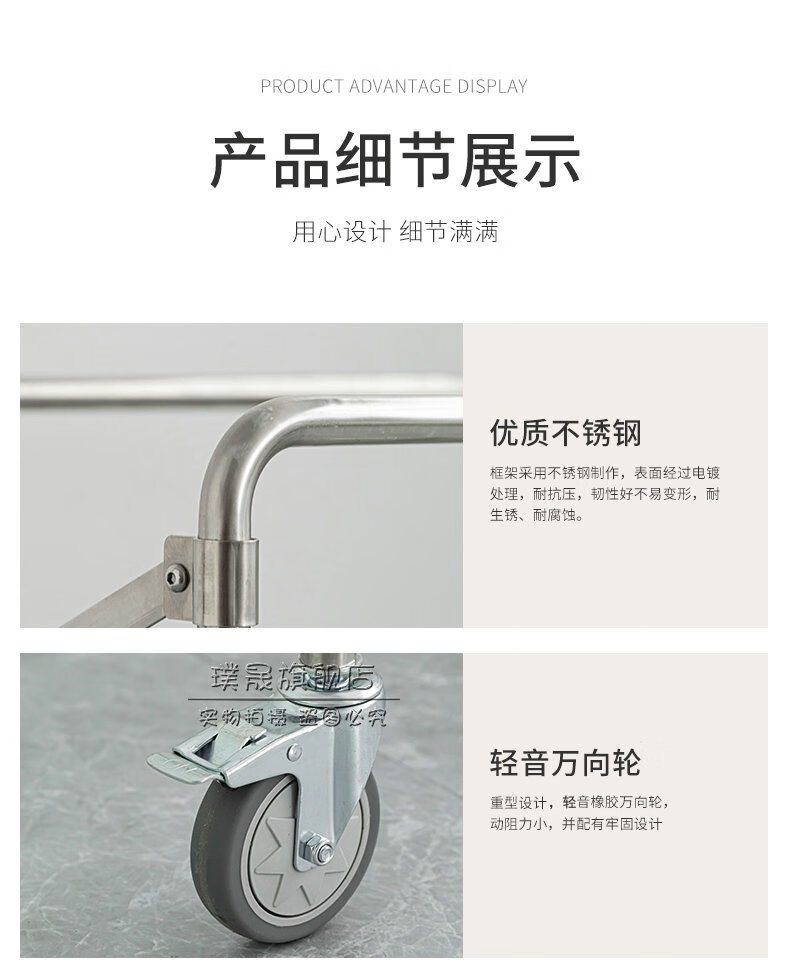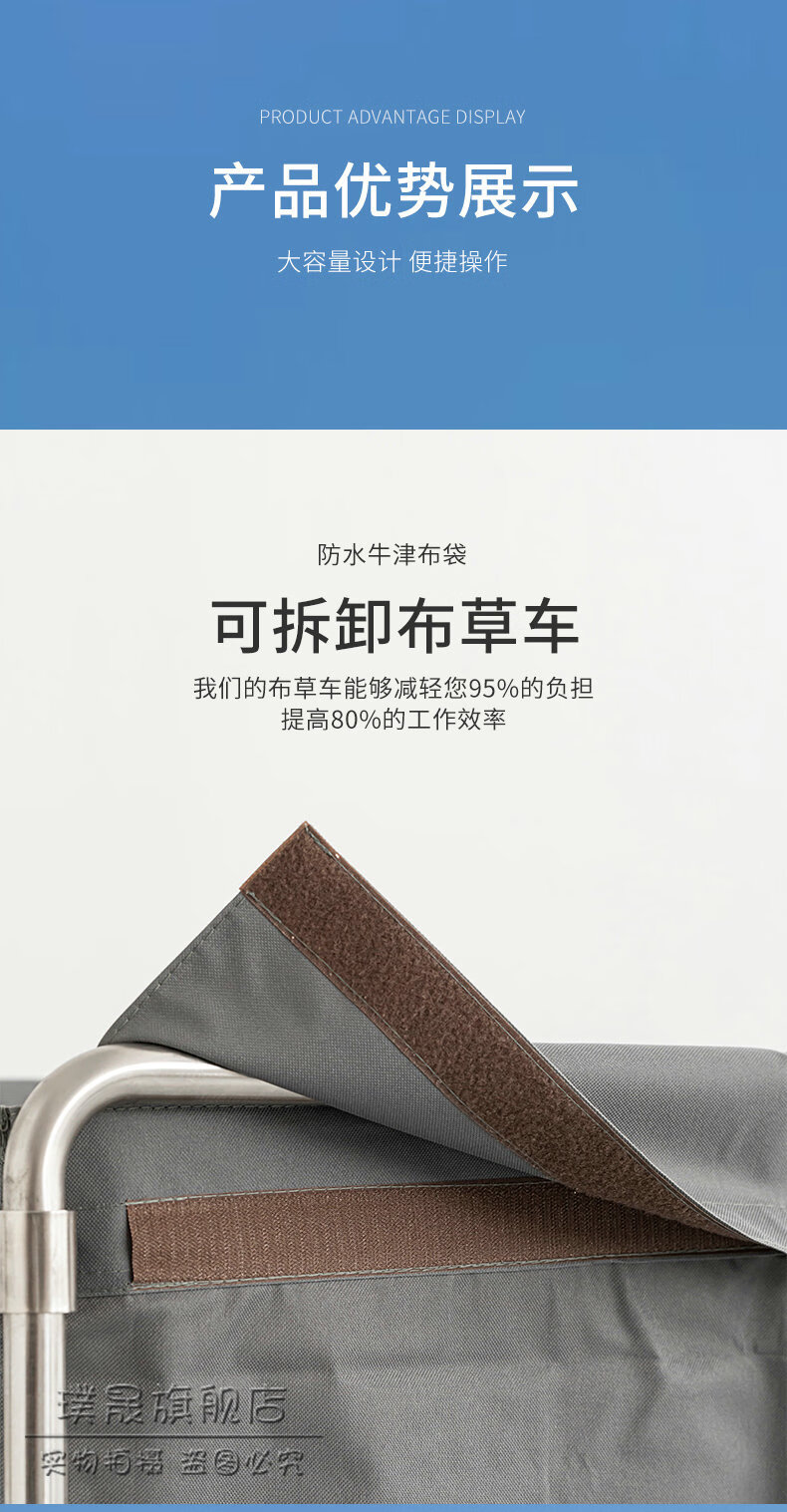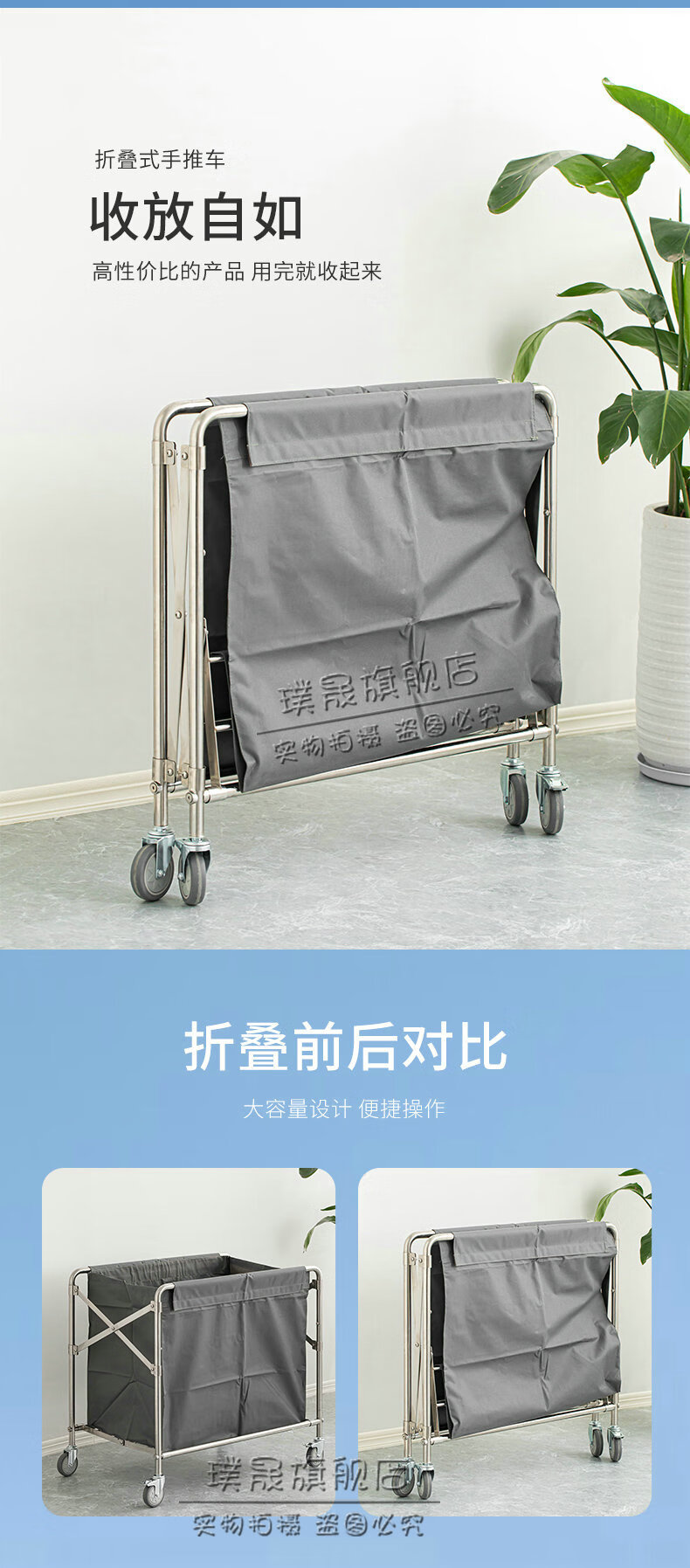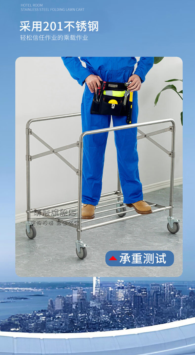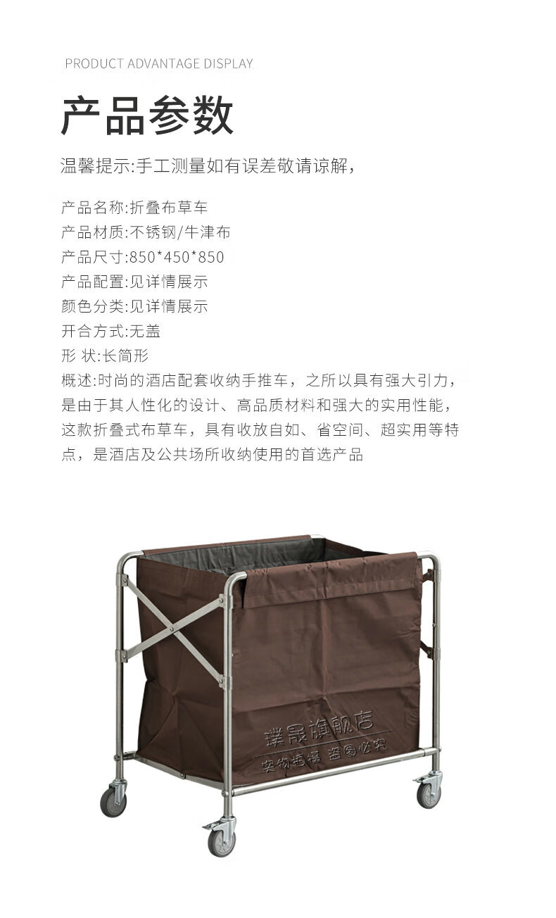 Stainless steel linen cart, hotel room service cart, laundry room collection cart, dirty cloth recycling cart, bag folding multi-functional cleaning cart, hotel cleaning cart, storage cart, large size (blue bag)