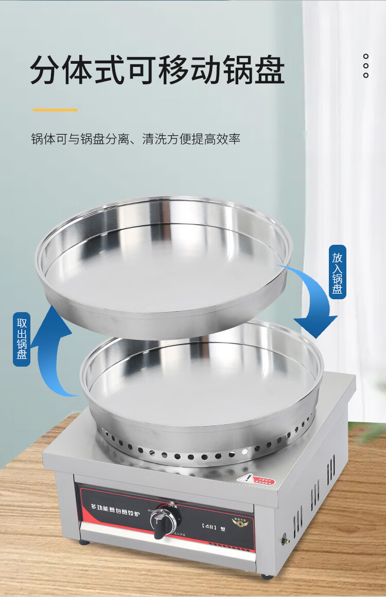 Wanhao Kitchen gas-electric baking pan commercial desktop mobile stall frying pan stove sauce pancake machine in-law pie mille-feu pancake machine pancake pancake machine restaurant canteen large pancake pan gas model - 58 type aluminum pot + stainless steel lid