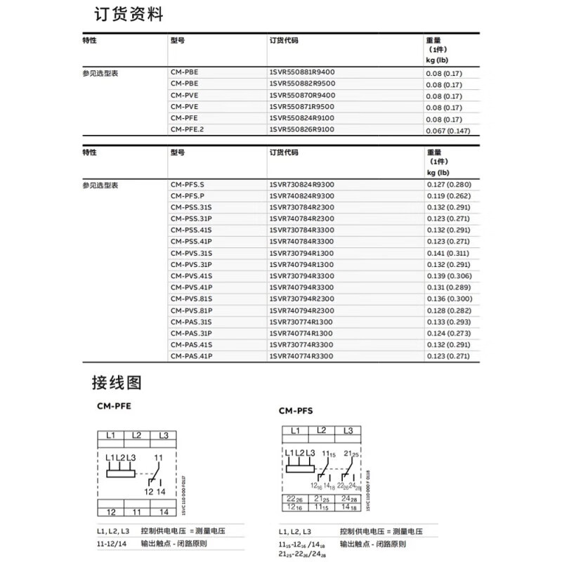 ABB phase sequence relay CM-PFE phase loss protection CM-PFS.S/SRS.22S three-phase monitoring MPS.41S CM-SRS.22S