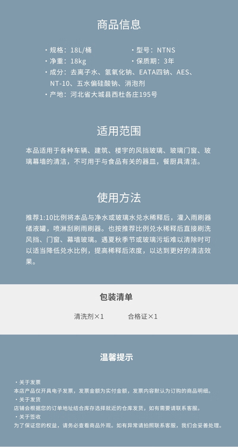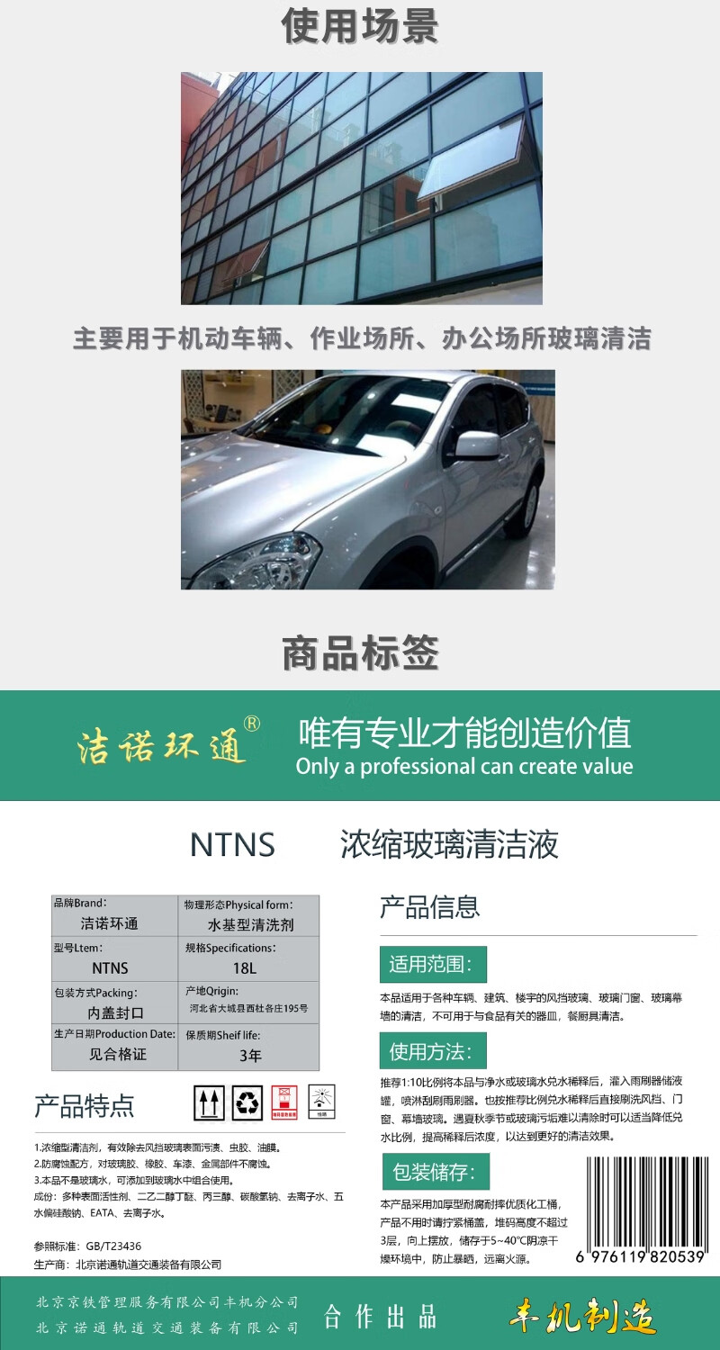 Jienuoyuantong Concentrated Glass Cleaning Liquid NTNS 18L/barrel