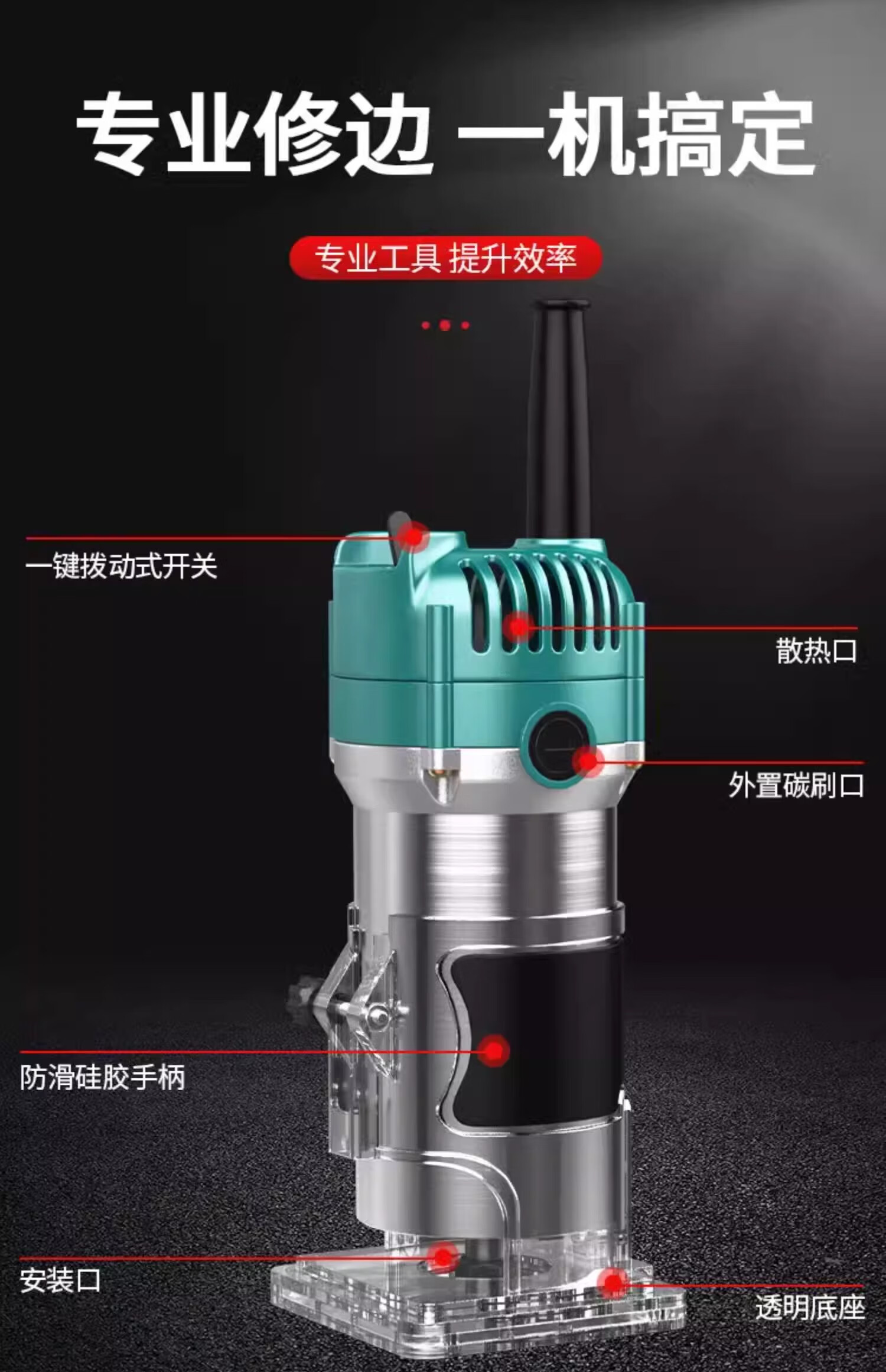 Minxi edge trimming machine aluminum body woodworking flip bakelite milling carving hole industrial grade multifunctional aluminum plastic plate slotting machine drilling 800W woodworking special aluminum body type 15 milling cutter