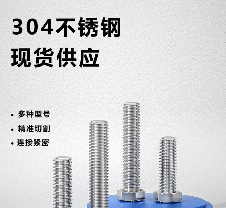 Bingneng UNC/UNF British and American external hexagonal screws fine tooth external hexagonal bolts extended 304 stainless steel screw screw 7/8-9*2 1 piece