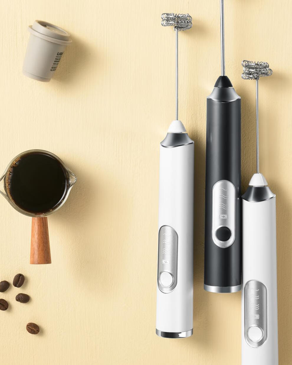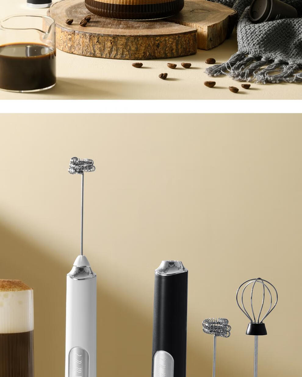 Miaopule Japan Seiko Electric Egg Beater Home Whisper with Milk Frother Handheld Wireless Mini Small Automatic Mixer Pearl White Model + Matte White 550ml Latte Art Tank + Coffee