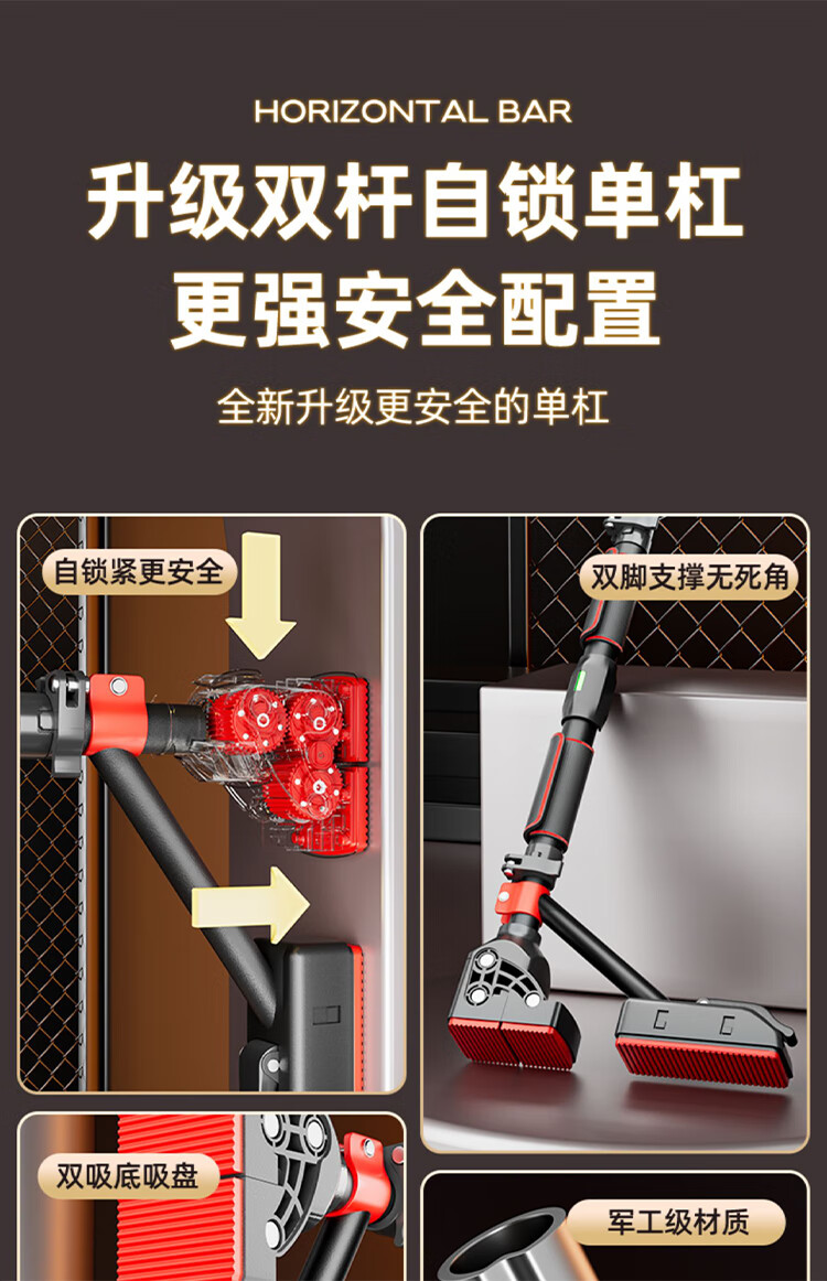 REXL German horizontal bar indoor home pull-up device without punching door wall horizontal bar hanging lever 98CM-126CM installation eighth generation self-locking