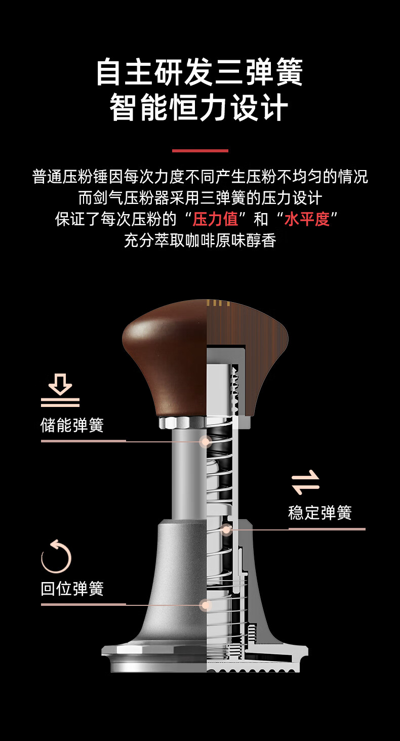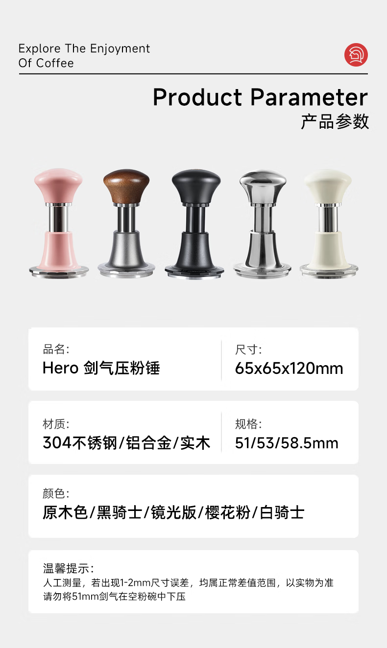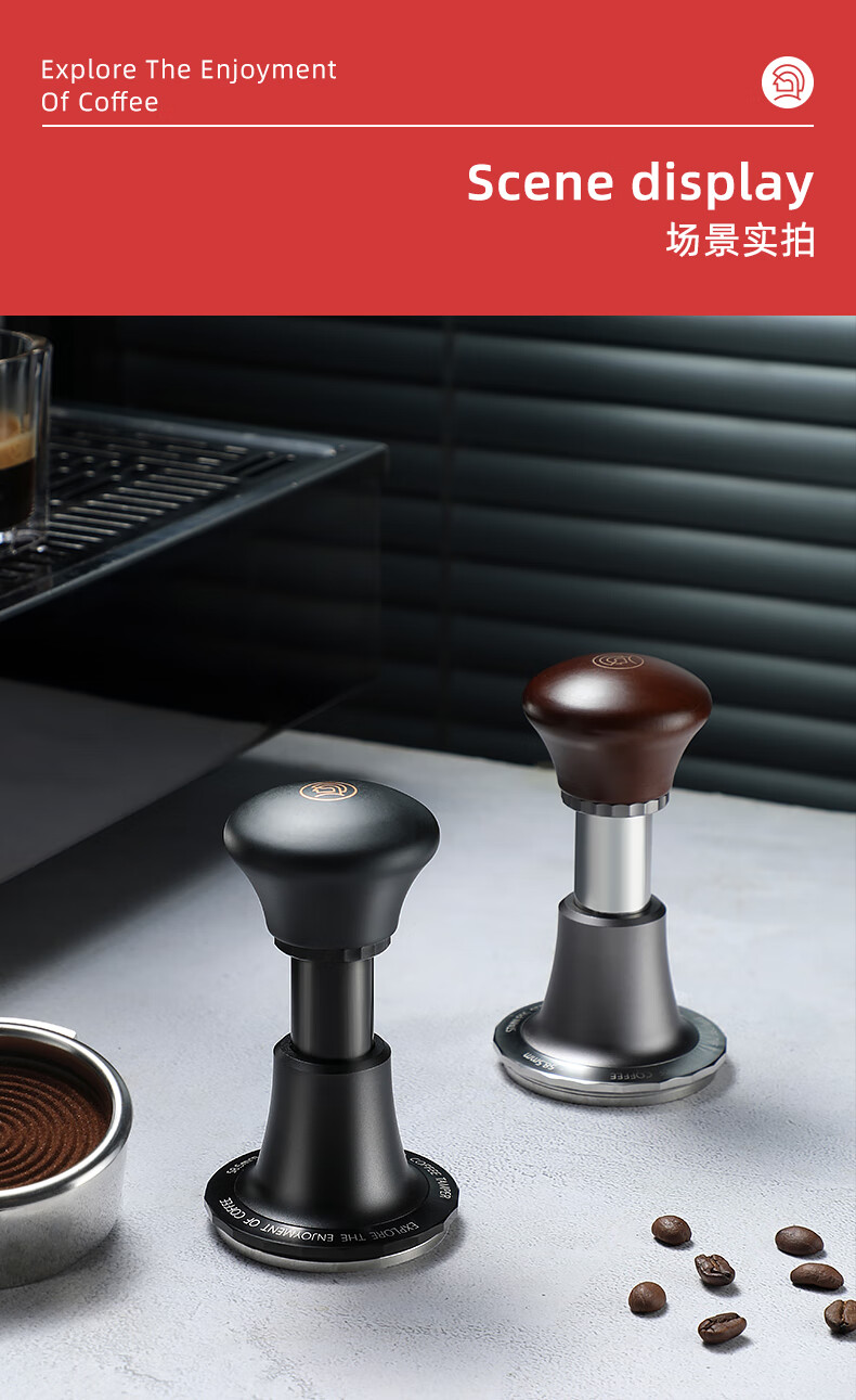 Hero Jianqi Constant Force Pressing Hammer Coffee Powder Press Italian Coffee Machine Force Impact Rebound Powder Hammer Powder Distributor Jianqi Powder Hammer Classic Version - Threaded Bottom 51mm
