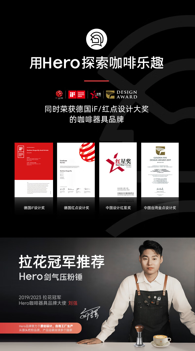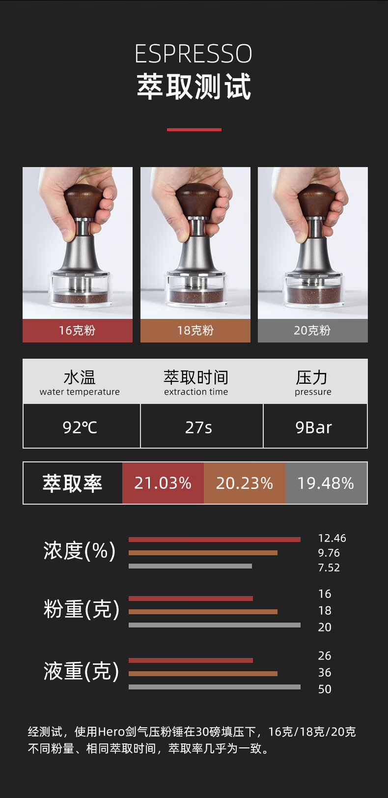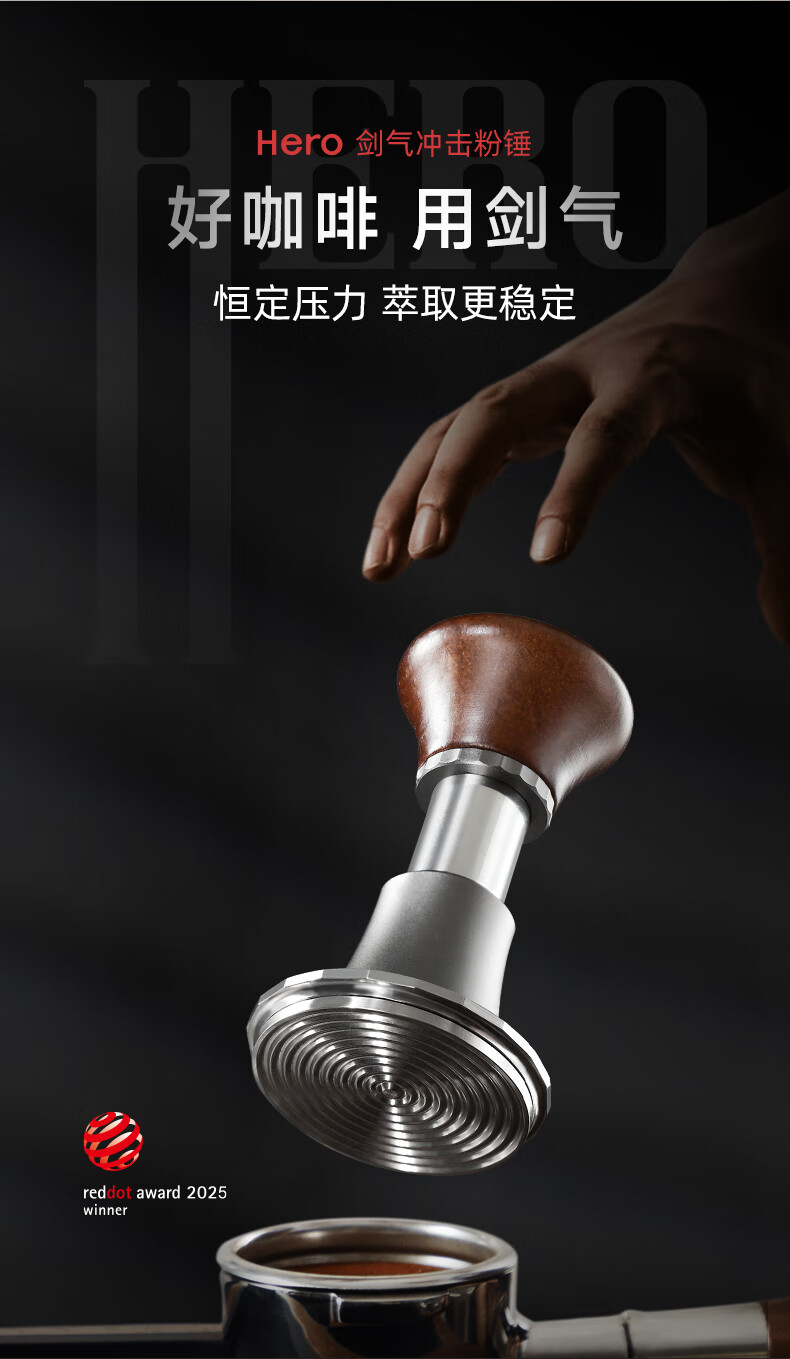Hero Jianqi Constant Force Pressing Hammer Coffee Powder Press Italian Coffee Machine Force Impact Rebound Powder Hammer Powder Distributor Jianqi Powder Hammer Classic Version - Threaded Bottom 51mm