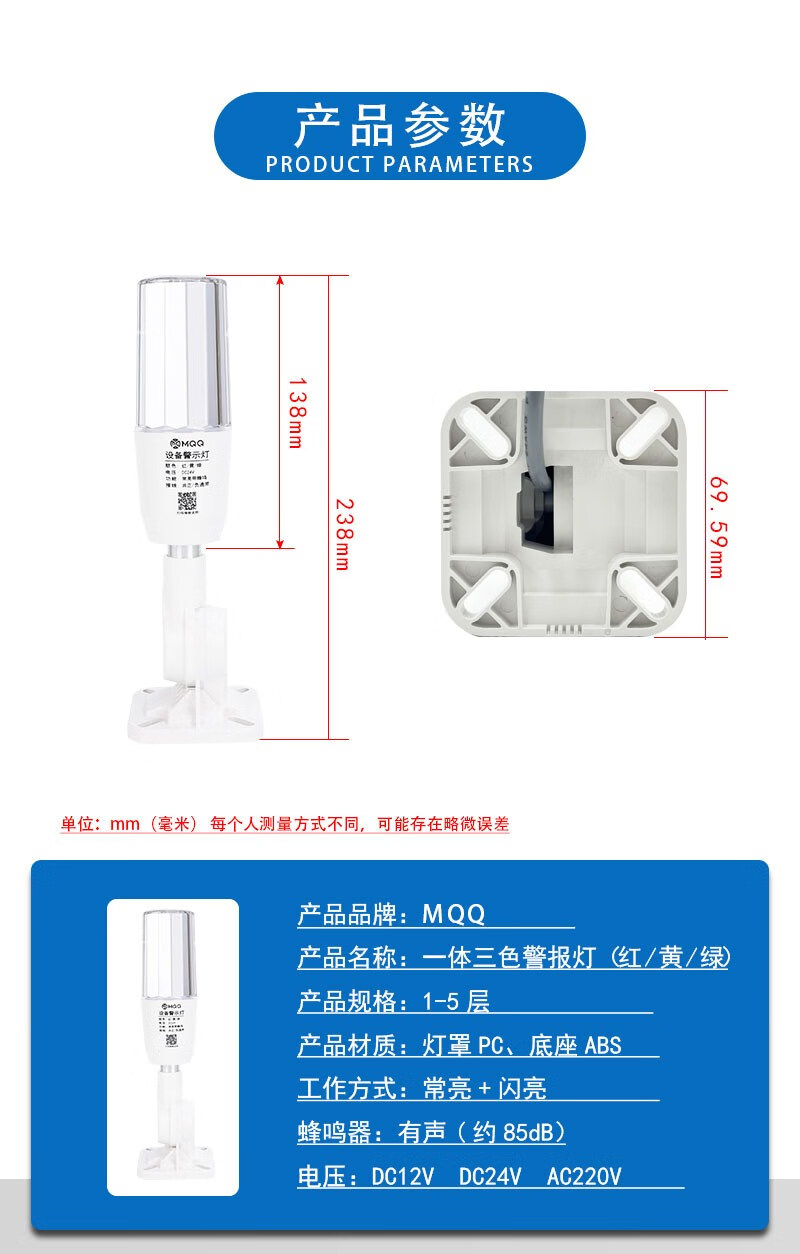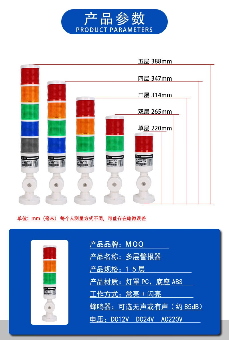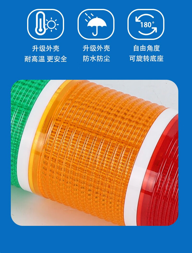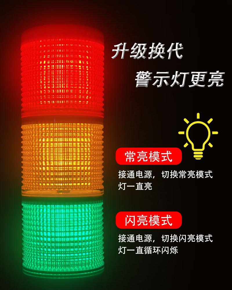 Three-color LED multi-color multi-layer alarm indicator light 24v machine tool equipment CNC sound and light integrated buzzer warning light single section three-color always on with sound DC24V