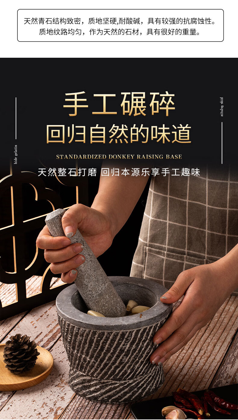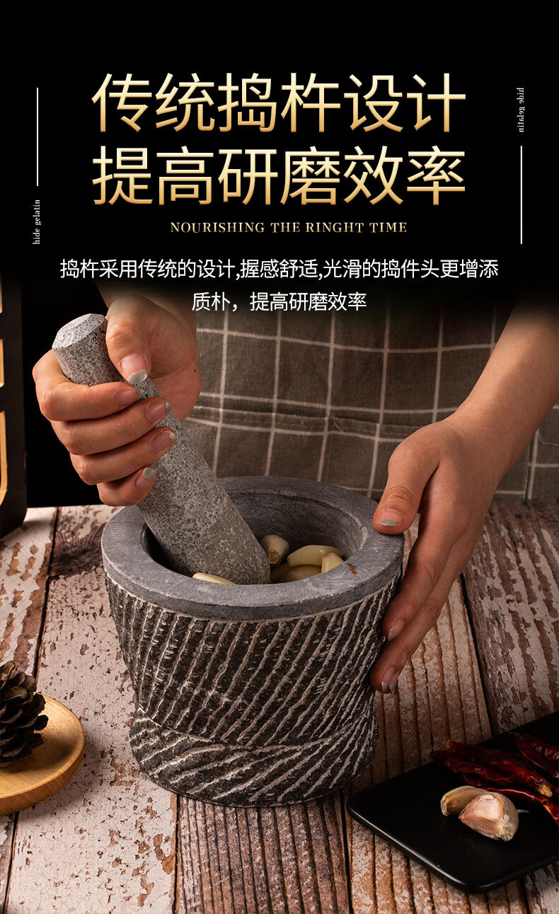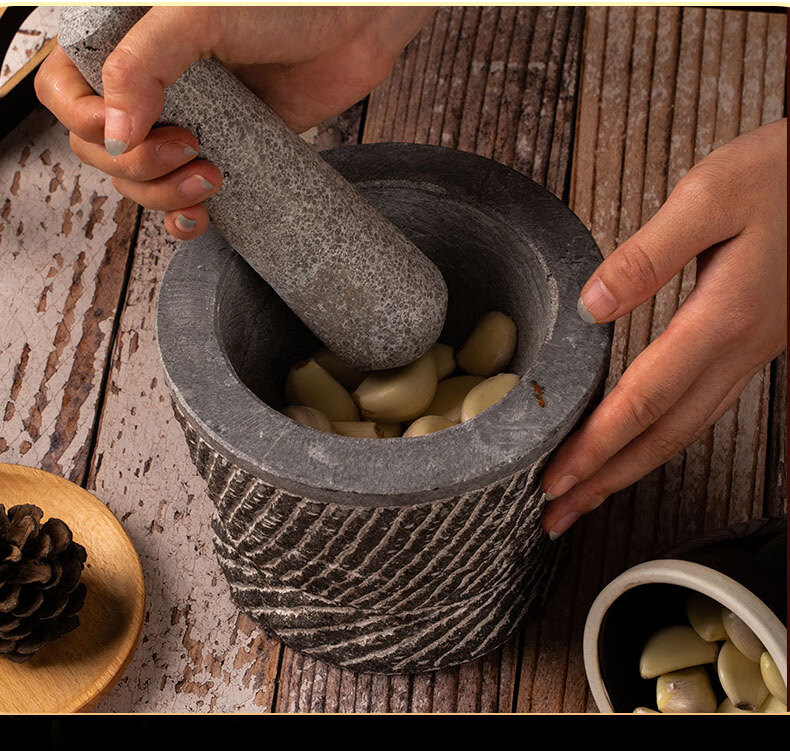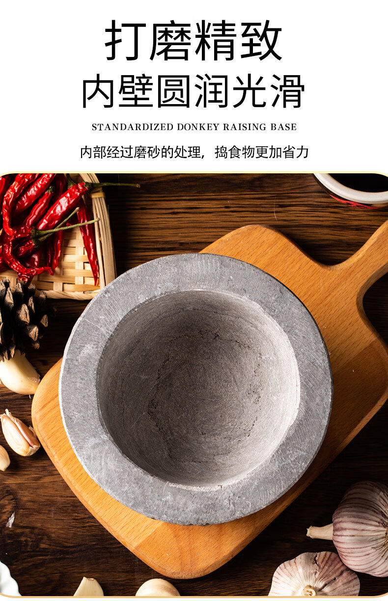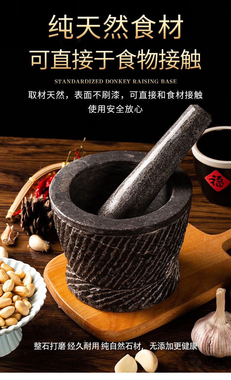 Hua Muxi Shandong old bluestone stone mortar garlic masher household garlic masher masher medicine jar mortar old bluestone medium diameter 12*12 cm pure handmade stone mortar with lid