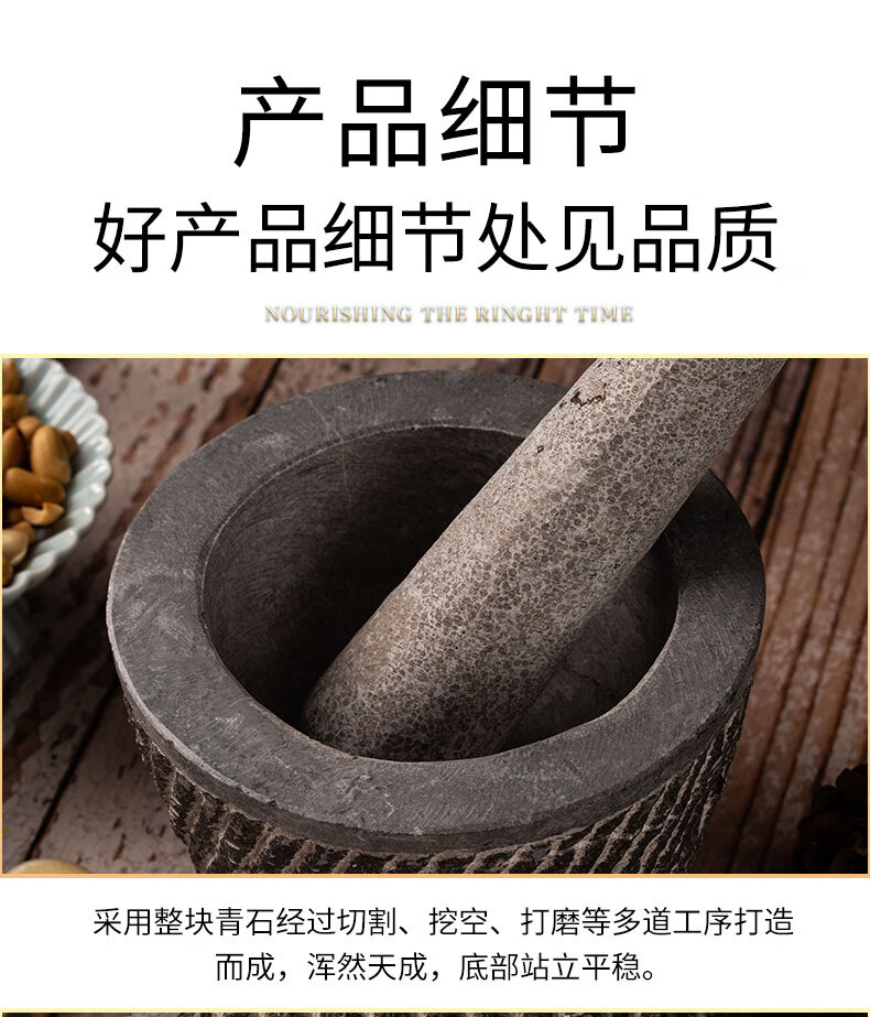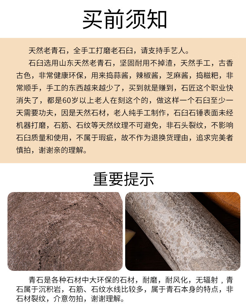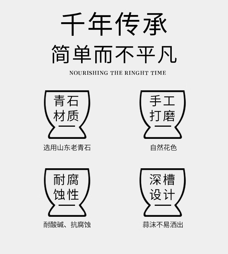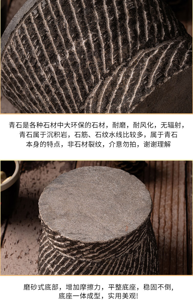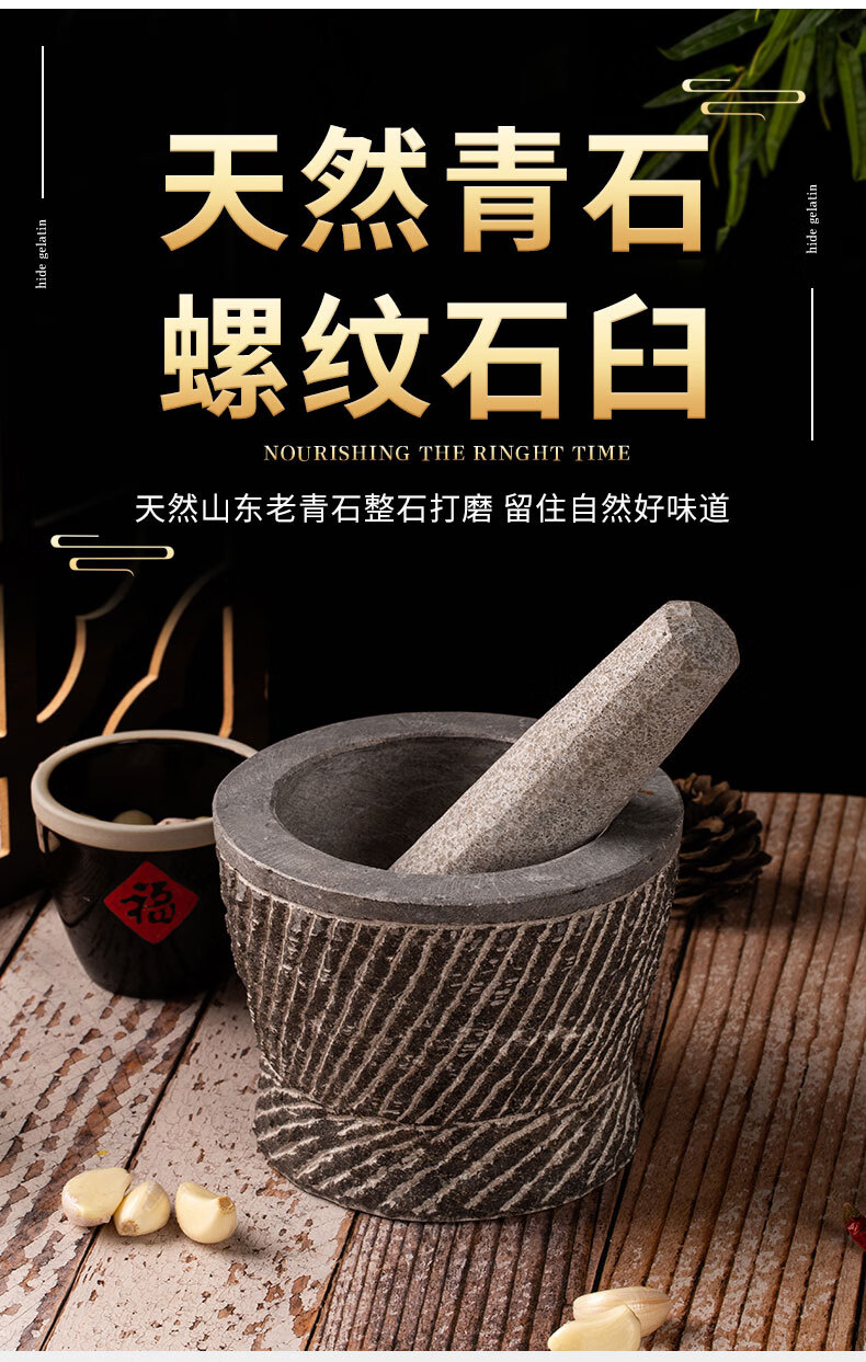 Hua Muxi Shandong old bluestone stone mortar garlic masher household garlic masher masher medicine jar mortar old bluestone medium diameter 12*12 cm pure handmade stone mortar with lid