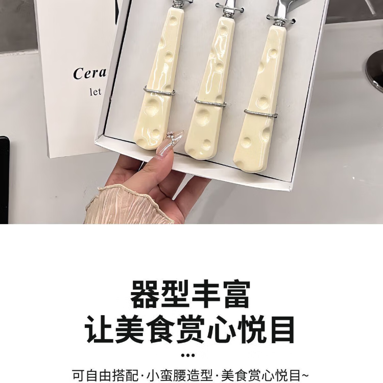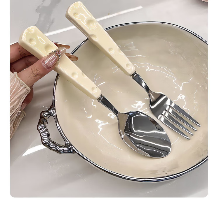 AISHUBEI cute cheese spoon ins style cheese fork office portable tableware dormitory dessert spoon fruit fork set cute cheese-spoon + fork