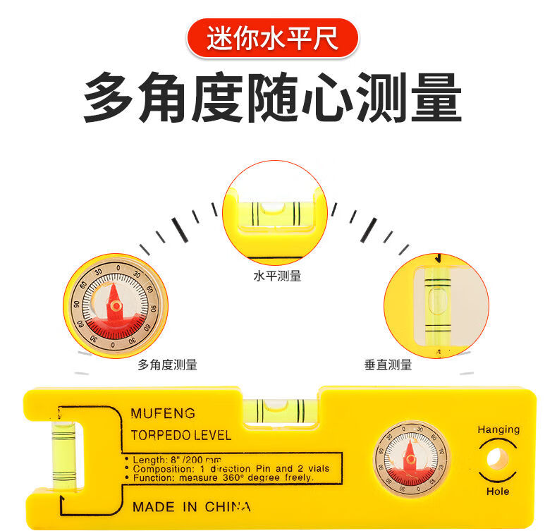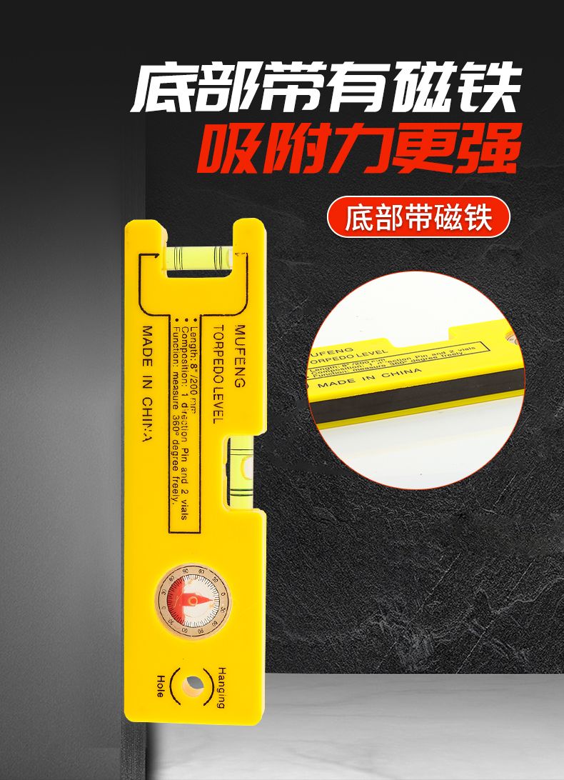 Qinkai Strong Magnetic Level Multifunctional Flat Level Balance Balance Angle Small Portable Home Decoration Precision Level Blue Level-20cm Magnetic -