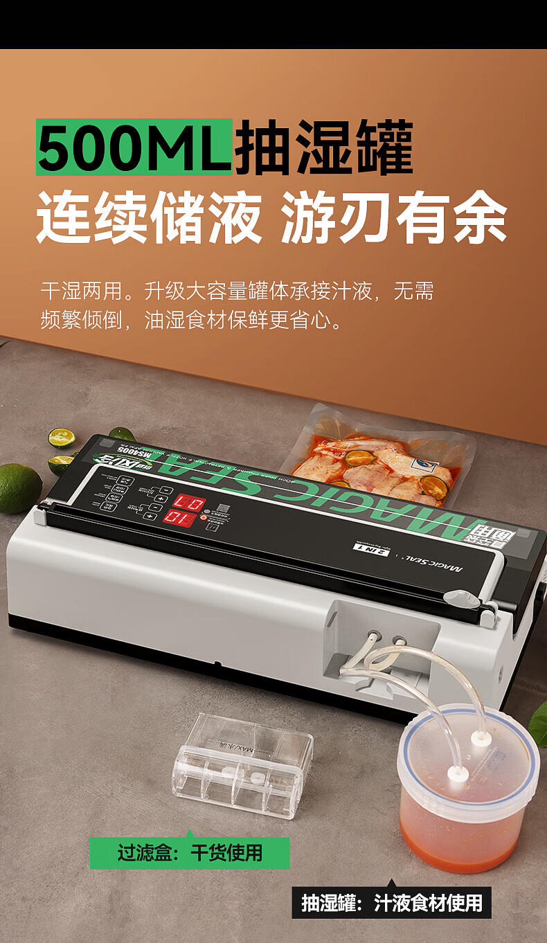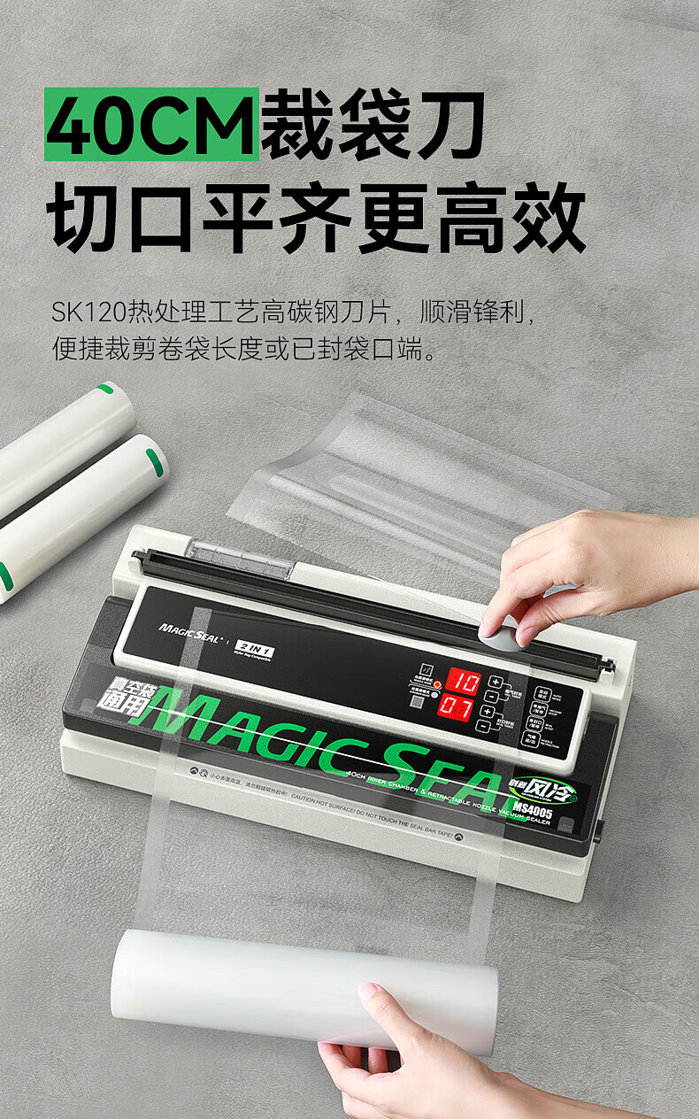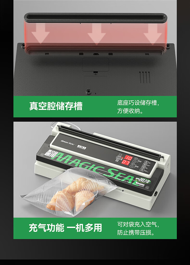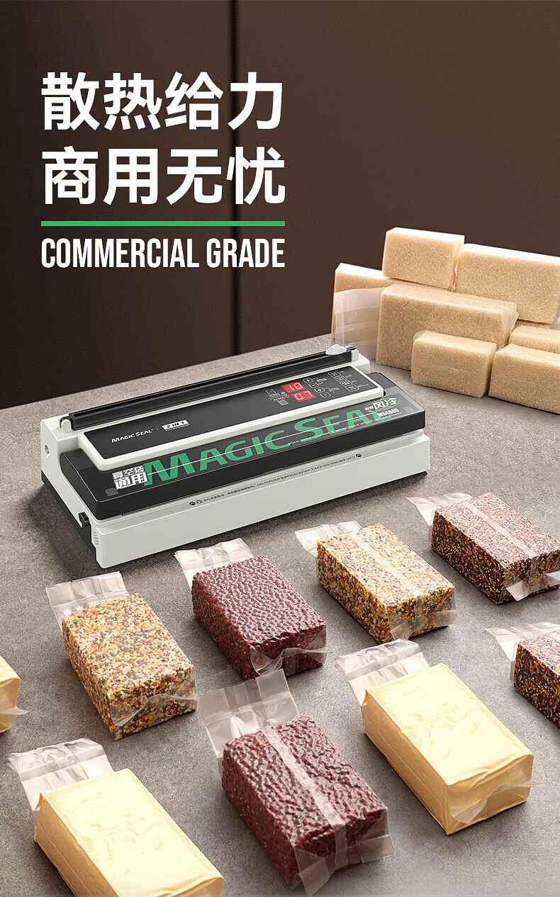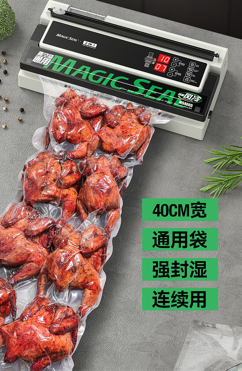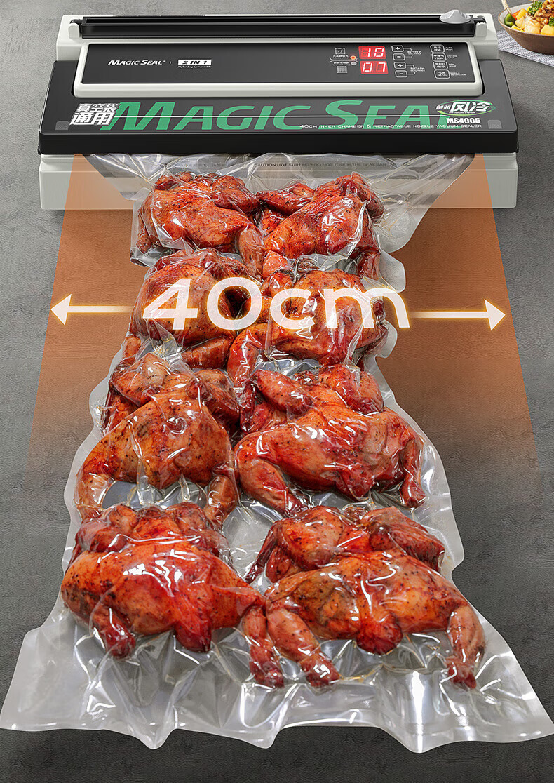 Megis bag-free vacuum sealing machine fully automatic commercial vacuum packaging machine dual-pump high-suction vacuum machine household fresh-keeping machine dry and wet vacuum compression sealing machine 40 sealing 40 sealing + bag-free vacuum bag + air cooling heat dissipation