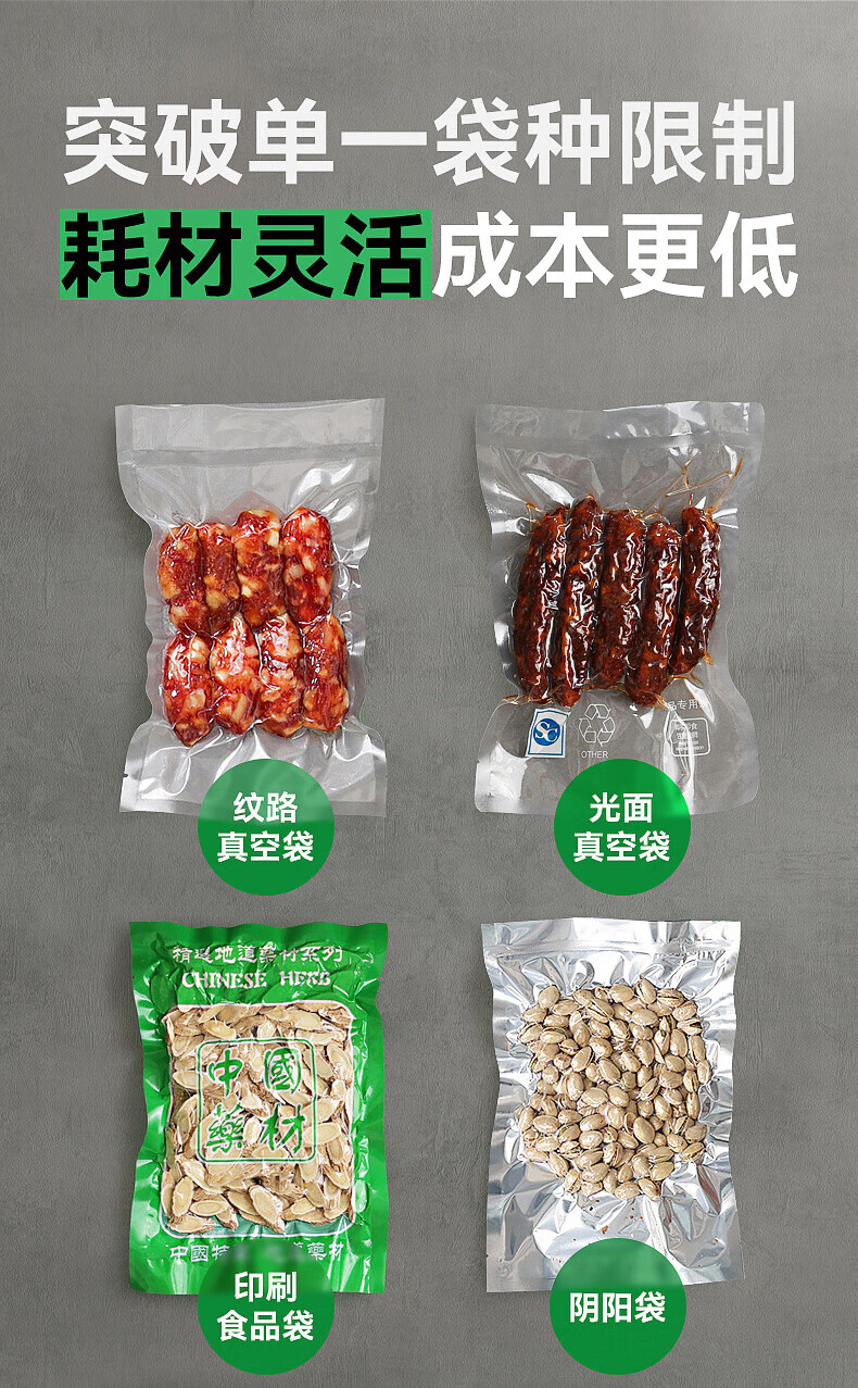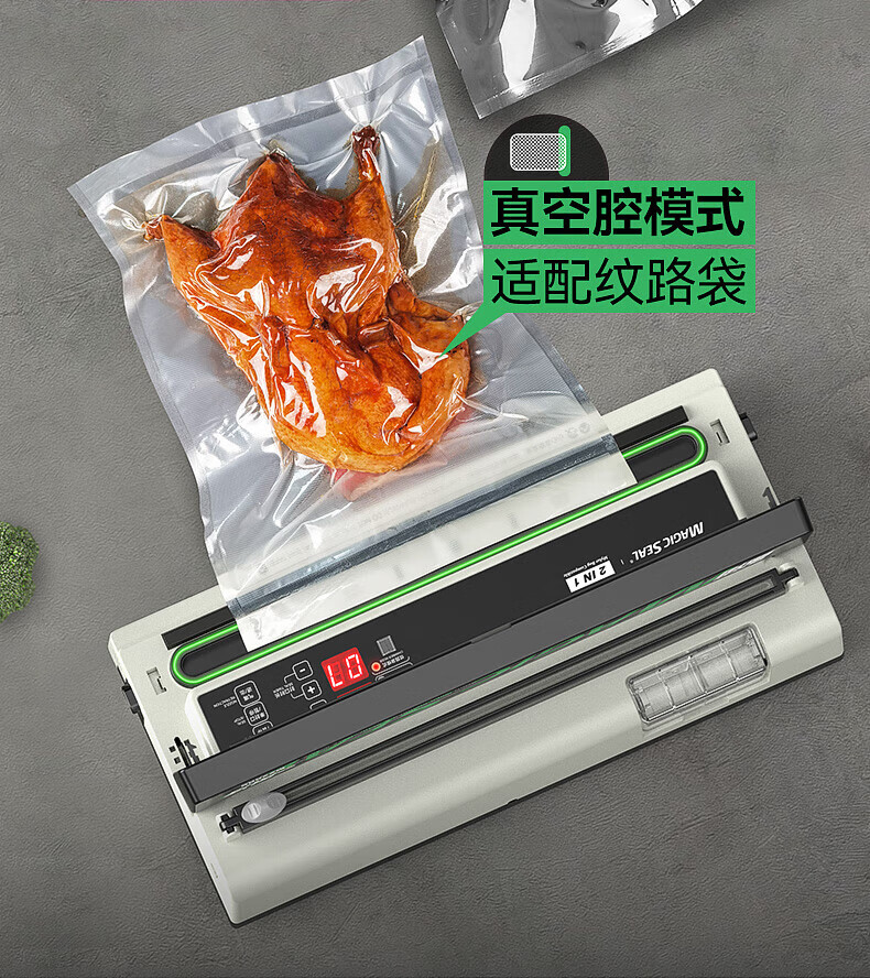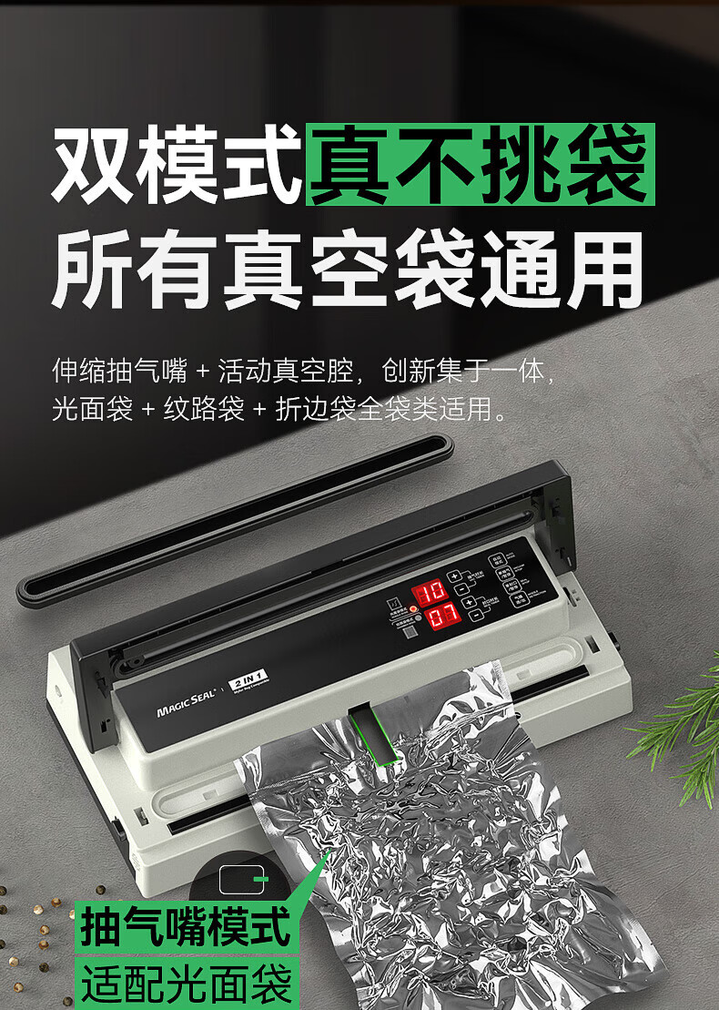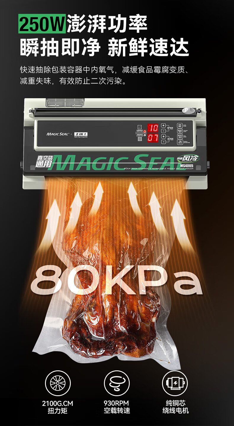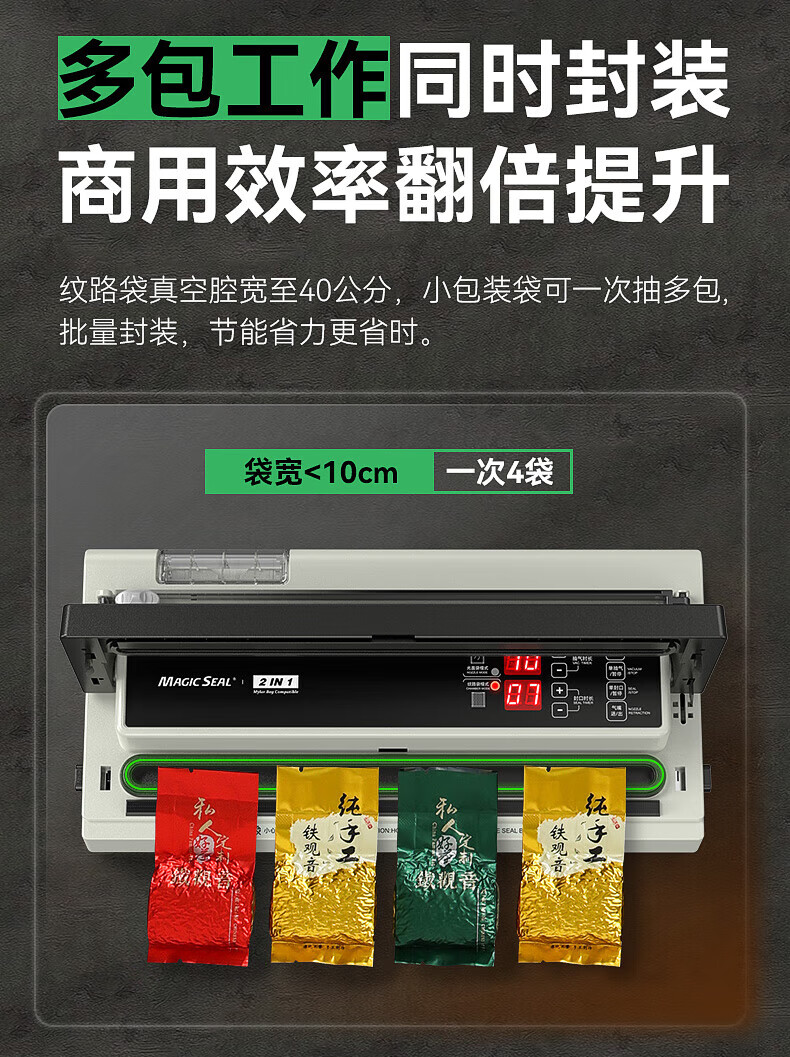 Megis bag-free vacuum sealing machine fully automatic commercial vacuum packaging machine dual-pump high-suction vacuum machine household fresh-keeping machine dry and wet vacuum compression sealing machine 40 sealing 40 sealing + bag-free vacuum bag + air cooling heat dissipation