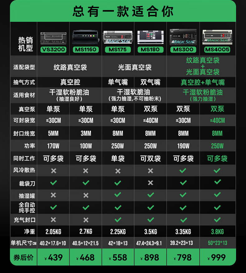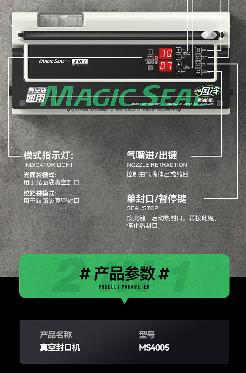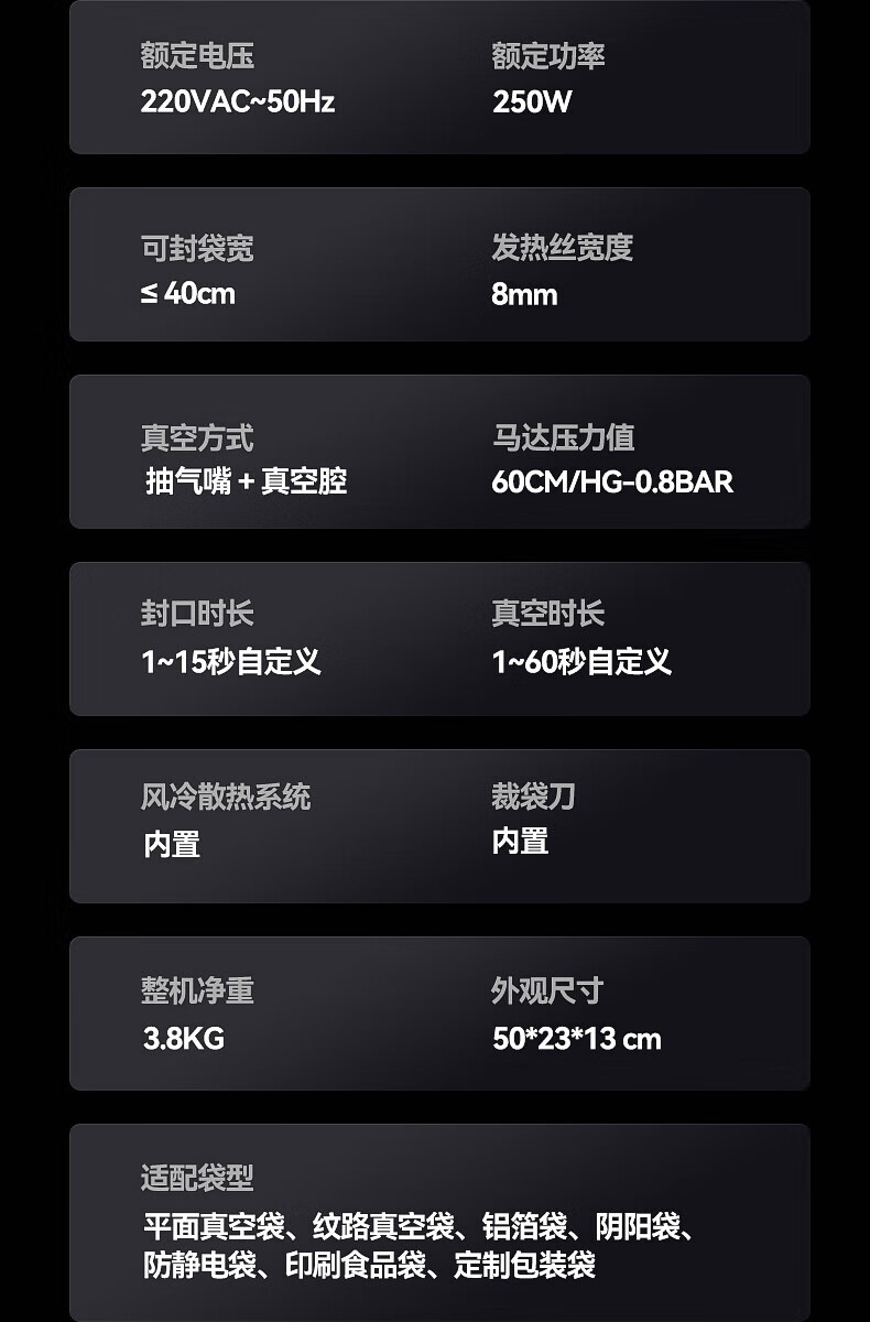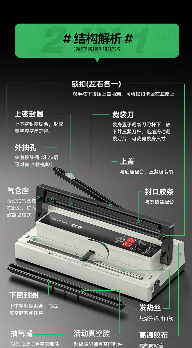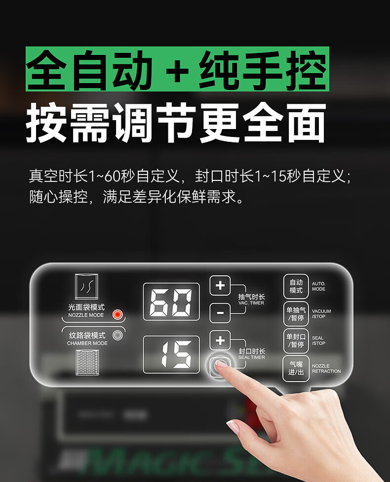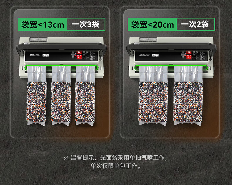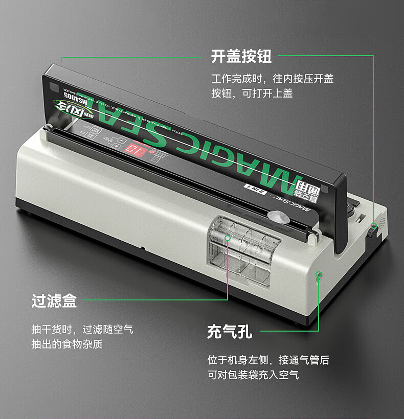 Megis bag-free vacuum sealing machine fully automatic commercial vacuum packaging machine dual-pump high-suction vacuum machine household fresh-keeping machine dry and wet vacuum compression sealing machine 40 sealing 40 sealing + bag-free vacuum bag + air cooling heat dissipation