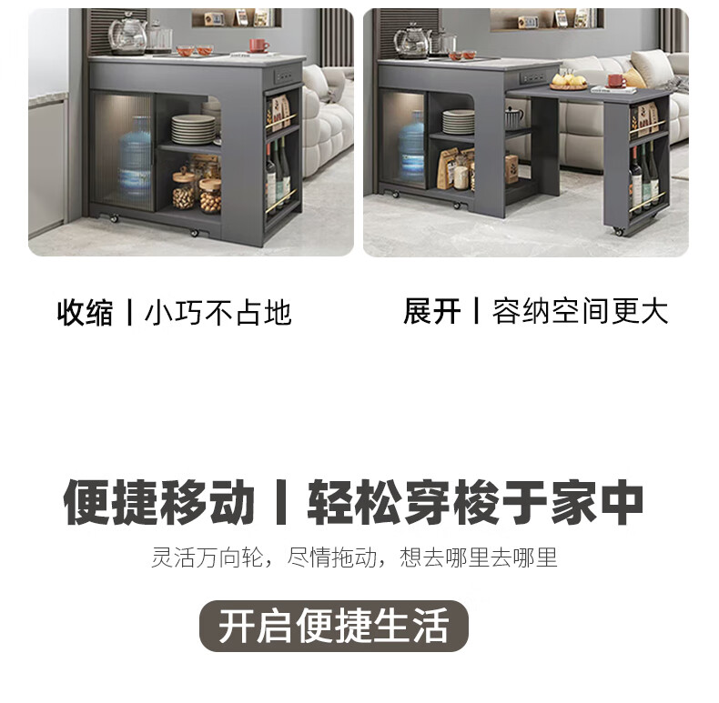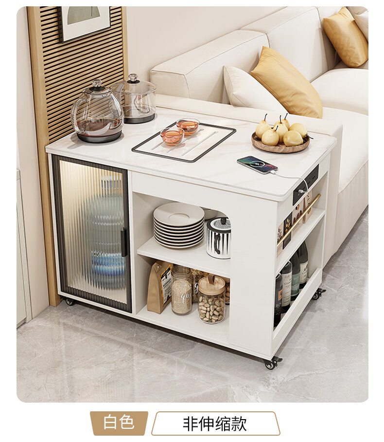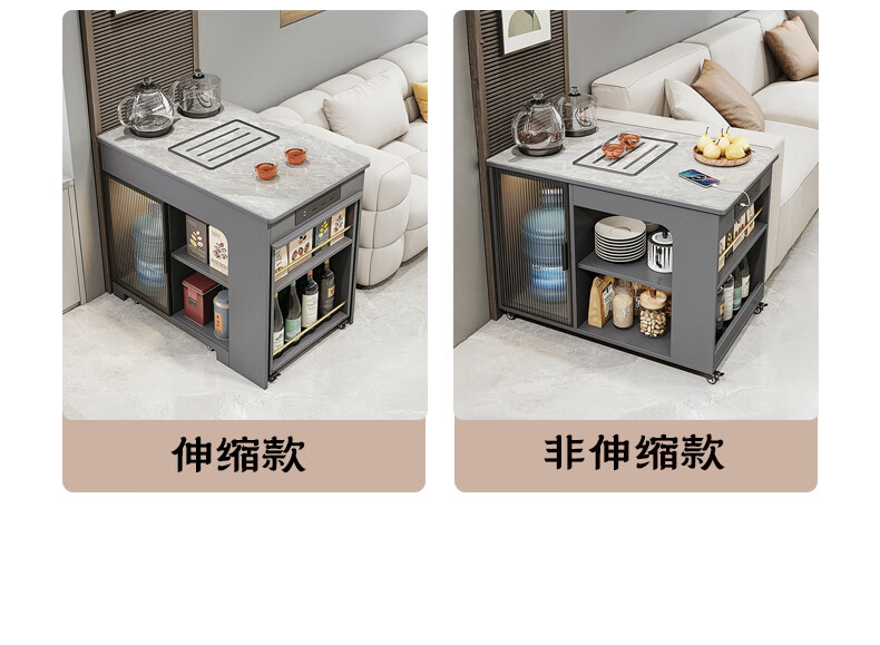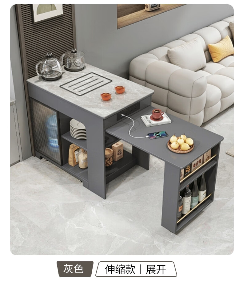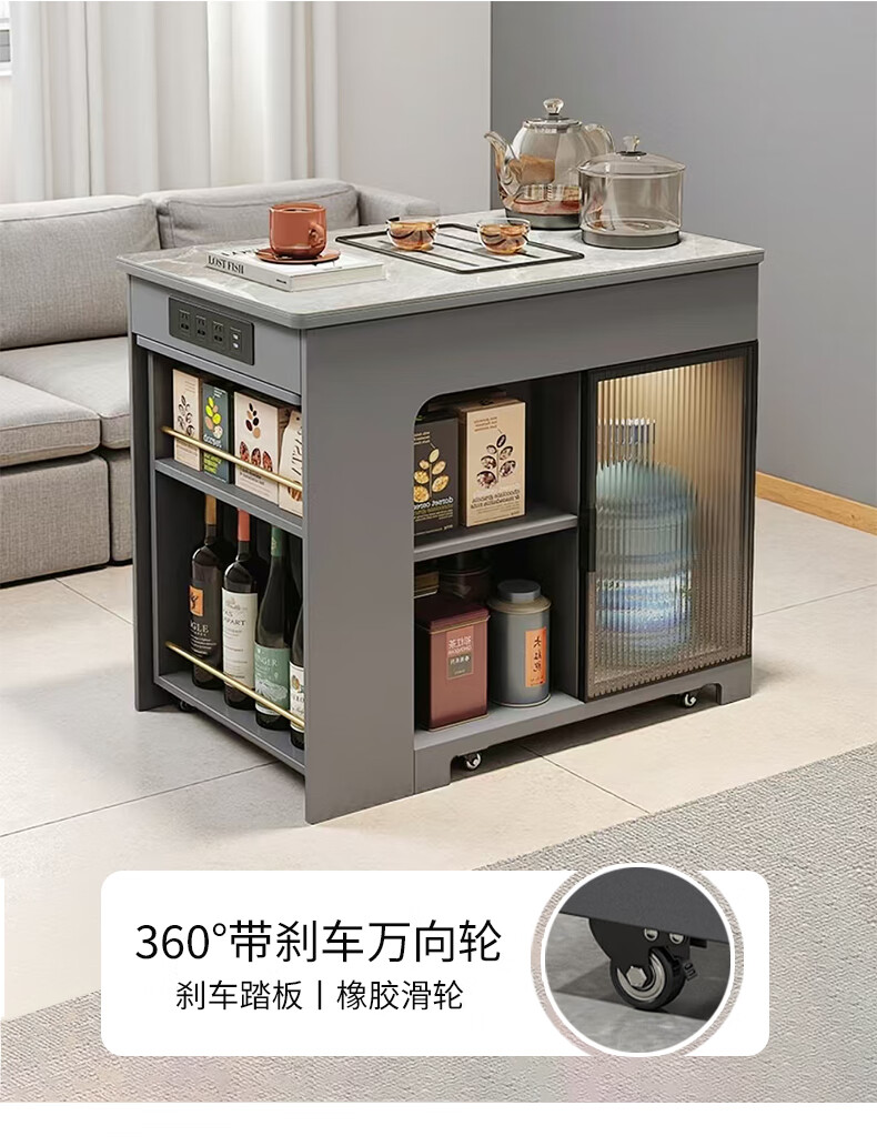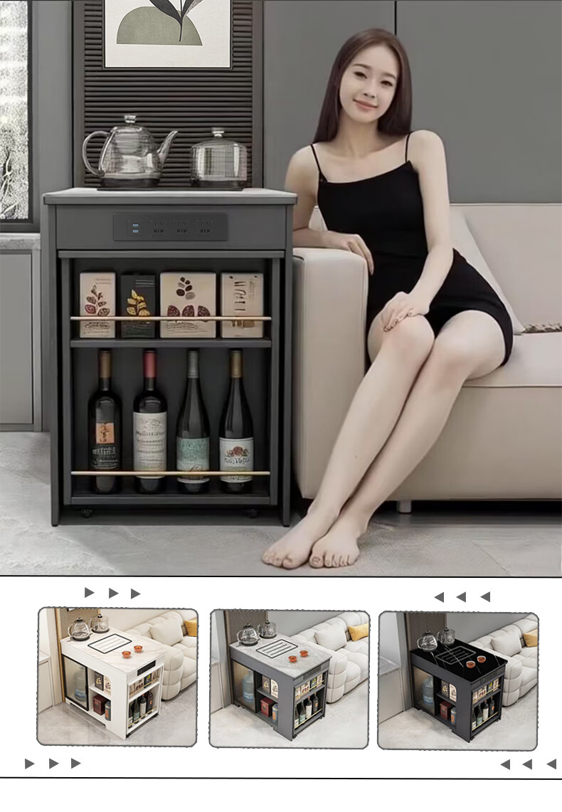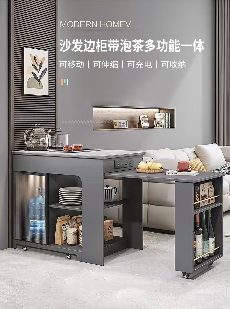 YIGESHA sofa side cabinet, high-end light luxury side table, mobile tea table, kettle, integrated table, tea bar machine, balcony tea table, coffee table, gray retractable side cabinet