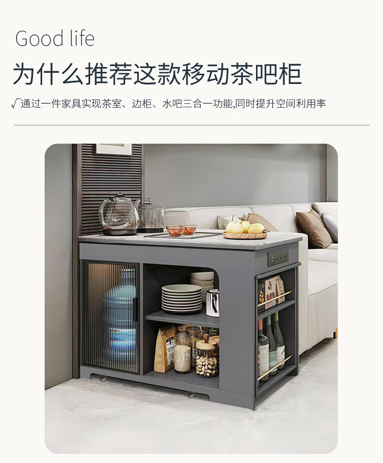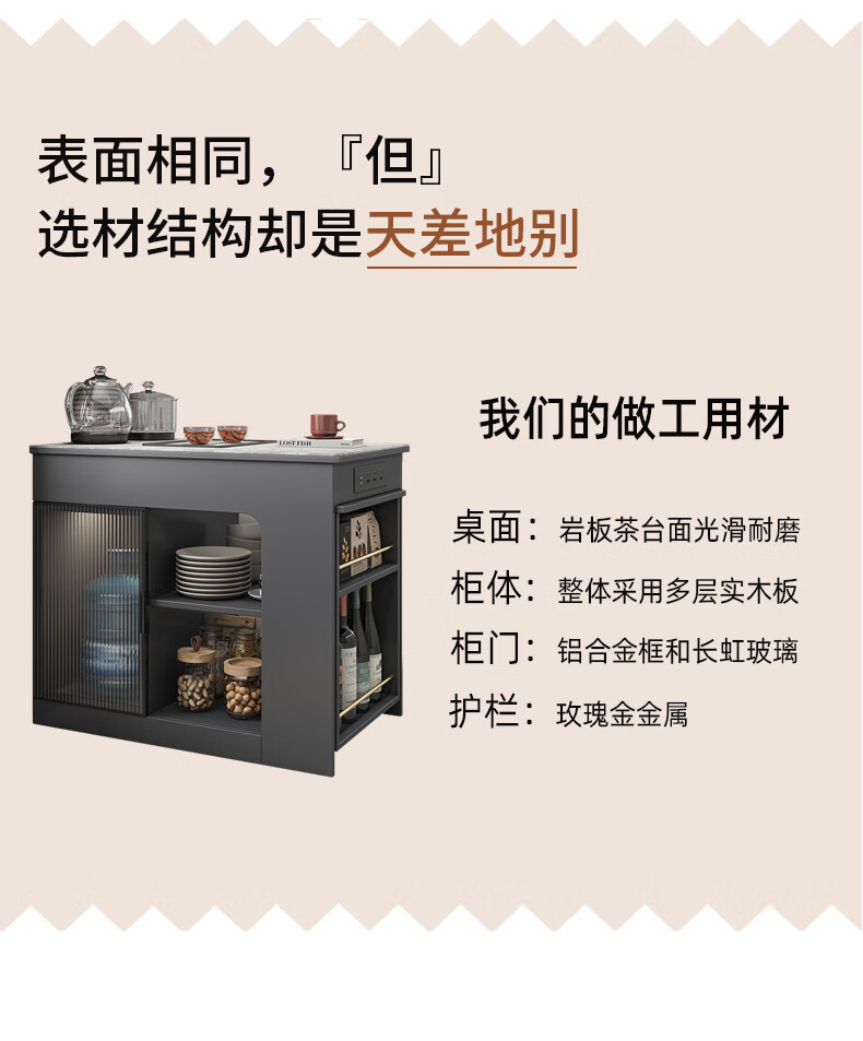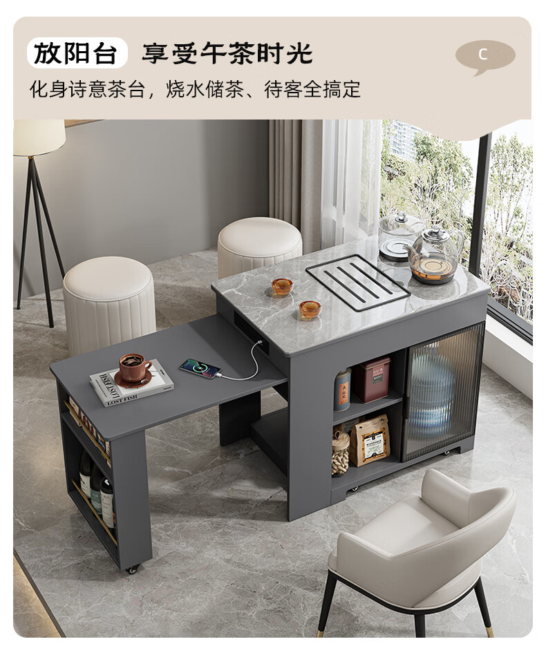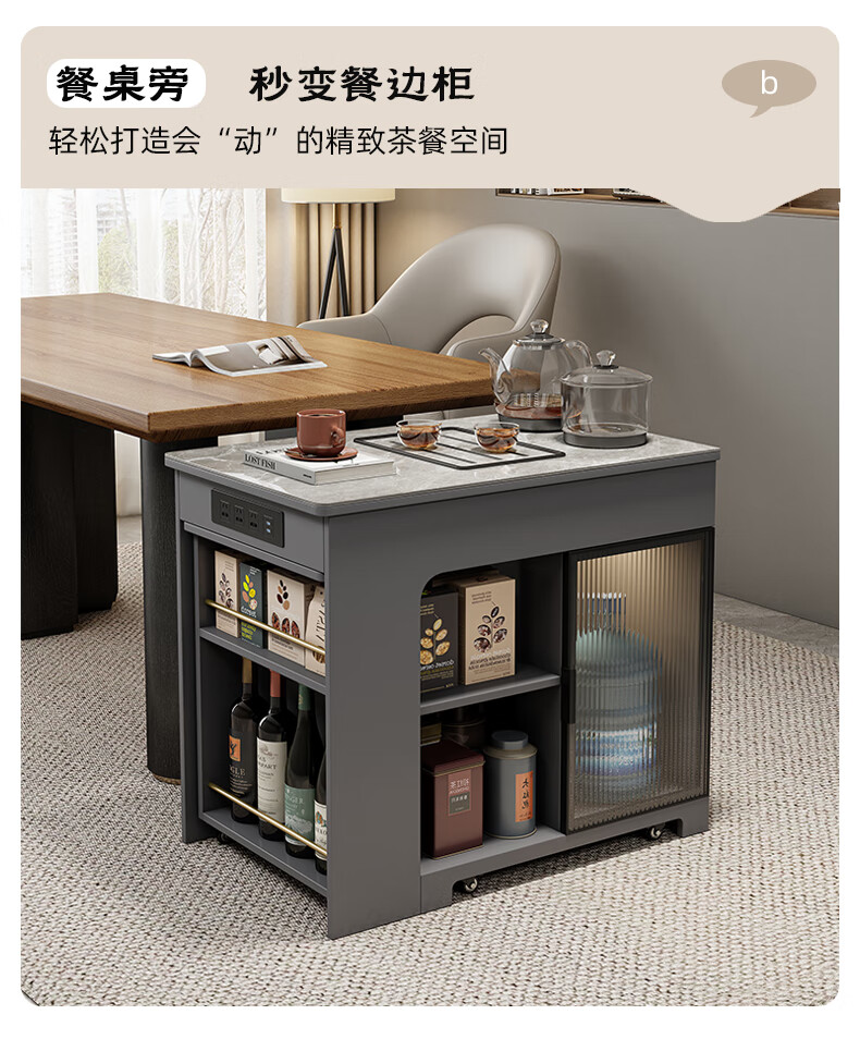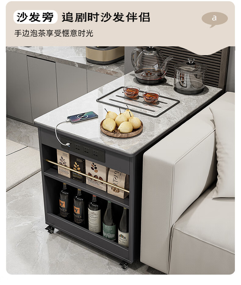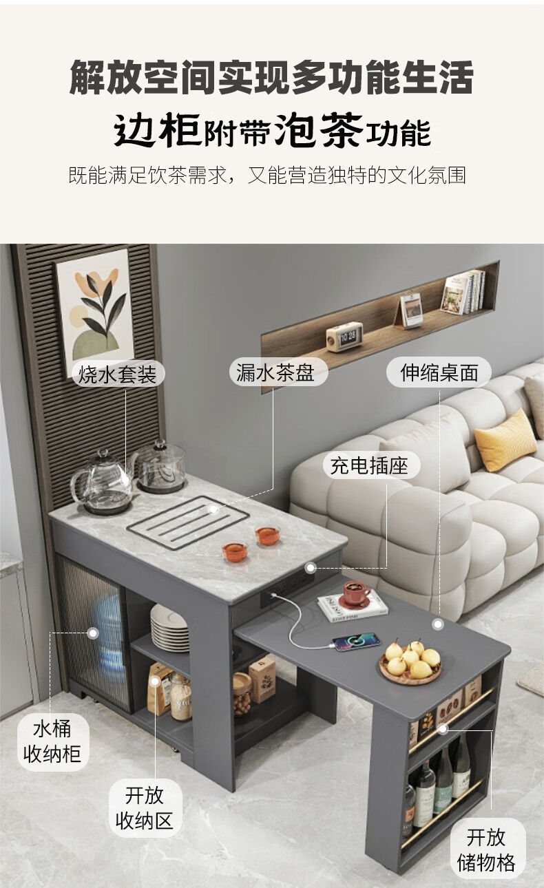 YIGESHA sofa side cabinet, high-end light luxury side table, mobile tea table, kettle, integrated table, tea bar machine, balcony tea table, coffee table, gray retractable side cabinet
