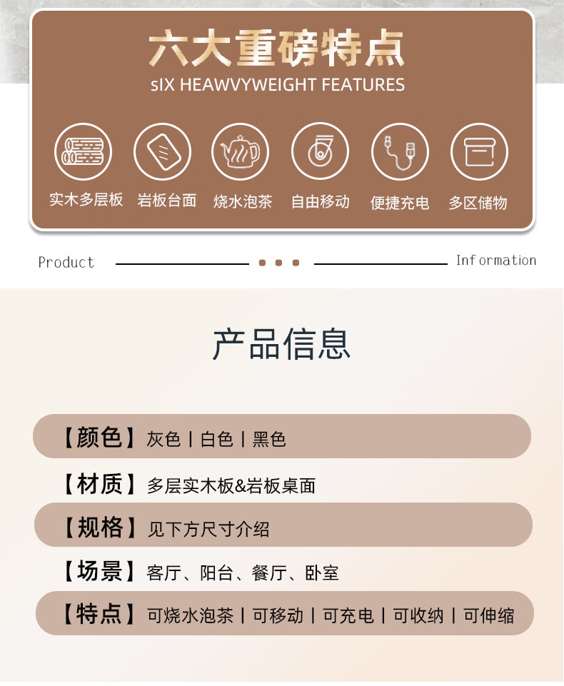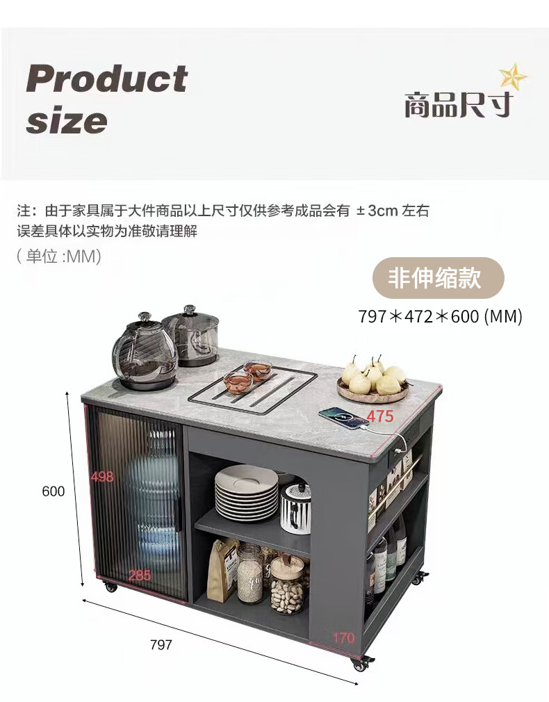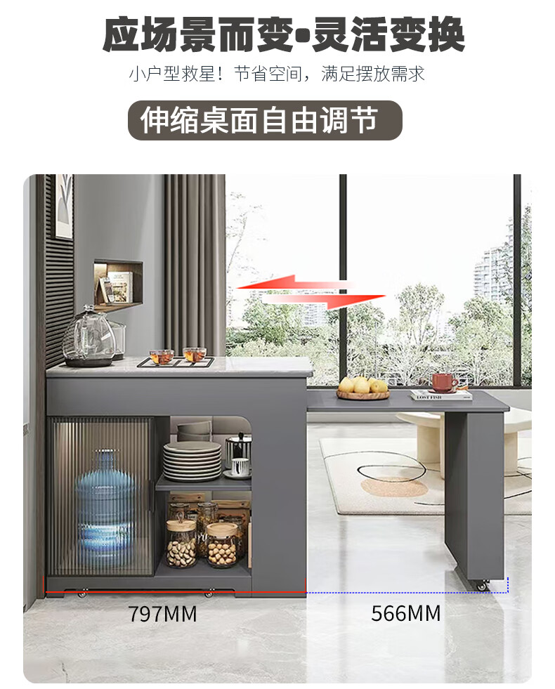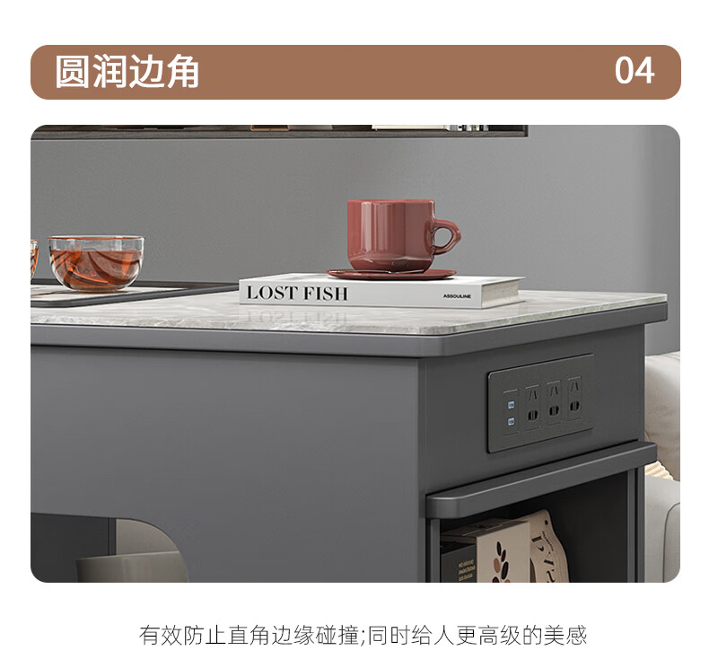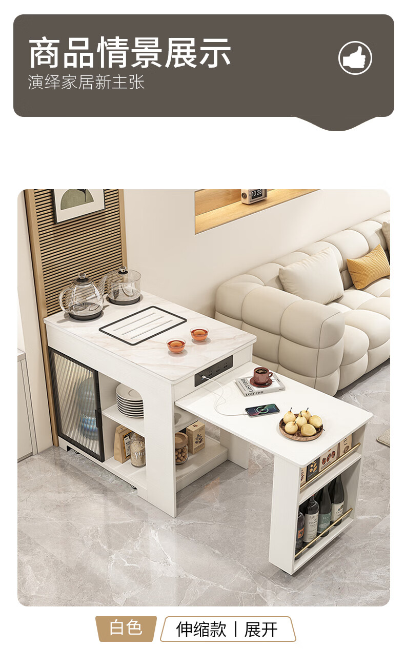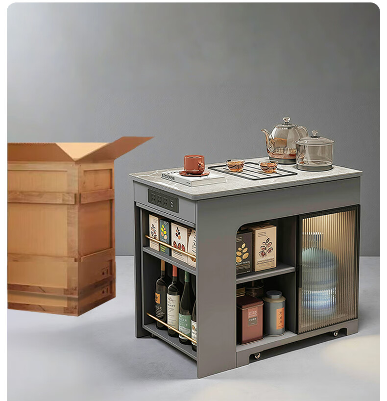 YIGESHA sofa side cabinet, high-end light luxury side table, mobile tea table, kettle, integrated table, tea bar machine, balcony tea table, coffee table, gray retractable side cabinet