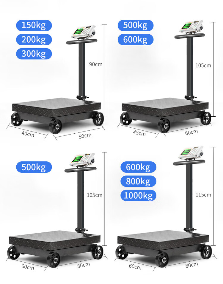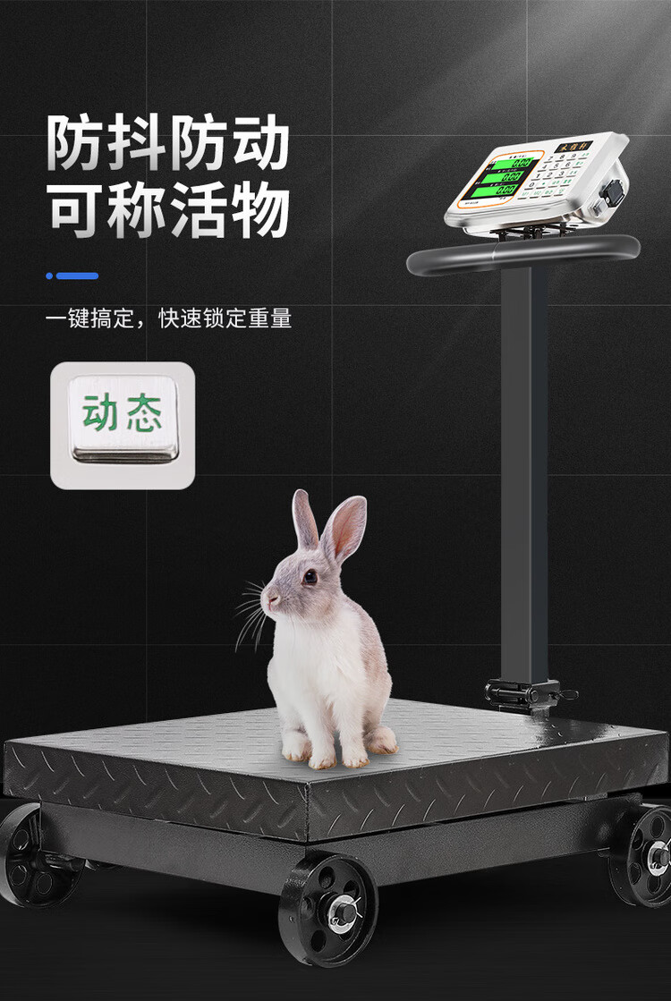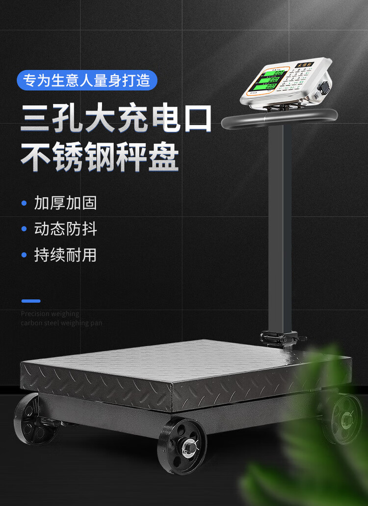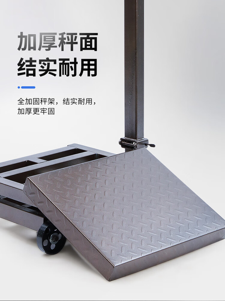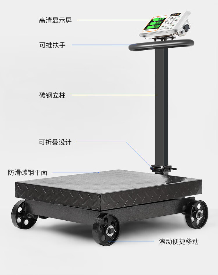 Electronic scale commercial folding wheeled 500kg scale weighing 300kg electronic scale 600 floor scale counting platform scale 500kg dual display black characters three holes charging 60*80