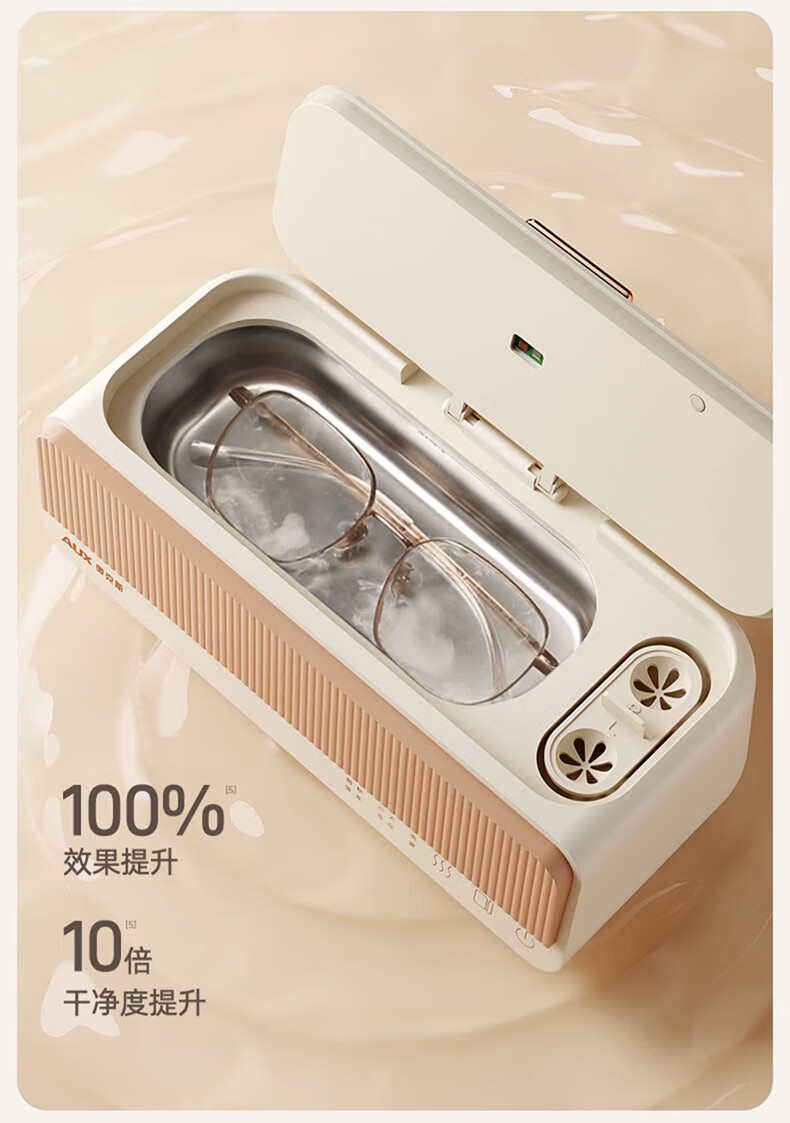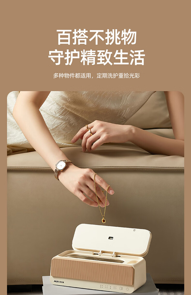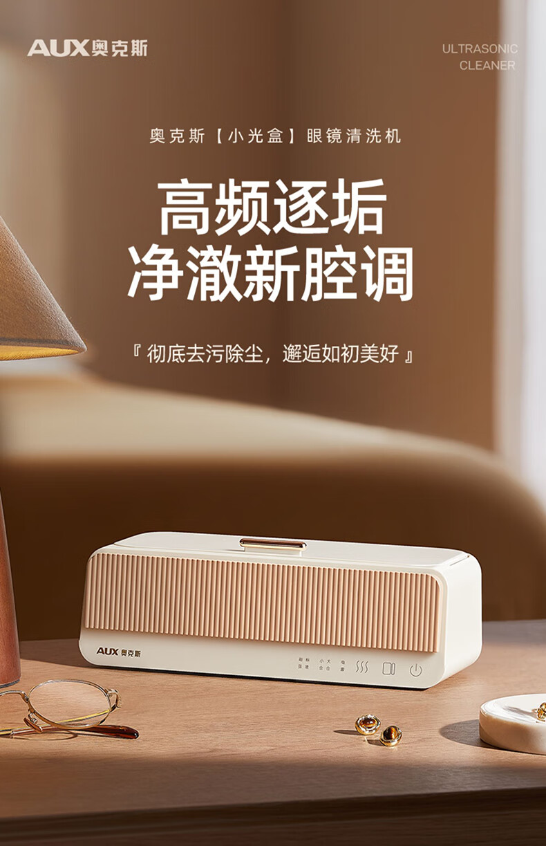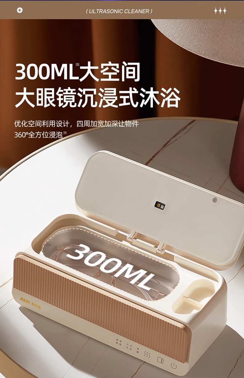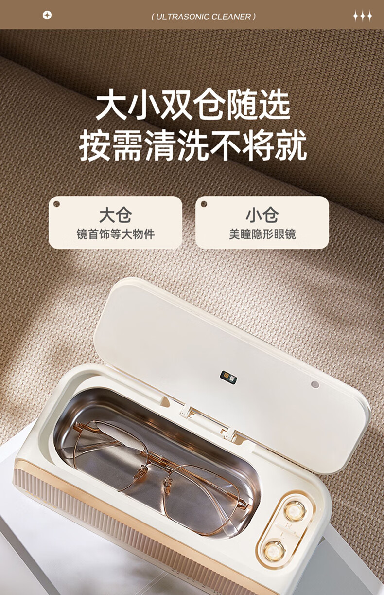 AUX ultrasonic cleaning machine glasses washing machine home braces jewelry watch cleaning machine contact lens cleaning artifact beige UV sterilization + large and small dual compartments