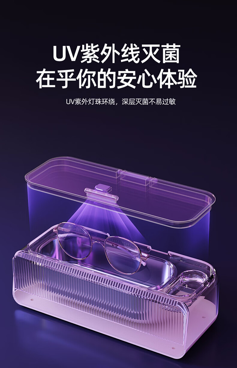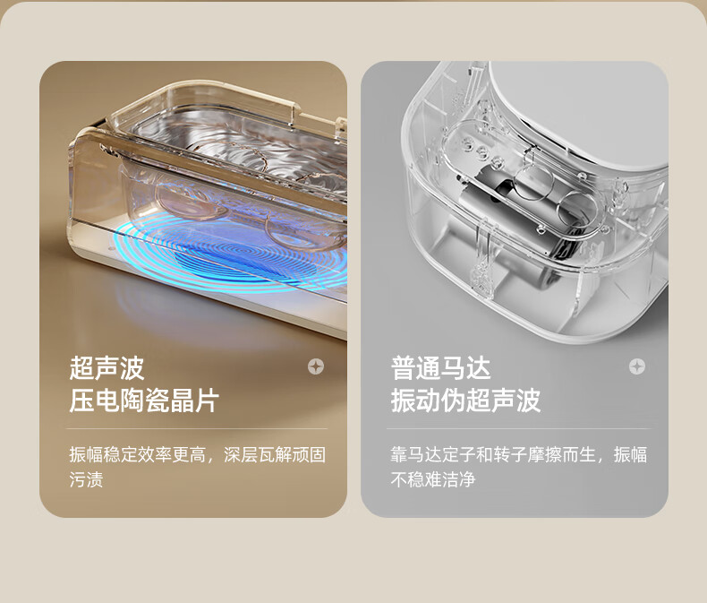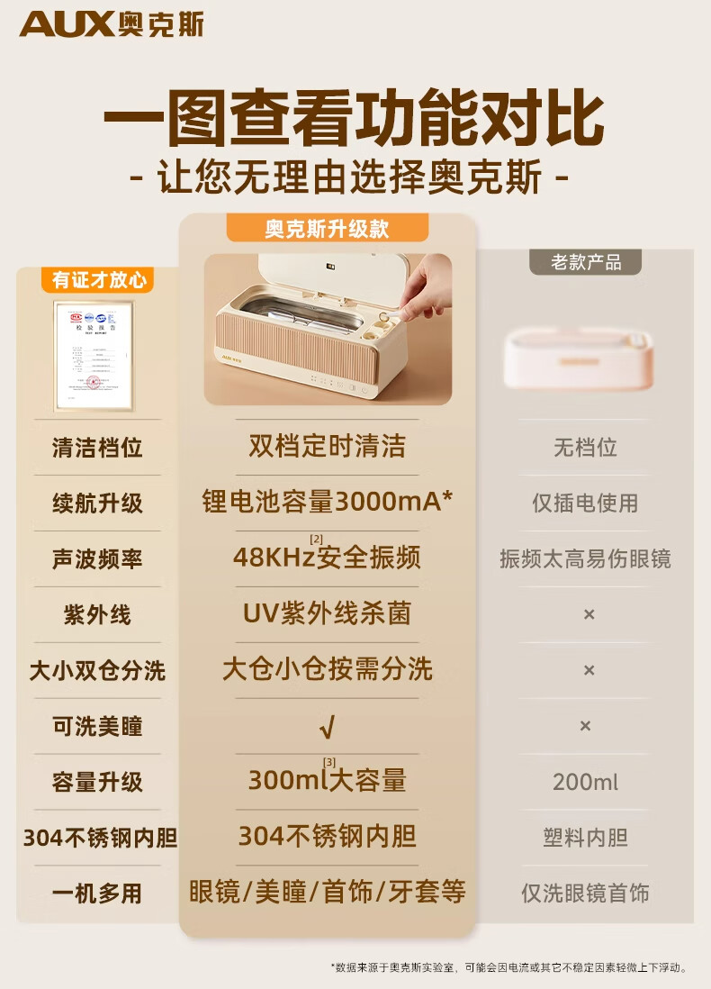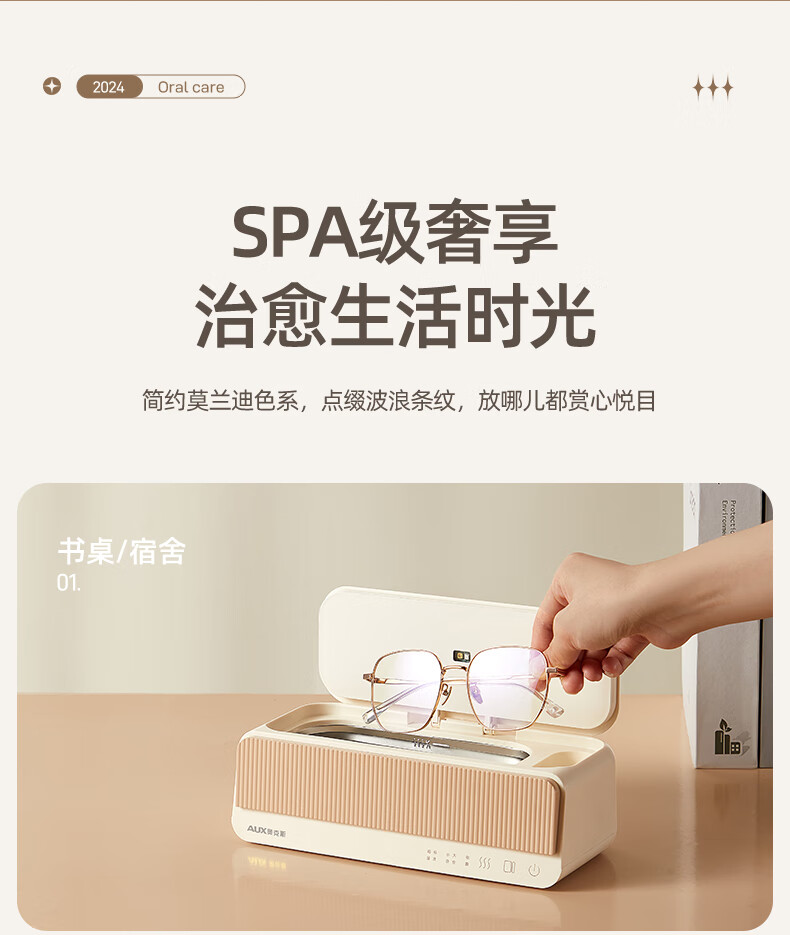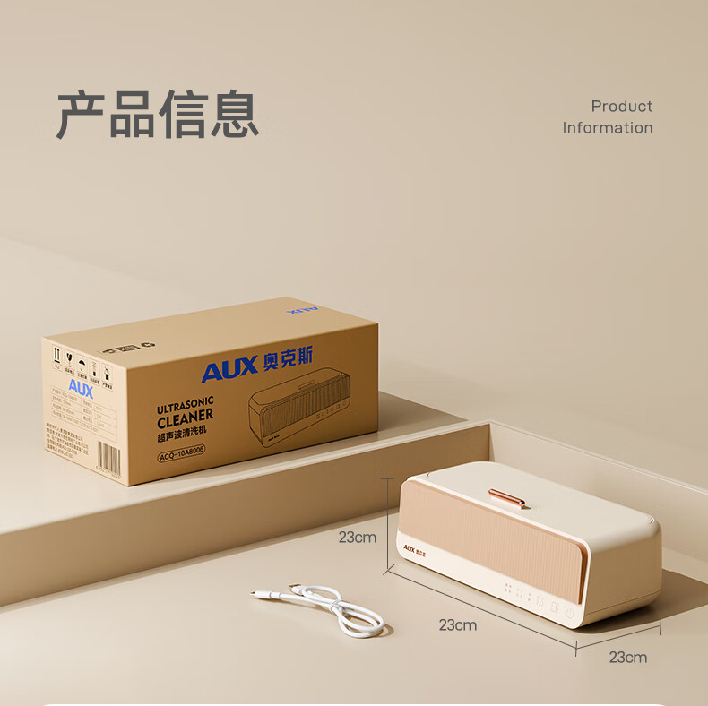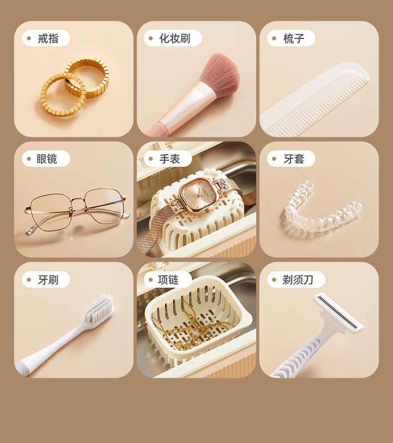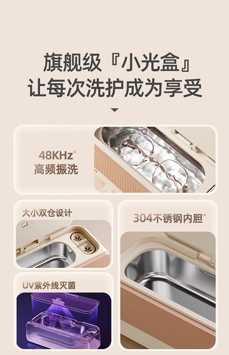 AUX ultrasonic cleaning machine glasses washing machine home braces jewelry watch cleaning machine contact lens cleaning artifact beige UV sterilization + large and small dual compartments