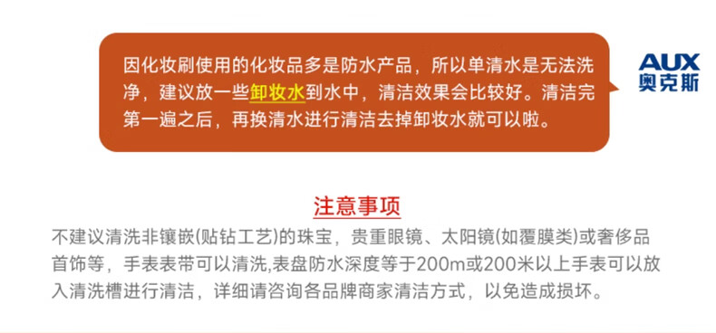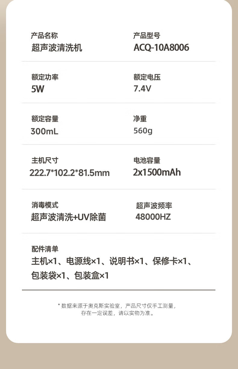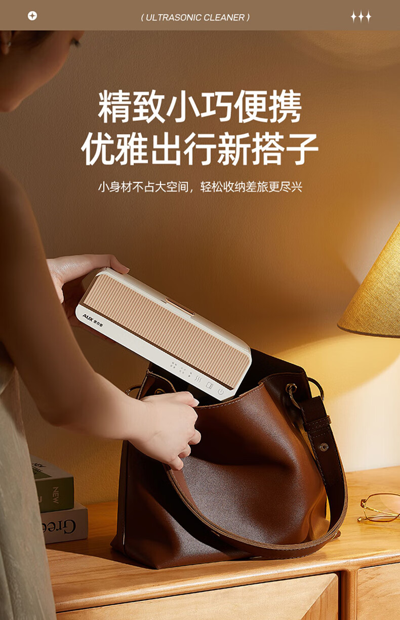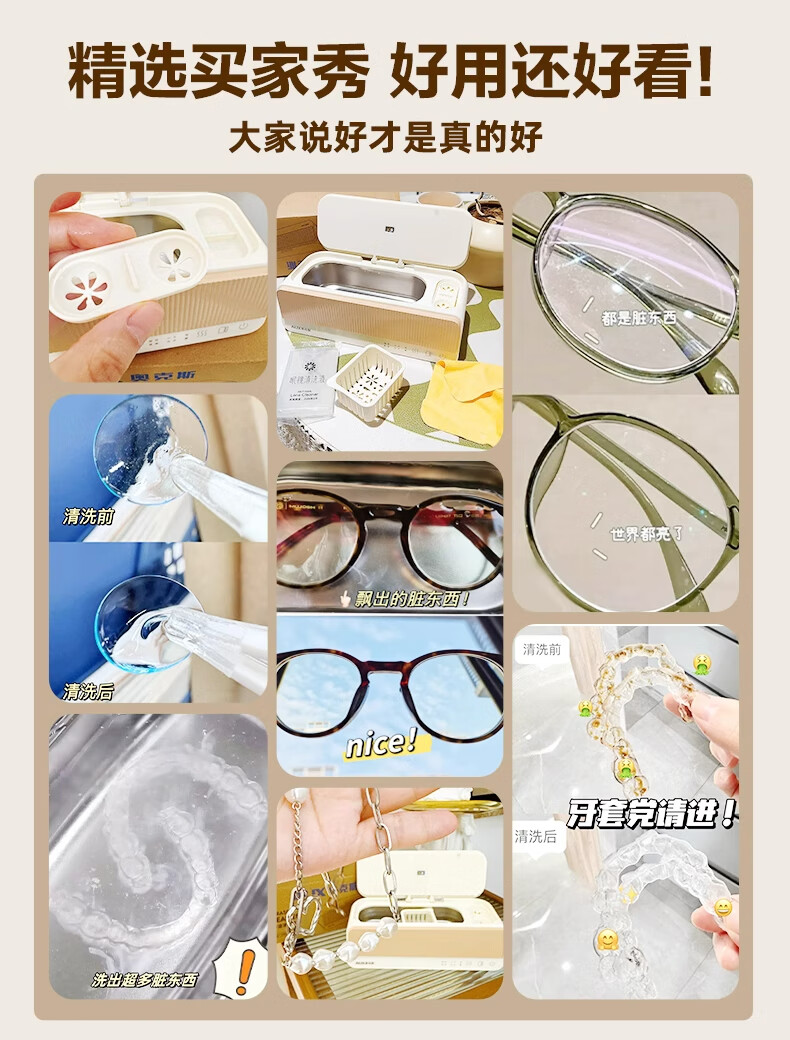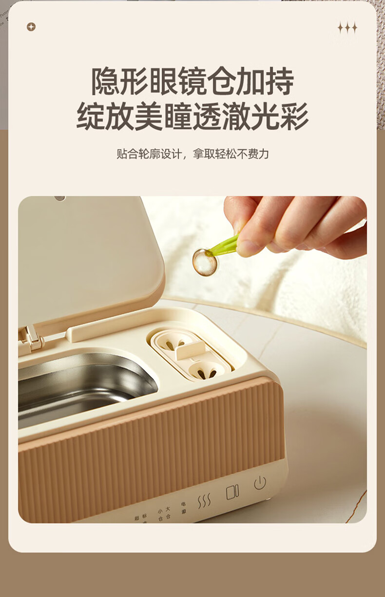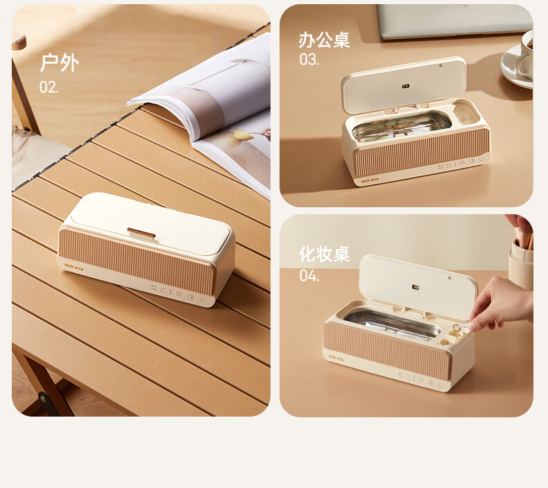 AUX ultrasonic cleaning machine glasses washing machine home braces jewelry watch cleaning machine contact lens cleaning artifact beige UV sterilization + large and small dual compartments