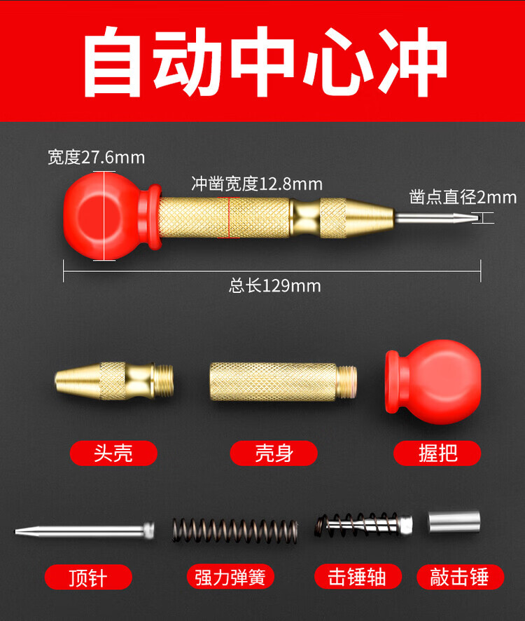 Borage high-hardness automatic center punching and drilling pointer sample punch drill bit hole fixer drilling positioning punching pointer punch needle 1 spring special