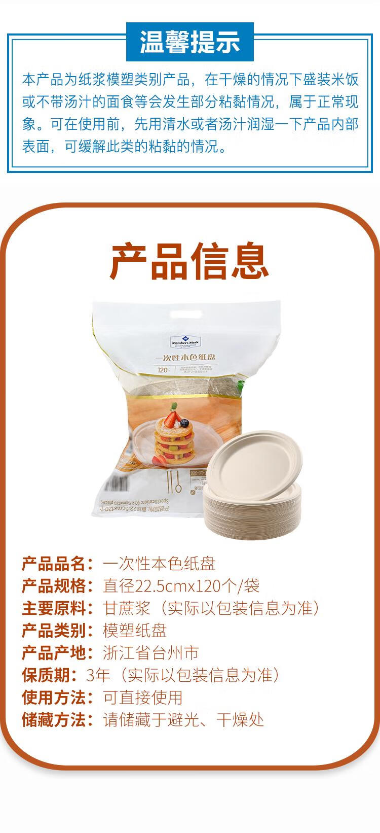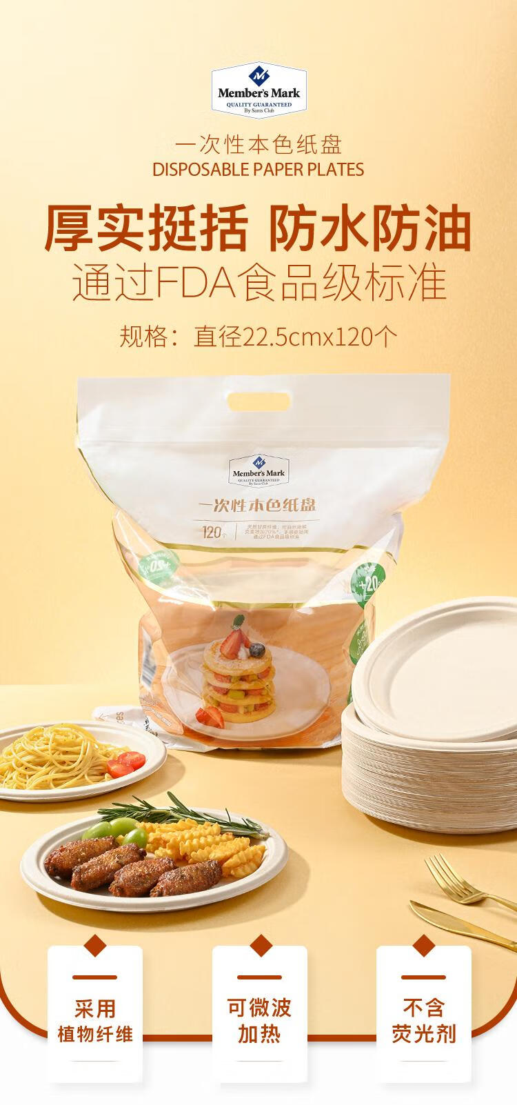 Member s Mark disposable natural paper plates 22.5cm*120 pieces/bag 120 pieces/set