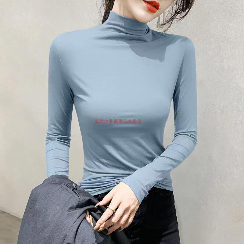 Modal half turtleneck bottoming shirt for women 2025 spring and autumn new slim fit solid color long-sleeved T-shirt for women thin trendy cotton D56-black single/piece L suitable for 100-115 pounds