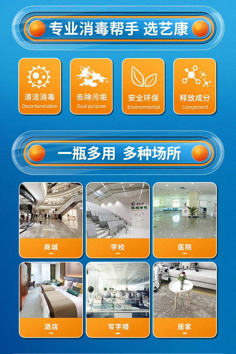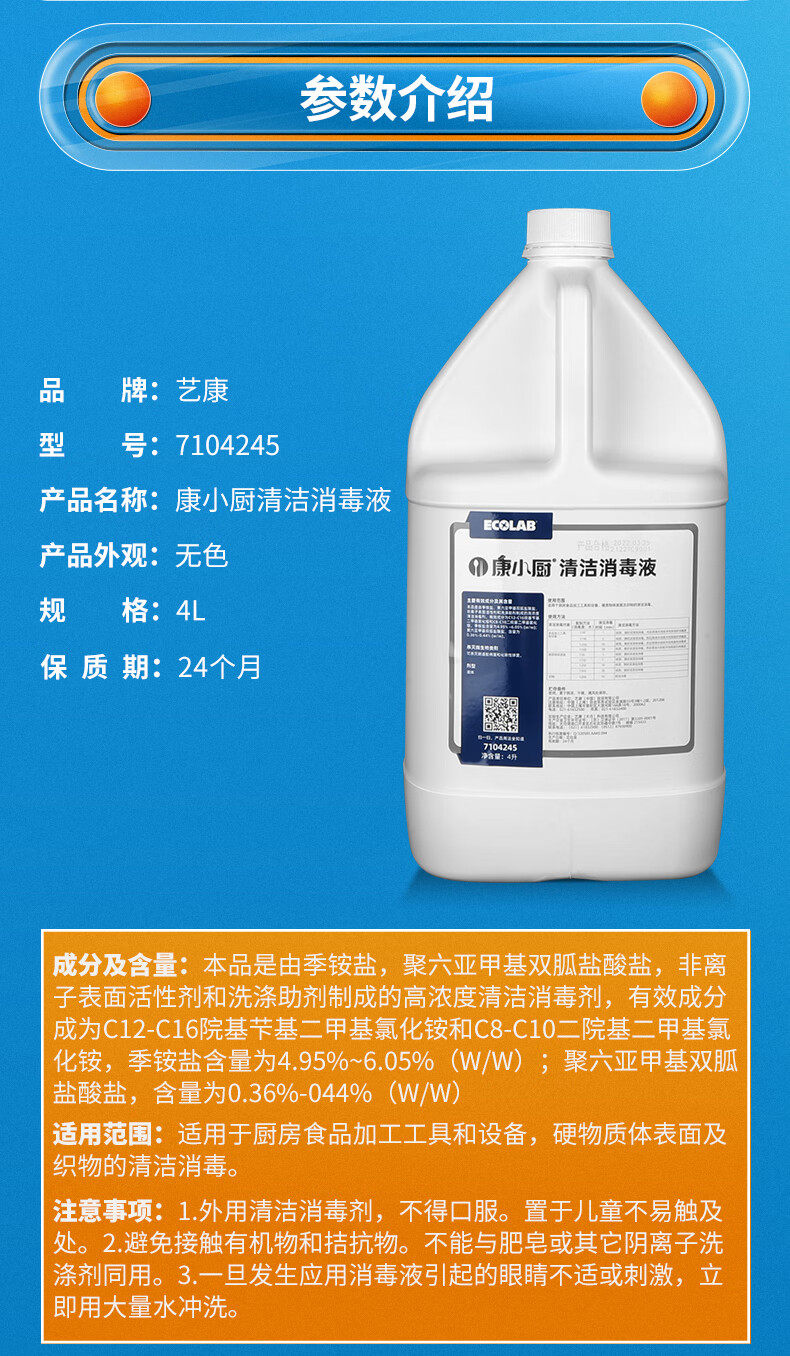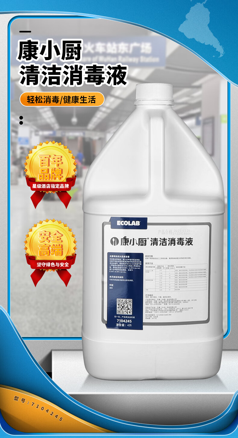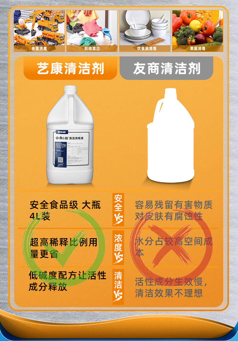 EcoKang Xiaochu Cleaning and Disinfecting Liquid Two-in-One Quaternary Ammonium Salt Cleaner Commercial Kitchen Countertop Cleaning and Disinfecting Water 4L Pack Powerful Decontamination and Descaling 4 Bottles One Box