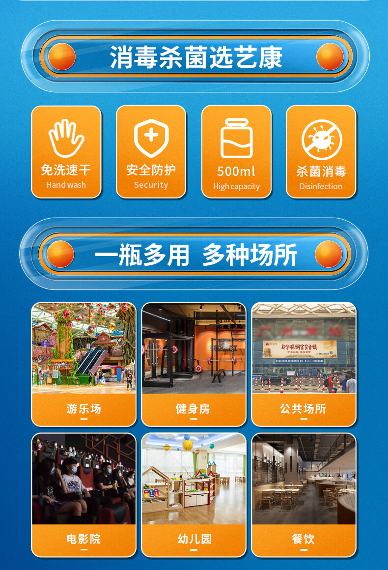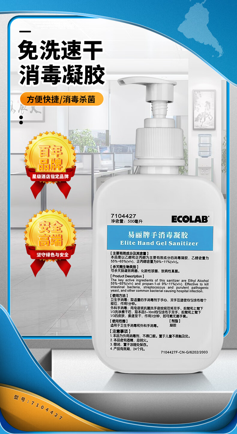 Ecolab Yili brand hand-free hand sanitizer gel household children's quick-drying portable water-free hand sanitizer 500ml 12 bottles in one box