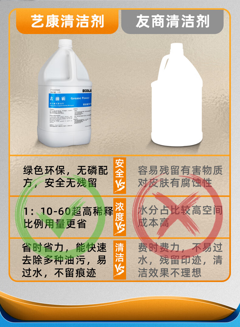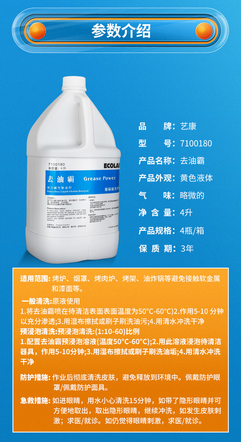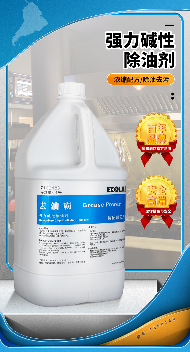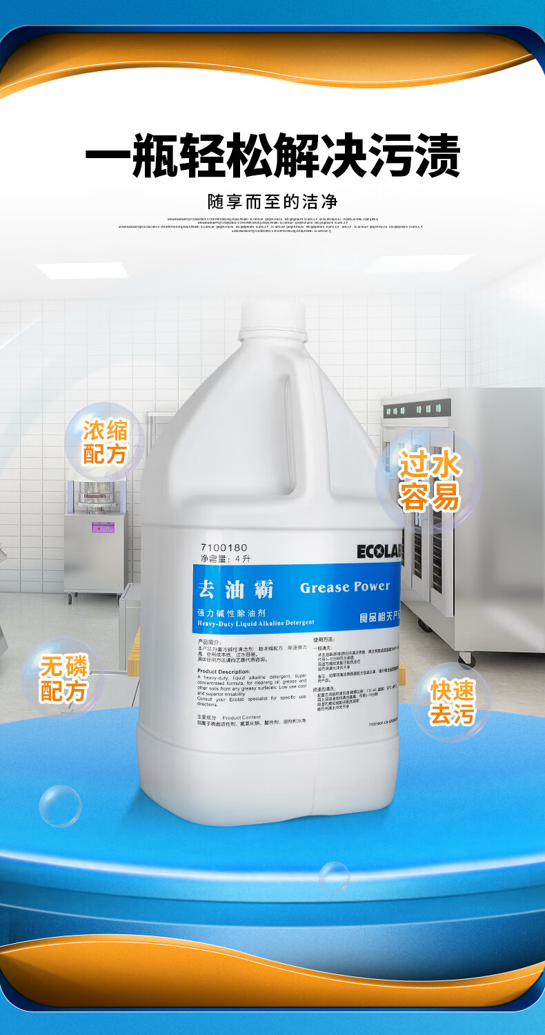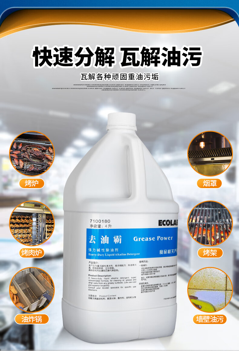 Ecolab Degreaser Powerful Alkaline Degreaser Kitchen Heavy Oil Degreaser Cleaning Range Hood Stove Grill Degreasing Net 4L Pack 1 Bottle